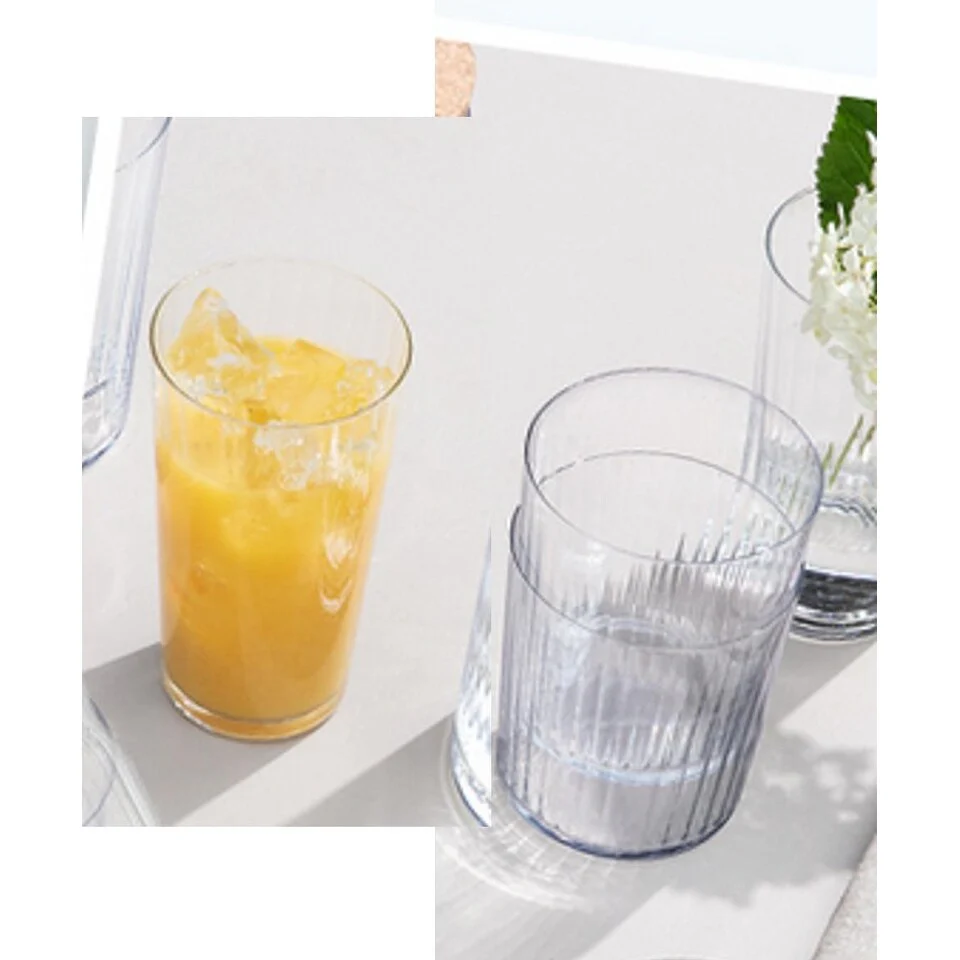 Set of (4) Elle Decor Ribbed Highball Glasses 16oz Tall Drinking Glasses