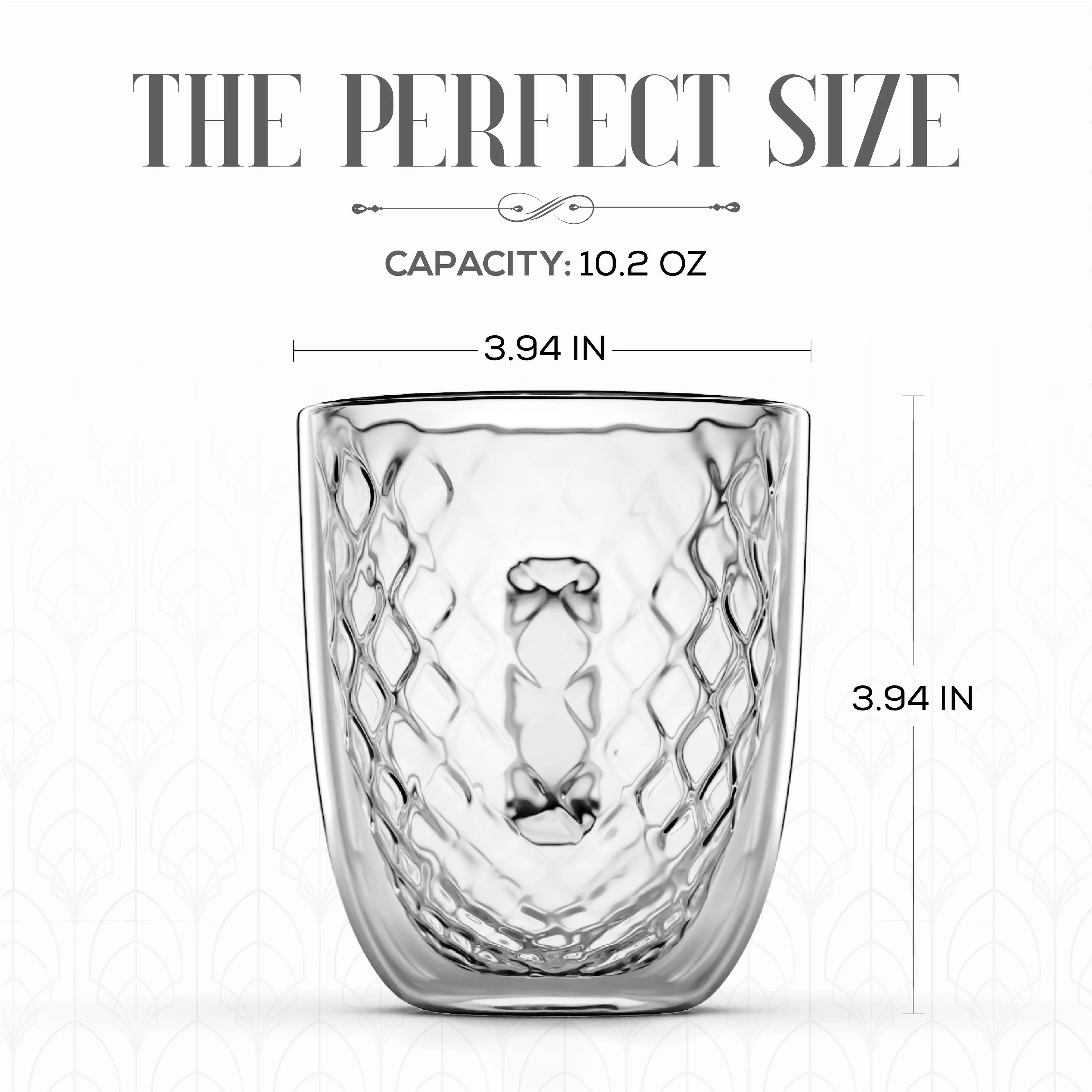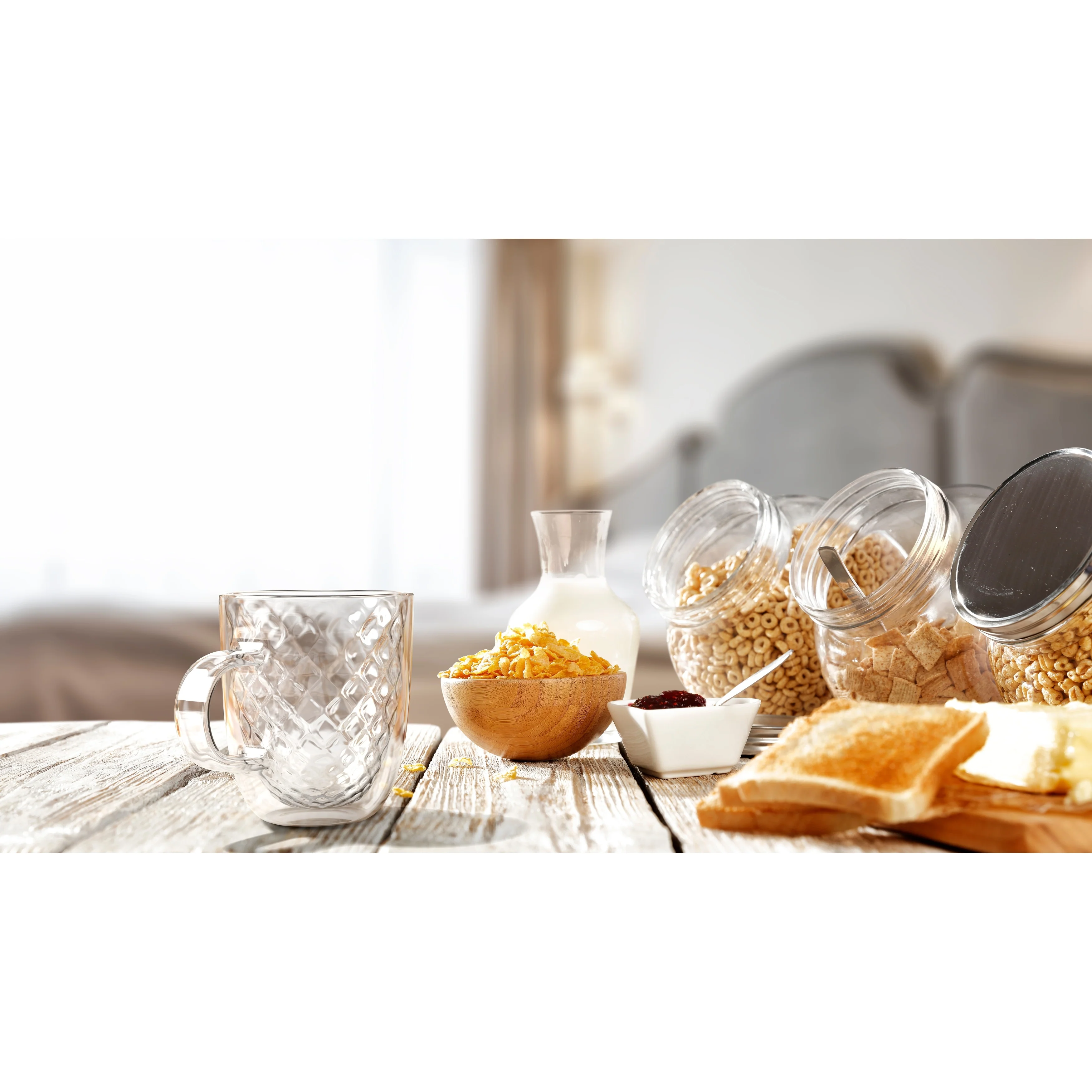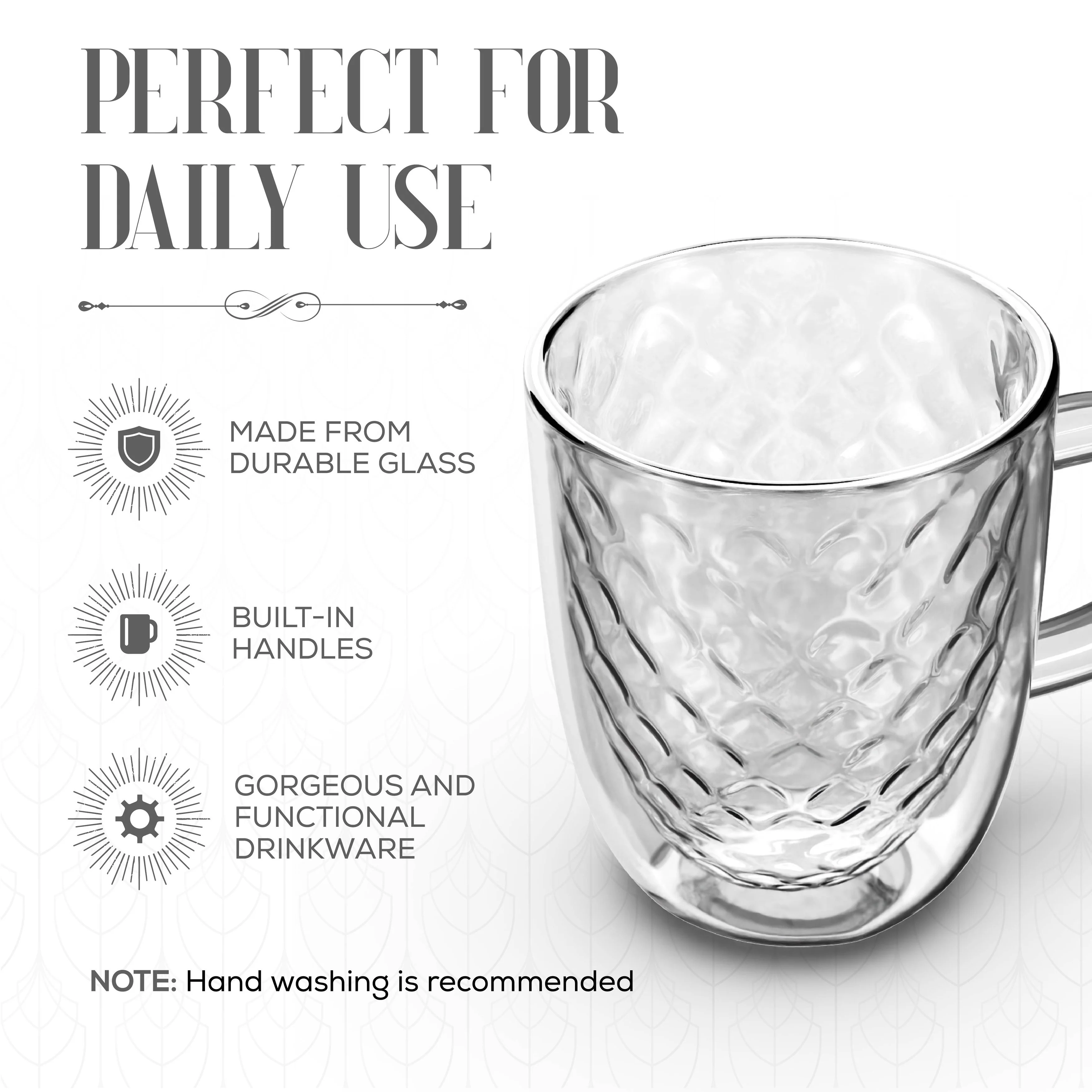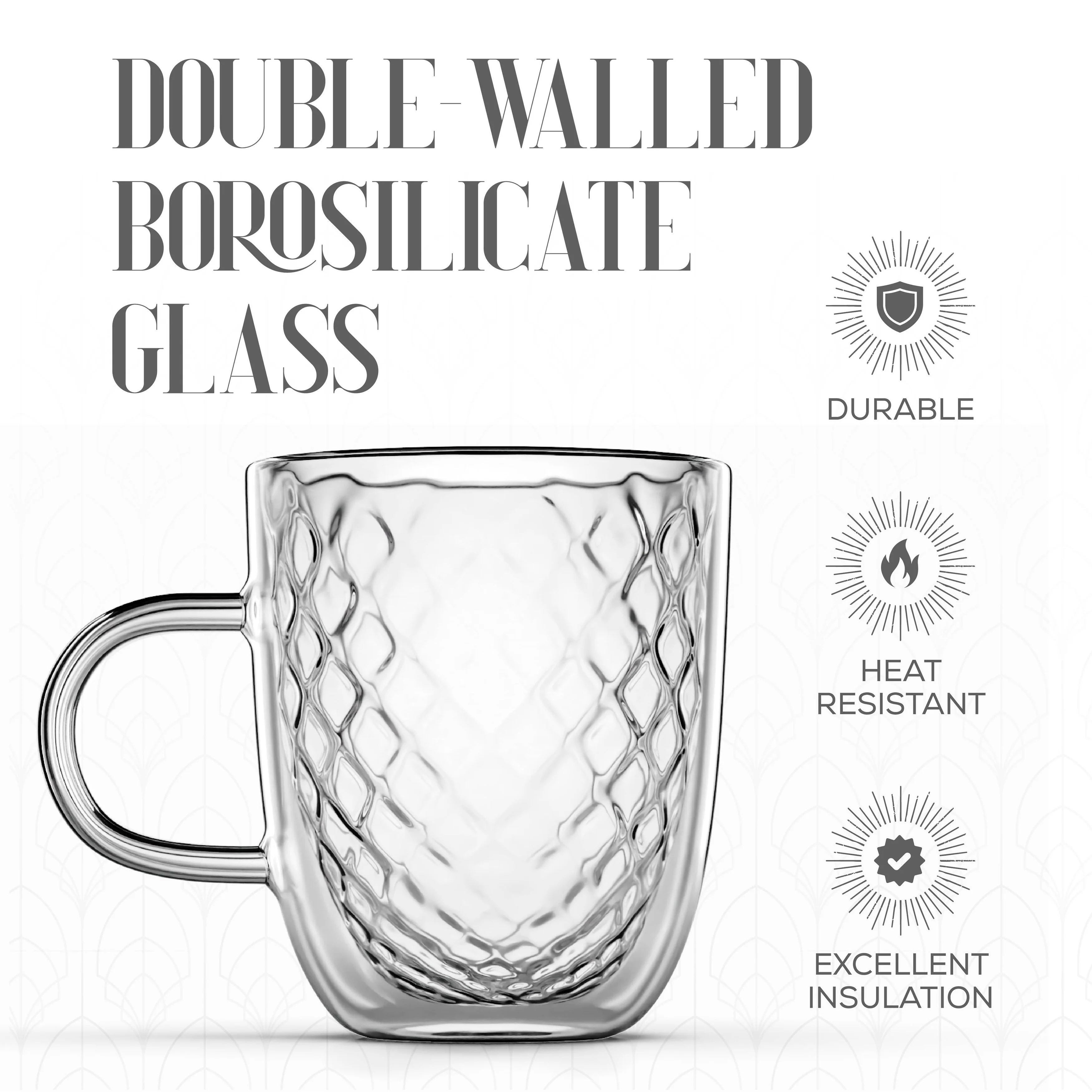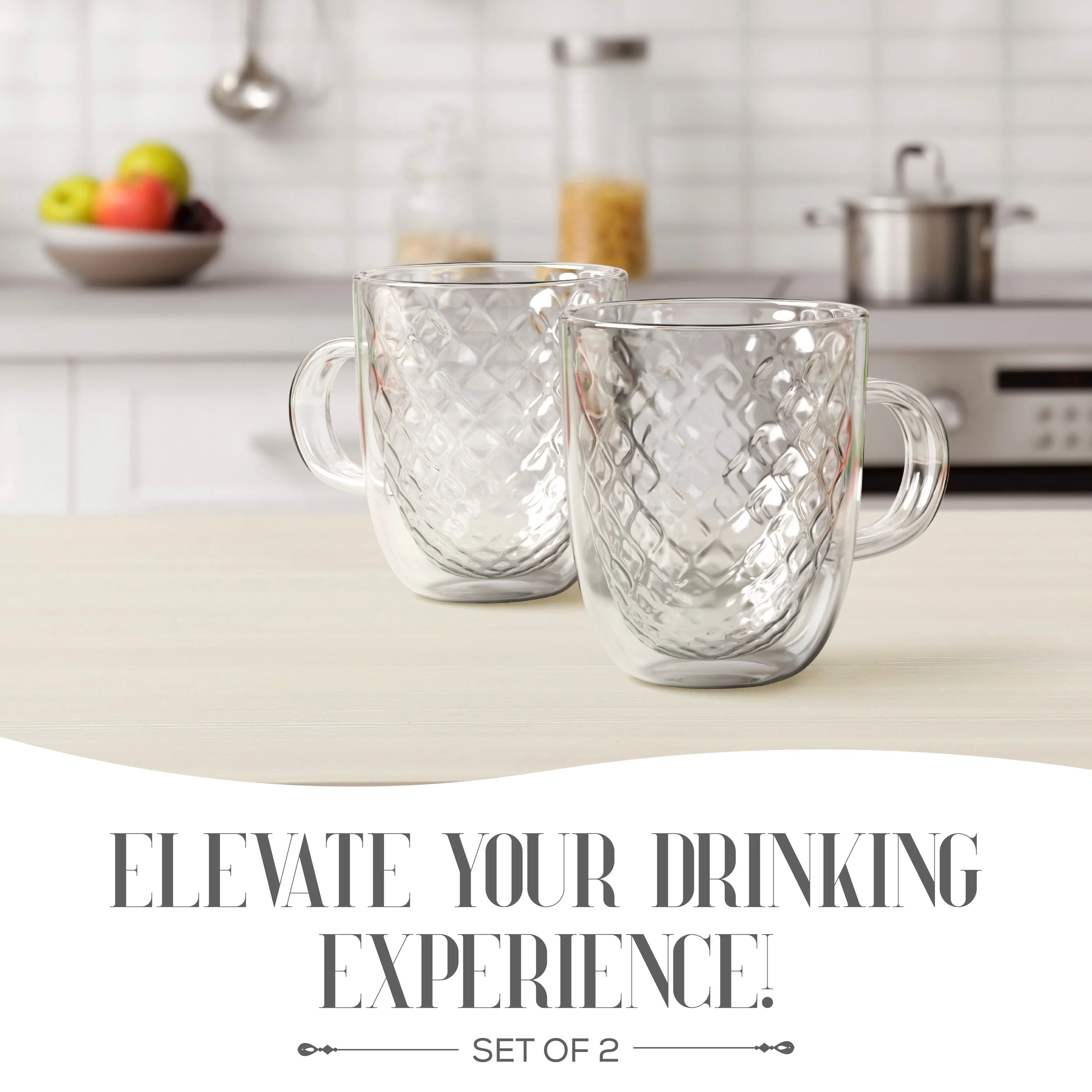 - Versatile and Stylish: Enjoy a wide range of hot and cold beverages, such as coffee, tea, lattes, and smoothies, in these elegant elle décor Diamond Coffee Mugs. The double-wall design made from scratch-resistant borosilicate glass keeps your drinks at the perfect temperature for longer.