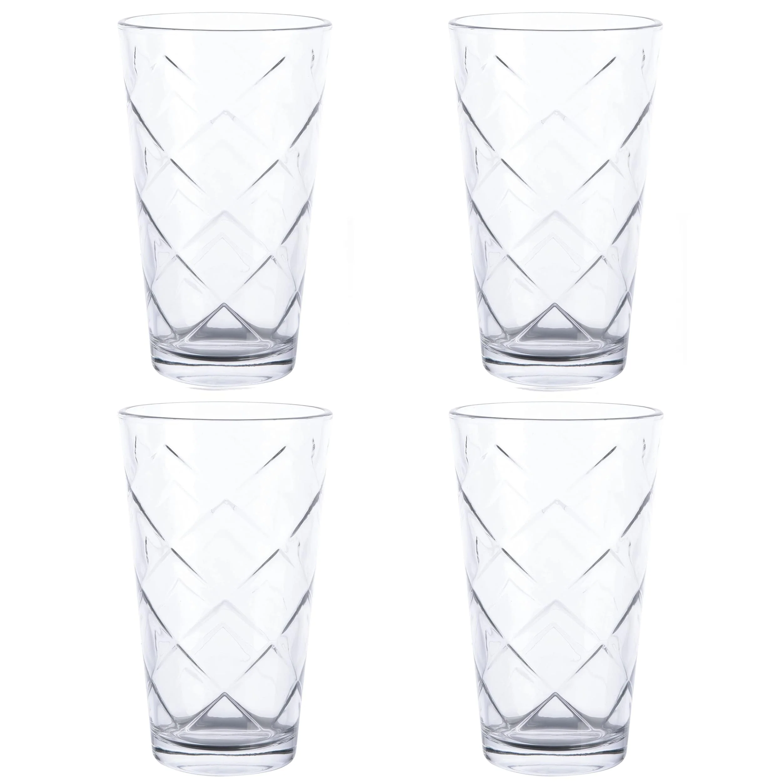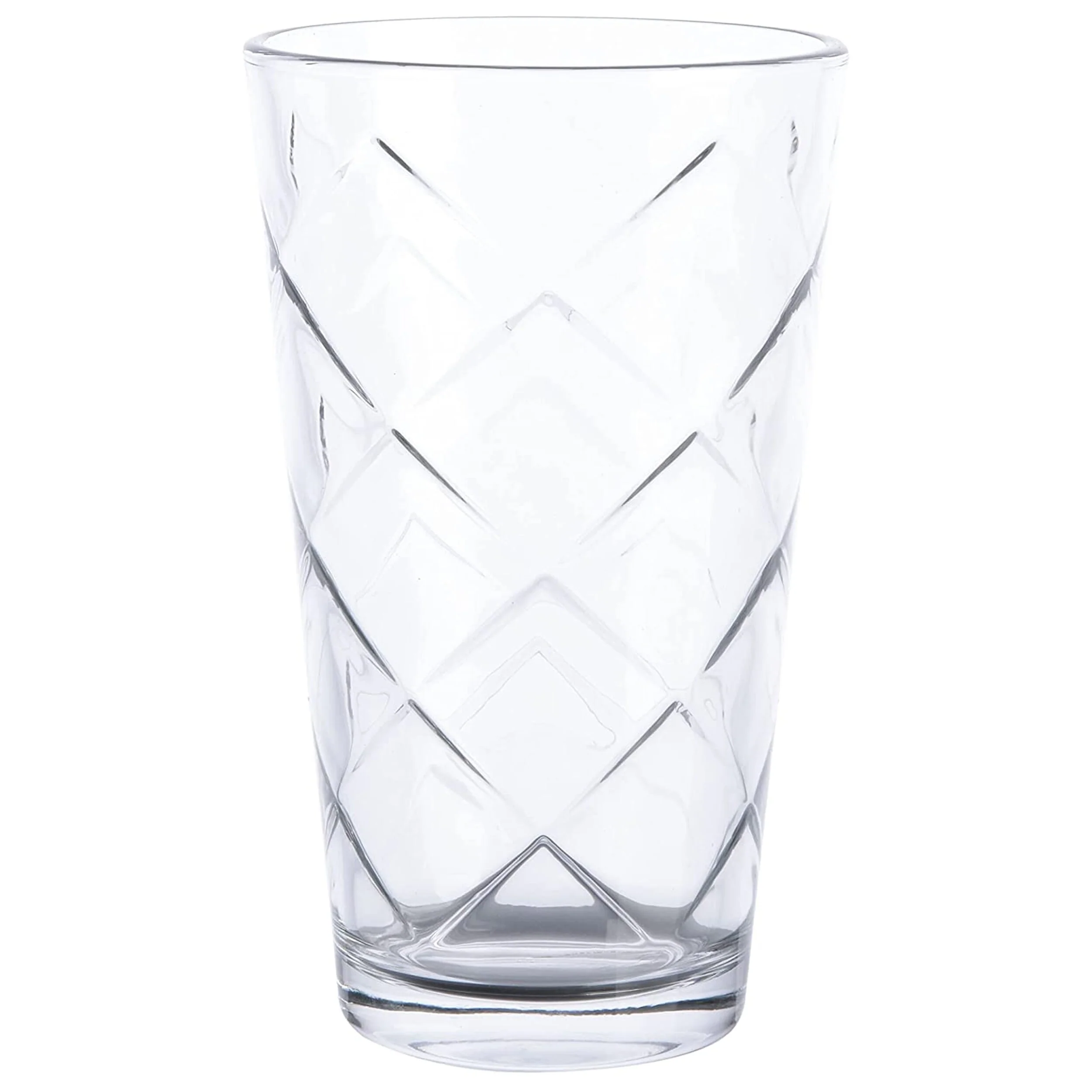 Serve the perfect drink with the stunning styling of Gibson Home Lattice 4 Piece Glass Tumbler Set. Each tumbler and double old fashion features an embossed lattice pattern with in their containers. The clear glass body is well made and dishwasher safe for better quality of life. Enjoy a nice evening with a glass of whiskey, orange juice in the morning, or party with friends and cocktails! Item Dimensions: 3.50' x 3.50' x 5.75' Item Weight: 0.85lbs
