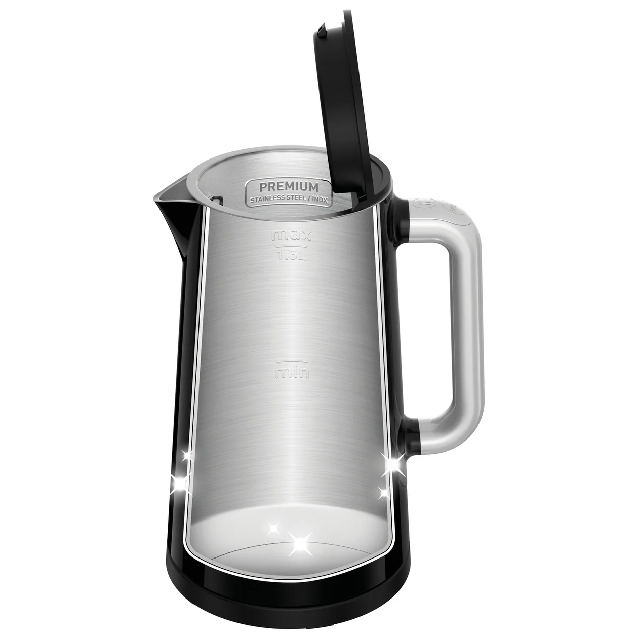 - Automatic lid opening: The automatic lid opening provides a wide opening for easy filling and convenient cleaning, all at the simple touch of a button.