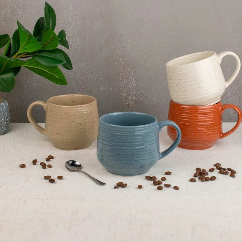 Adding to our much loved SITERRA collection, these 17oz. mugs will complement your own SITERRA dinnerware set, adding rustic charm and casual elegance to your table and cupboards. Each subtly textured piece is finished with a beautiful translucent color glaze with light speckle. Offered as four piece sets and include four beautiful, warm-toned colors; blue, brown, white, and cream.