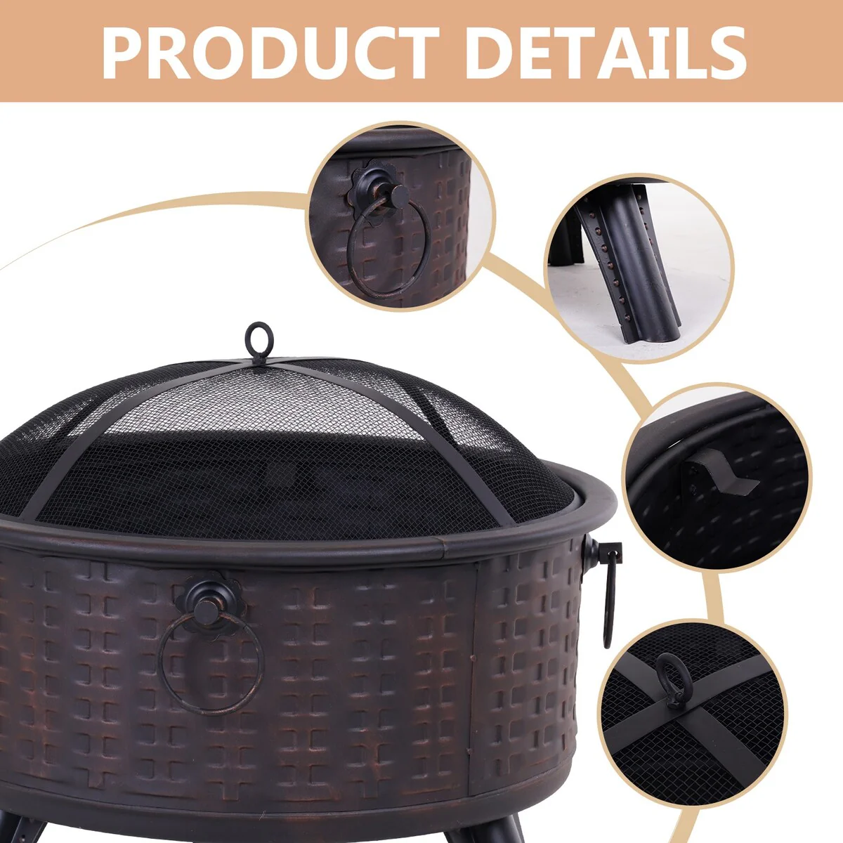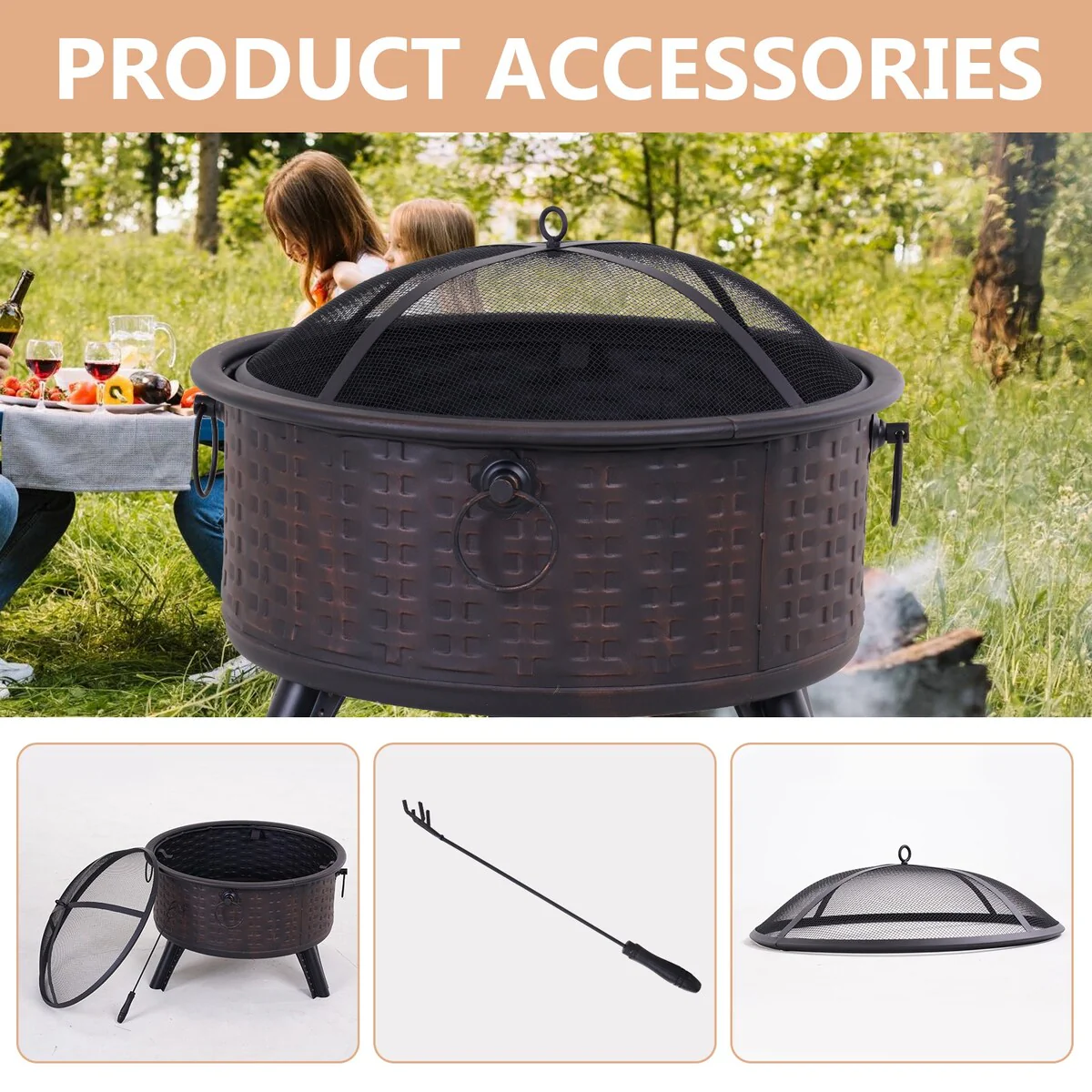 - Rust-Resistant Design: Relax and enjoy your wood-burning fire pit without any worries. Crafted from powder-coated steel, this fire pit is designed to resist rust, ensuring its longevity and allowing for continuous outdoor use. The lightweight and weatherproof construction make it a durable addition to your yard or patio, retaining its charming appeal over time.
