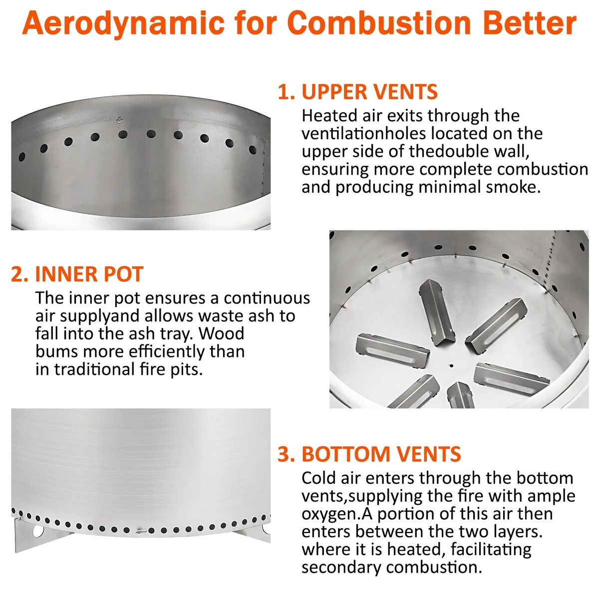 This fire pit feeds more oxygen into the burning process and accelerates secondary flame generation to burn off smoke particles before it gets to your clothes and hair. Completely get rid of the inconvenience of a smoky flame, and enjoy your time outside.