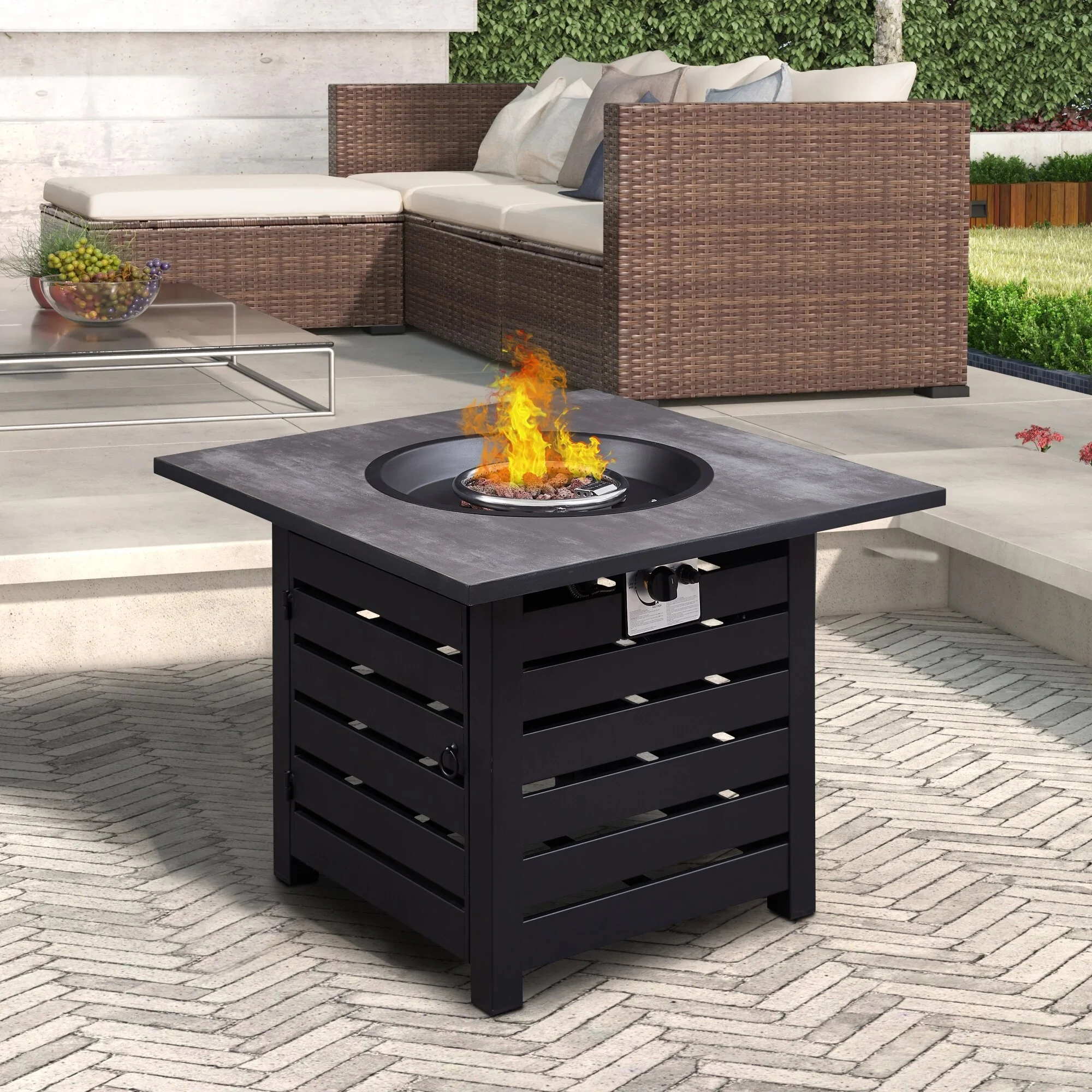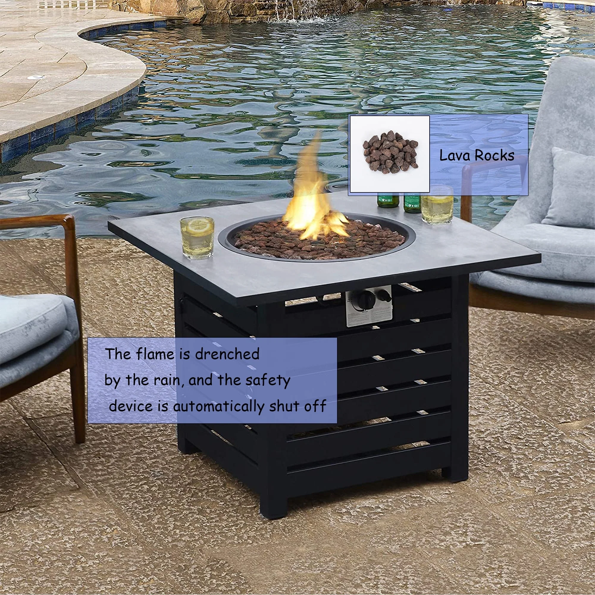 - With CSA certification, the 50,000 BTU outdoor pit table burns propane as fuel to deliver an eco-friendly and stable burn.