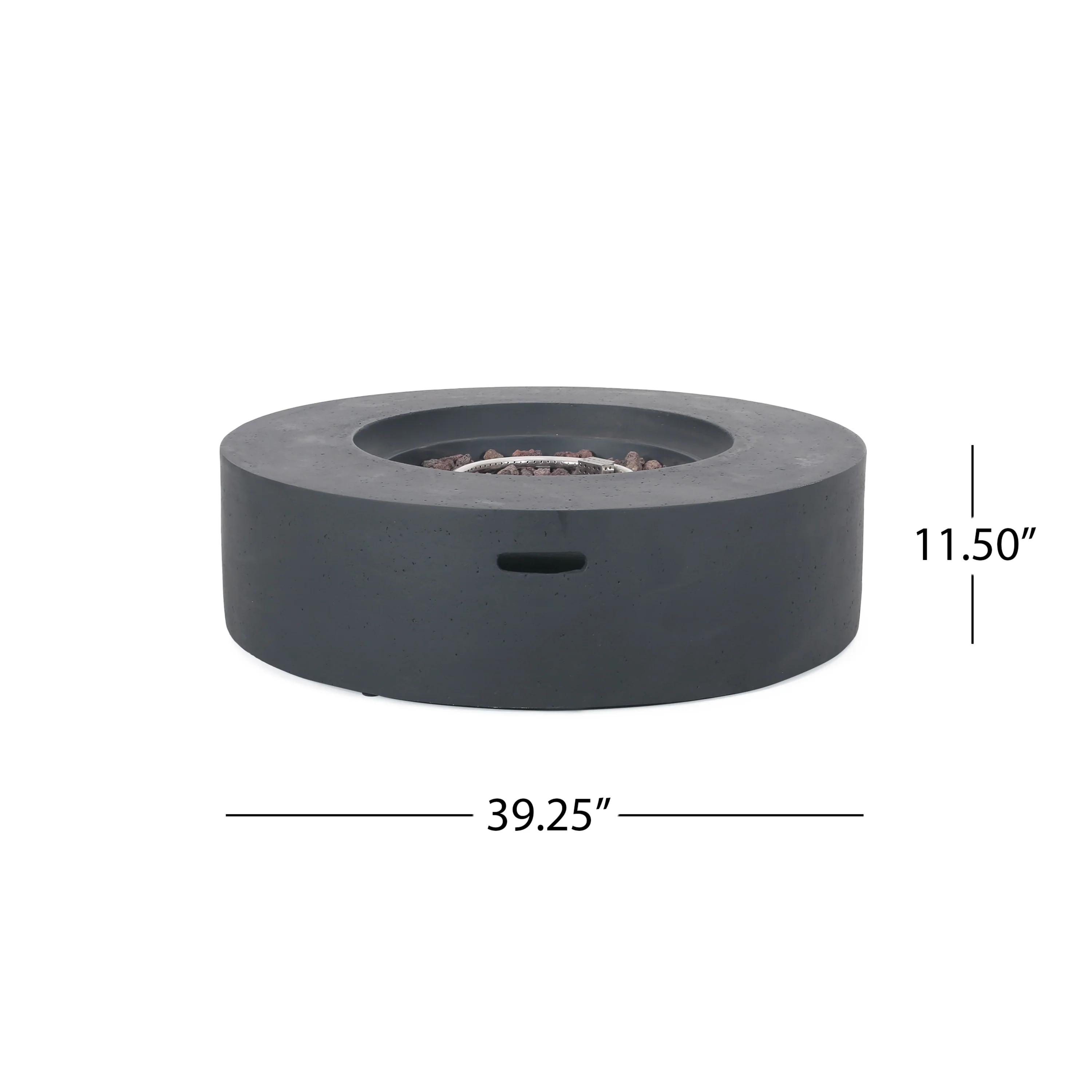 - Fire Pit Table Dimensions: 39.25 inches deep x 39.25 inches wide x 11.50 inches high