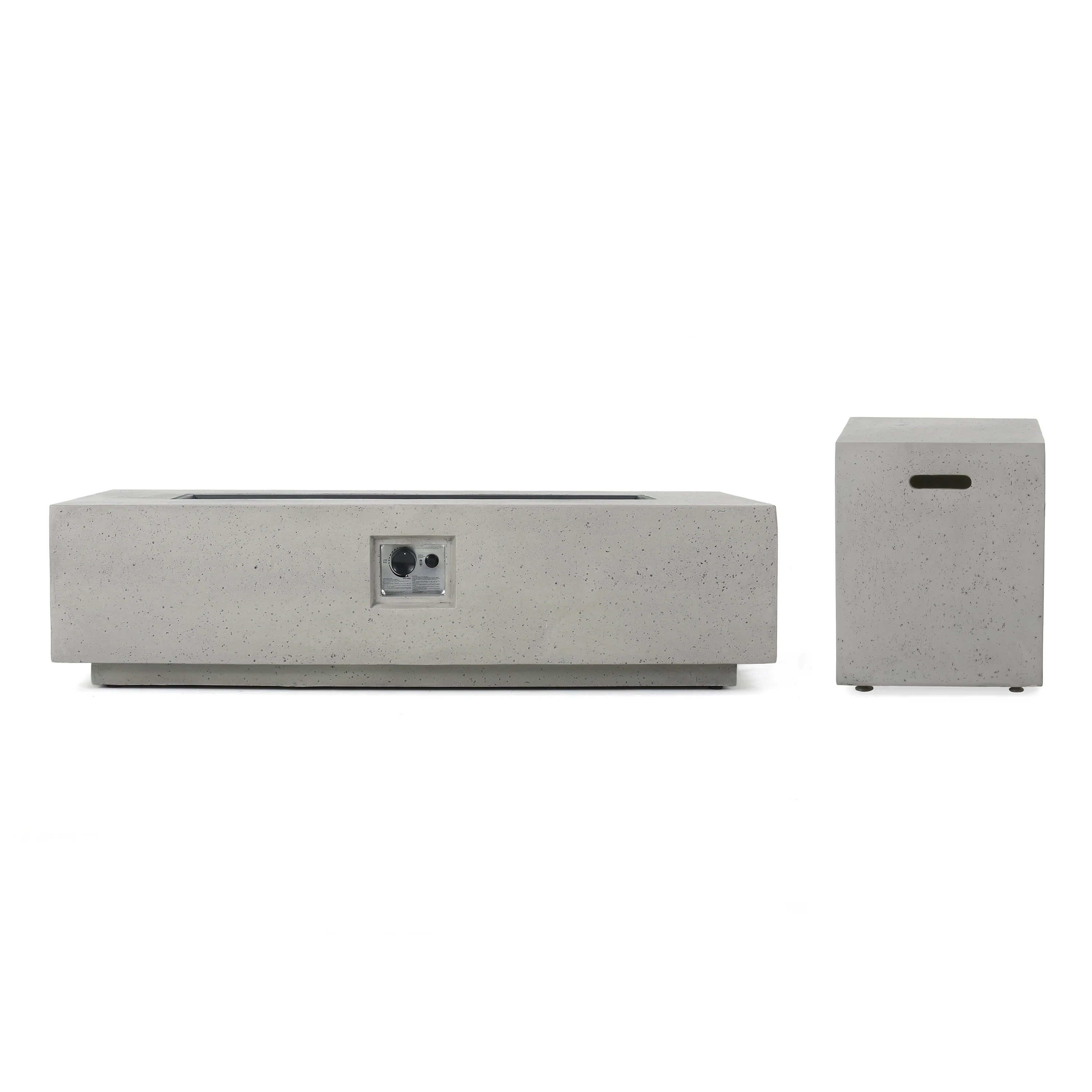 TANK HOLDER: This fire pit table comes with a matching tank holder to keep your propane tank inconspicuous. It is also made of lightweight concrete so you can arrange this piece however you please and your set will always look classy.