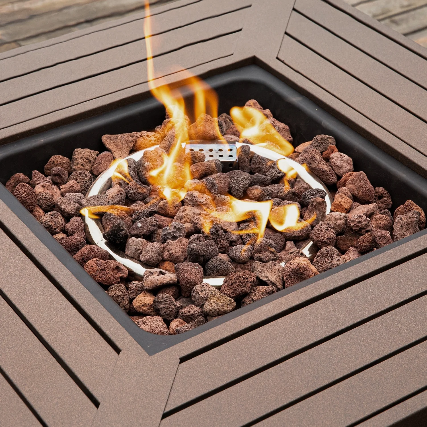 - Includes fire table, bag of lava rocks, metal lid, water-resistant cover, and assembly kit