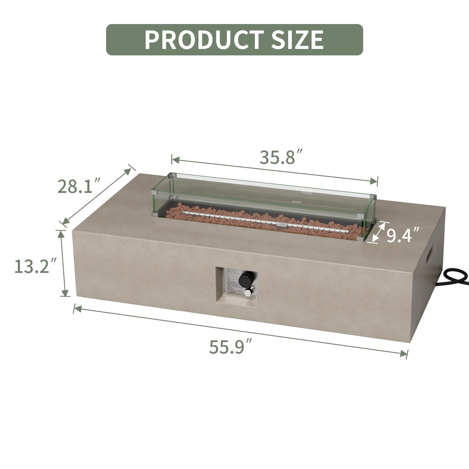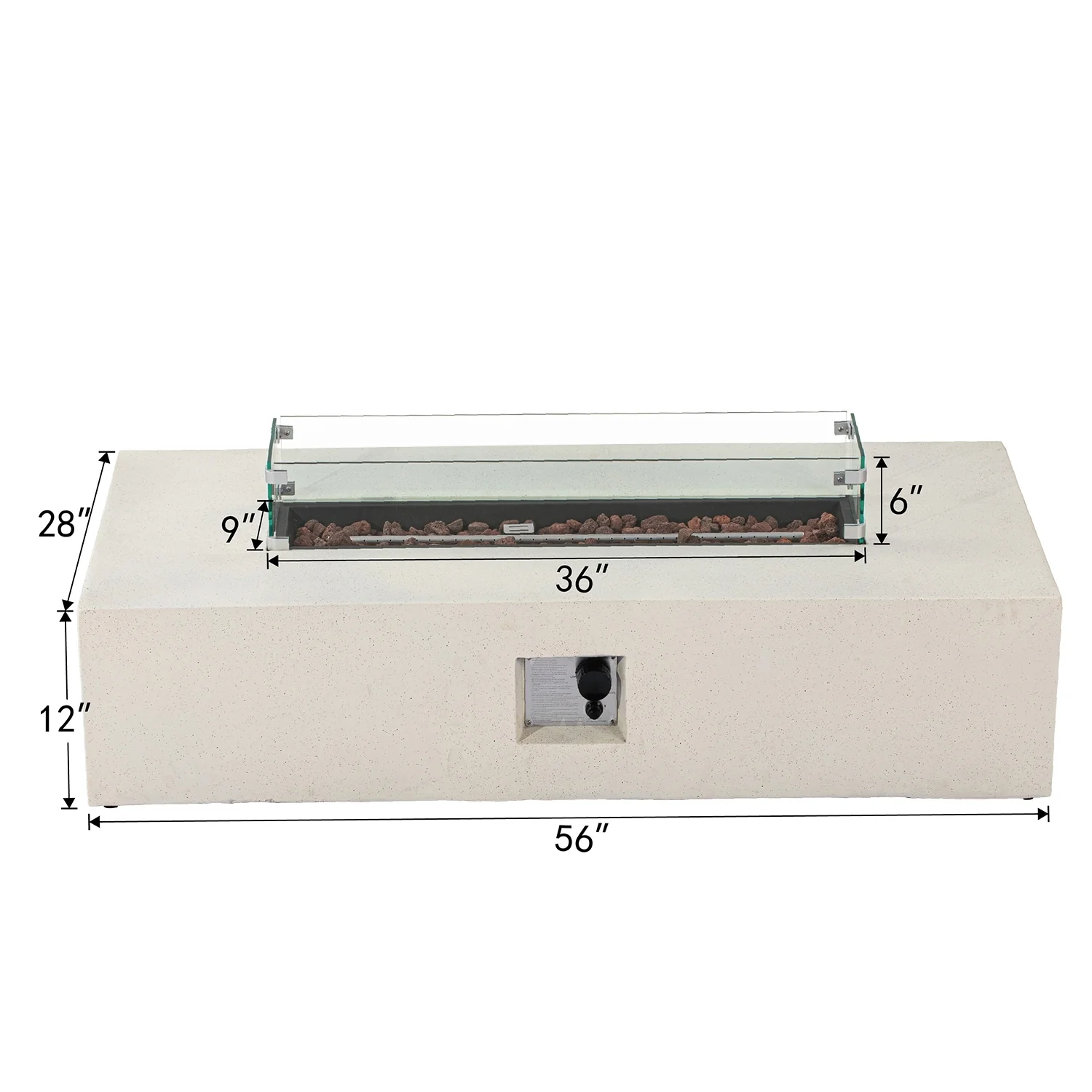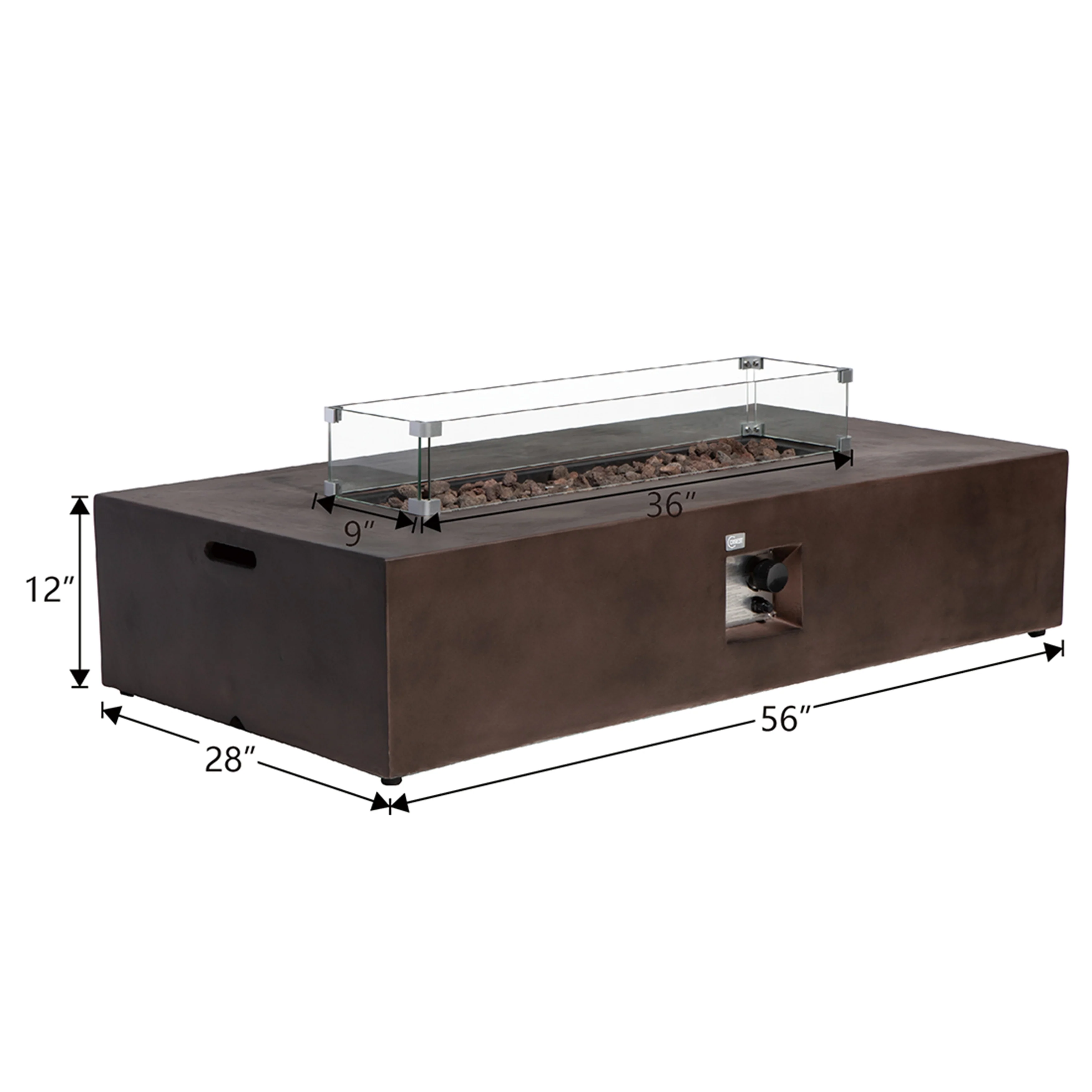- Fire bowl dimensions: 36 inches long x 9 inches wide