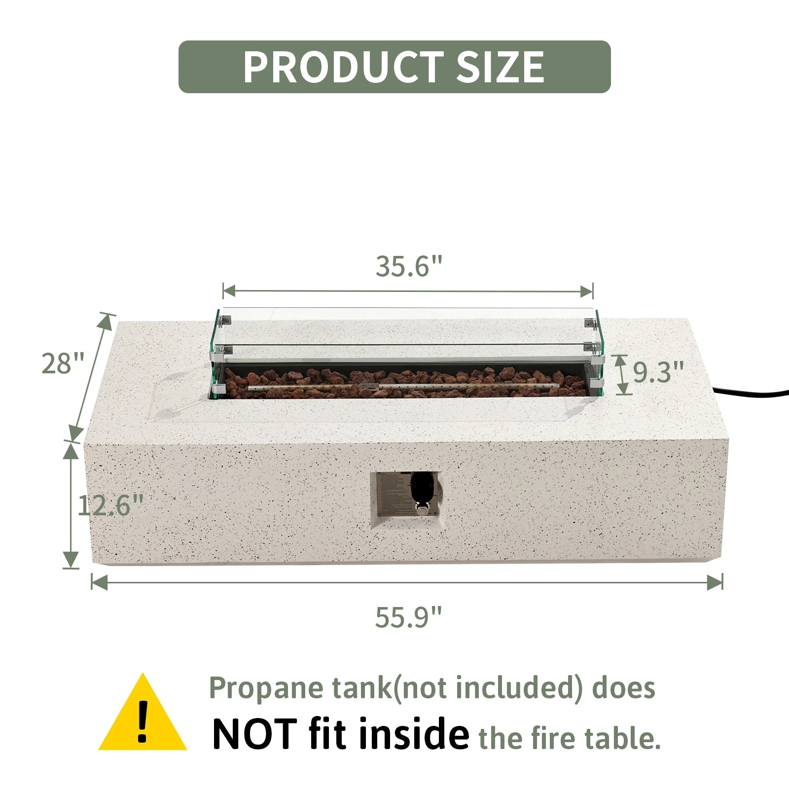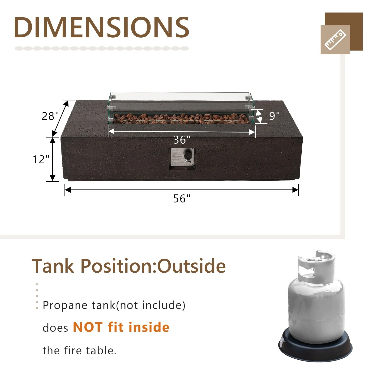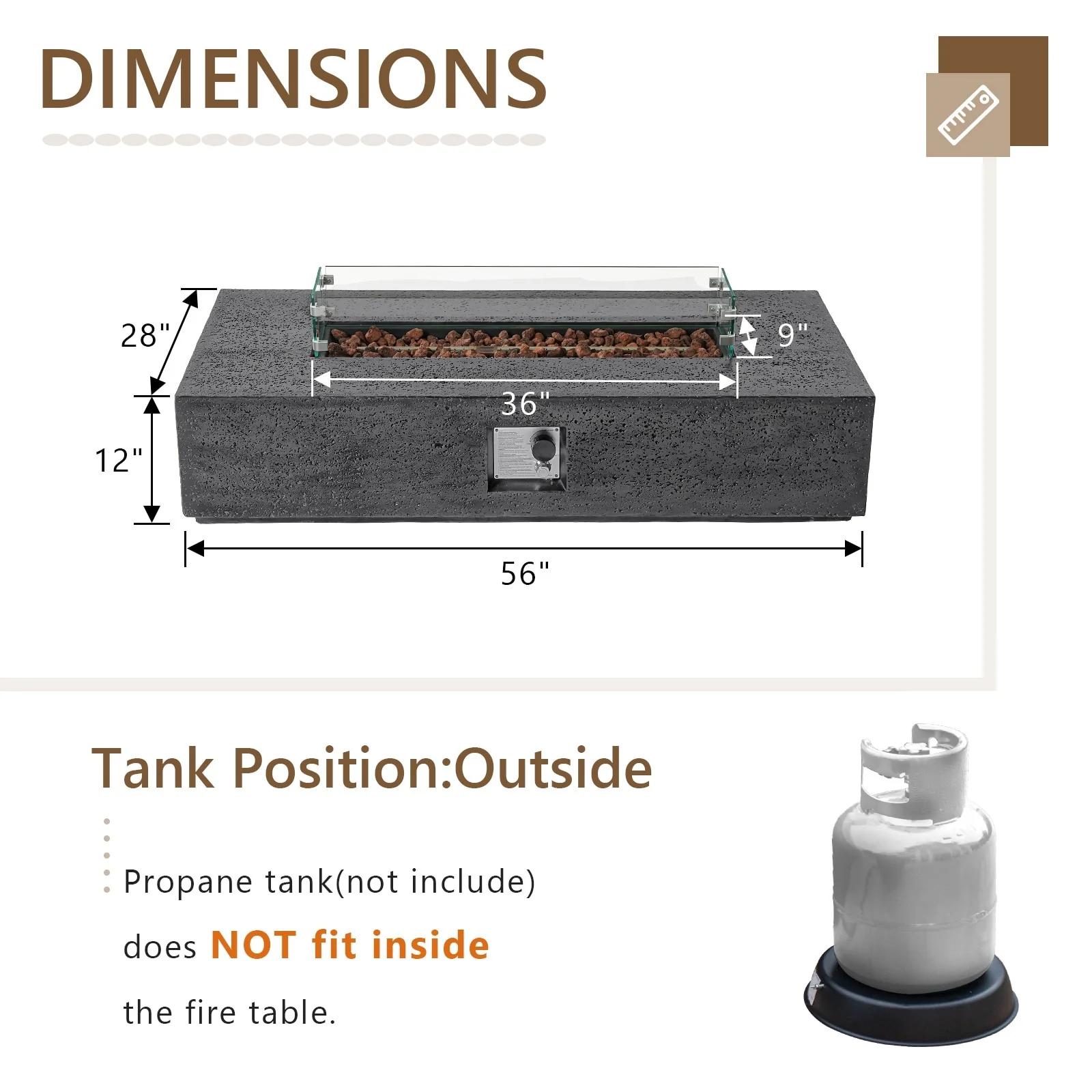 - Propane tank cannot be placed under the fire table