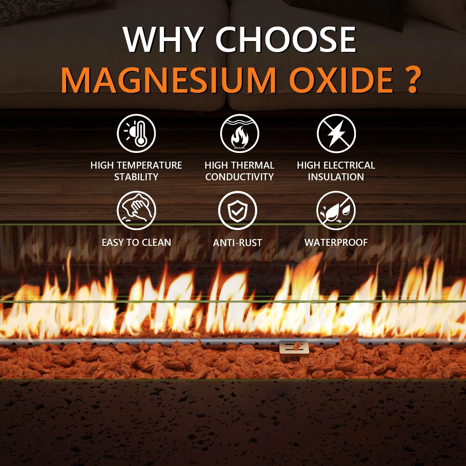 - Natural red lava pieces fill the burner bowl for even heat distribution