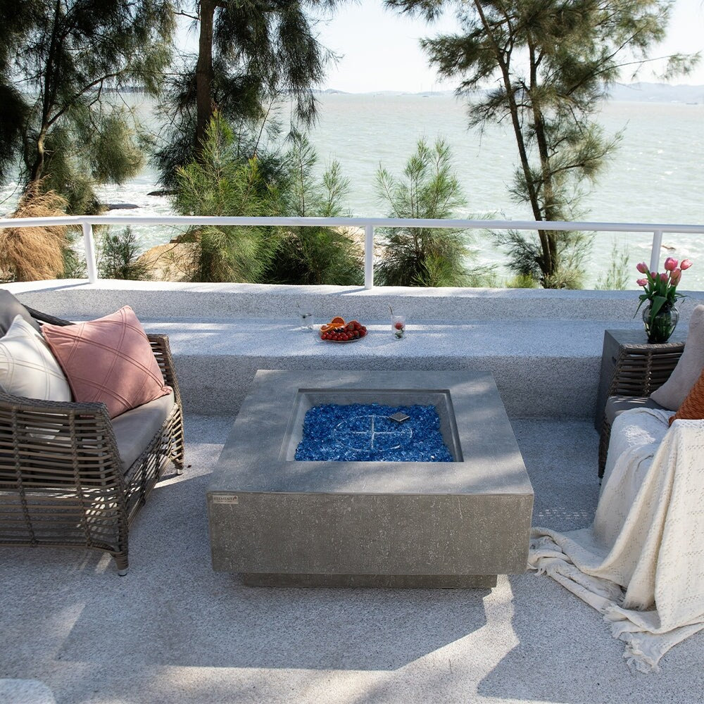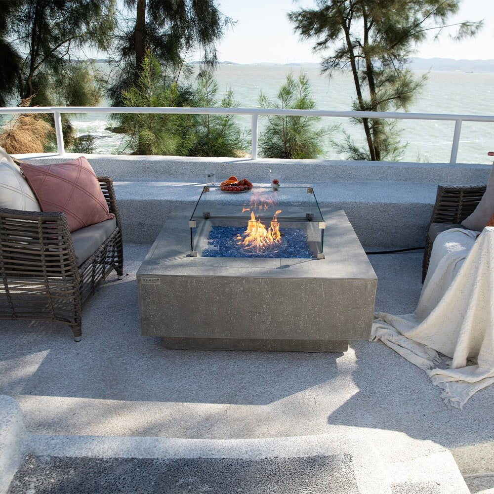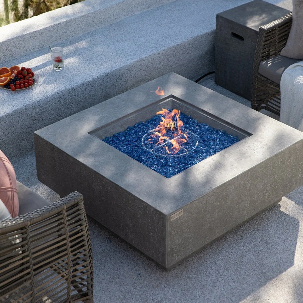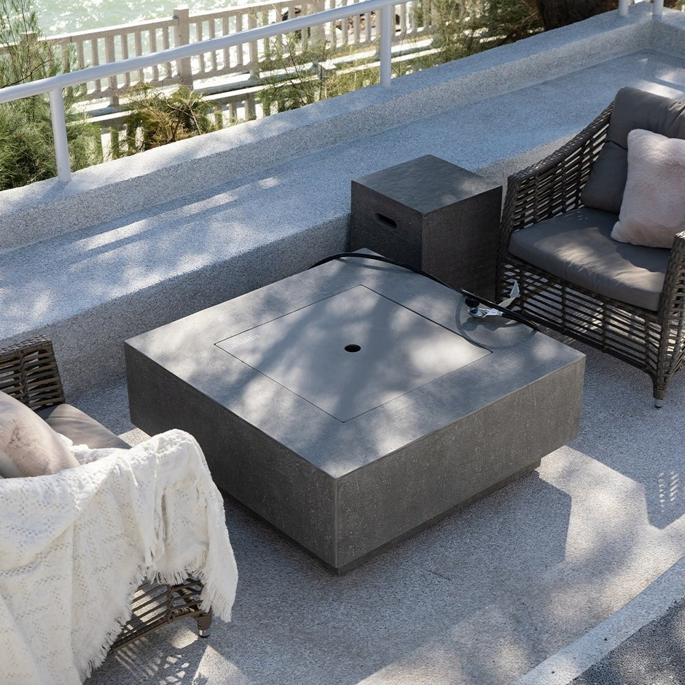 Elevate your outdoor gatherings with our stunning outdoor fire pit. This premium fire pit for outside is a beautiful addition to any patio or deck. The firepit table is durable and offers plenty of room for family and friends to gather around. Our outdoor patio fire pit is perfect for cooler evenings, providing warmth and comfort as you enjoy your time outside. With a beautiful modern design and a push button spark ignition, this fire table offers a unique style that will impress your guests. The smokeless fire pit is made with superior durability, is weather resistant and comes with a lid, fire glass and a canvas cover to protect your outdoor fire table while not in use. Additional accessories are available for purchase separately. Whether you're looking for an outdoor heater or a beautiful addition to your outdoor decor, the modern fire pit is the perfect choice for any outdoor space.