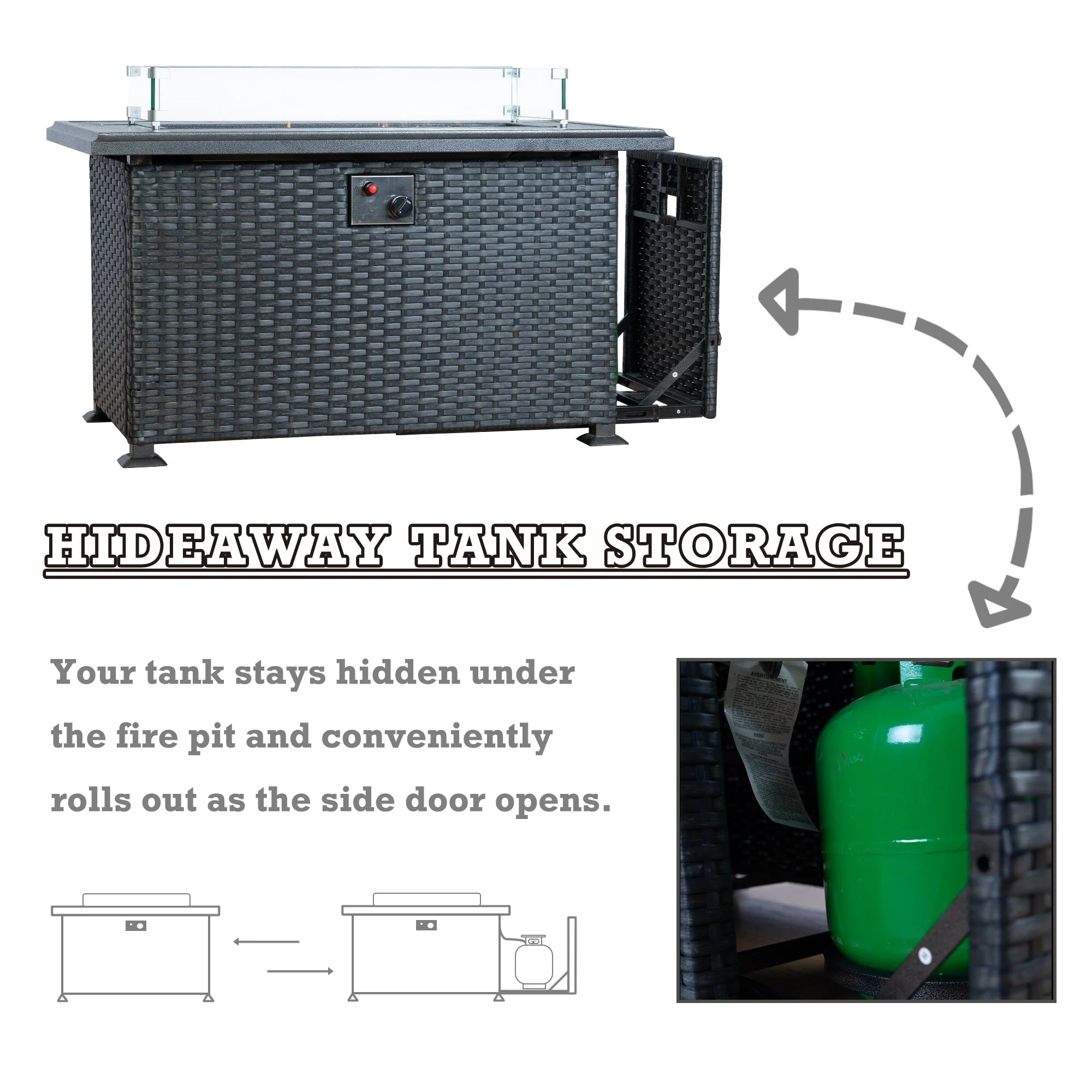 - Hideaway Tank Storage: Tank stays hidden under the fire pit table and conveniently rolls out as the side door opens.