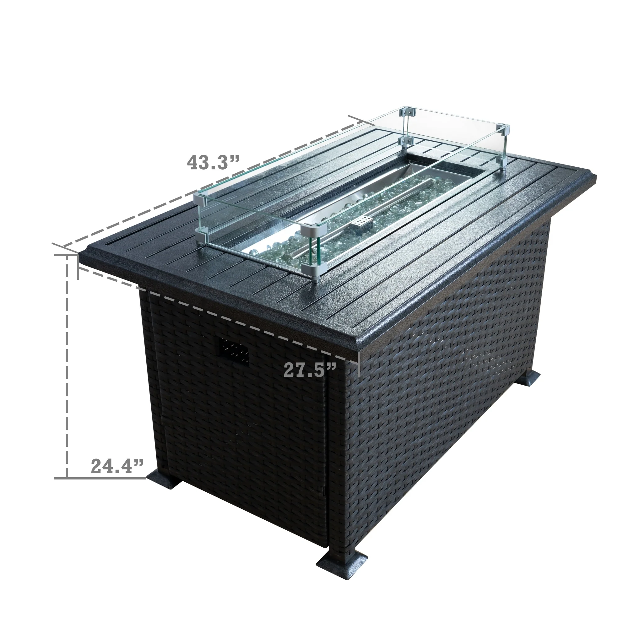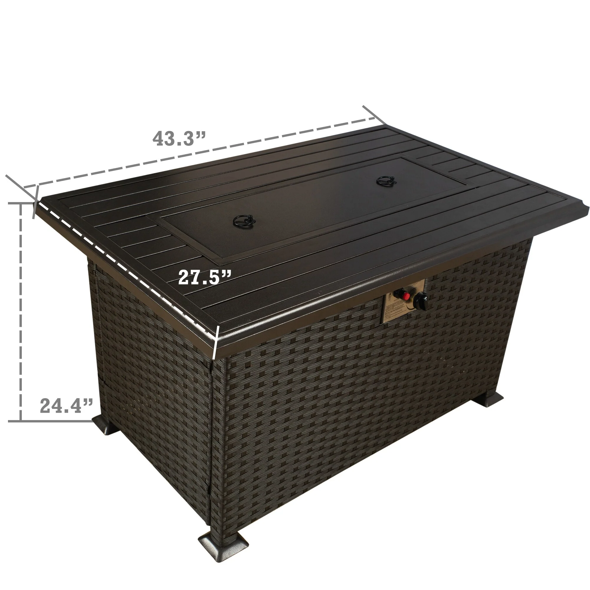 - Specification of Fire Pit Table: Overall size is 43.3'(L) x 27.5'(W) x 24.4'(H), frame is powder-coated with a waterproof cover, available in Gray or Brown, easy to assemble with all necessary hardware and tools included.