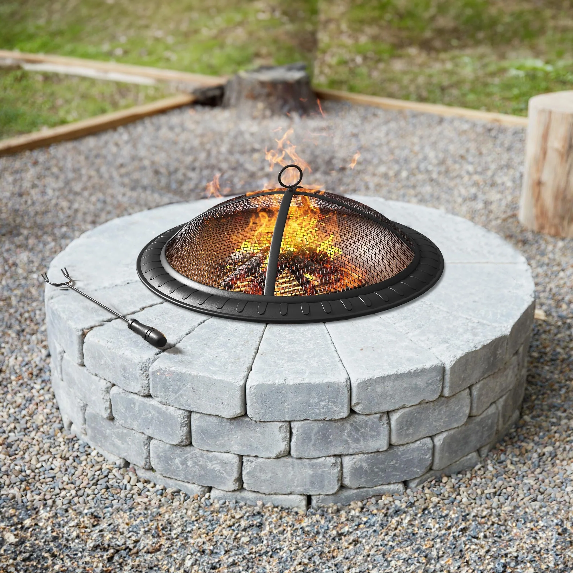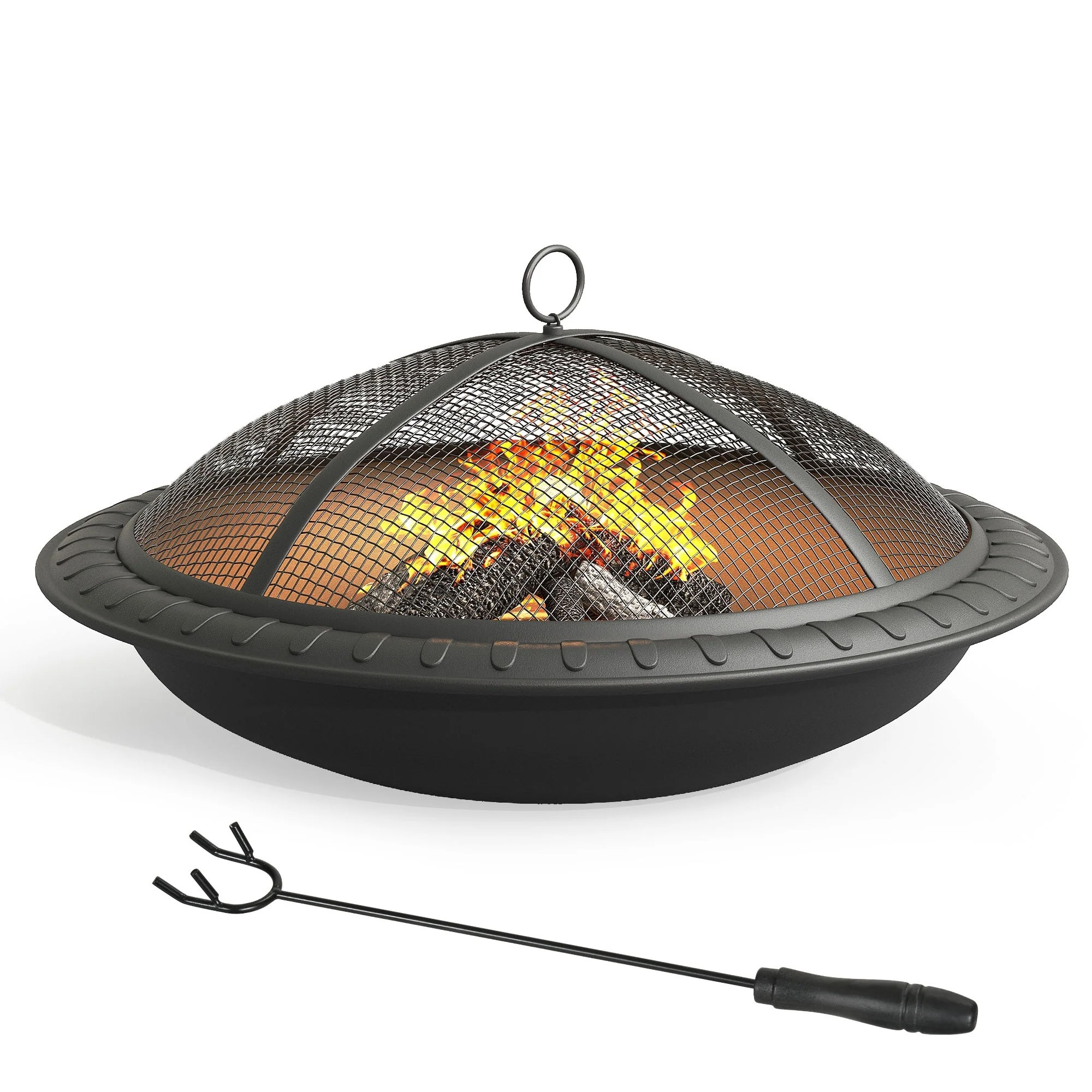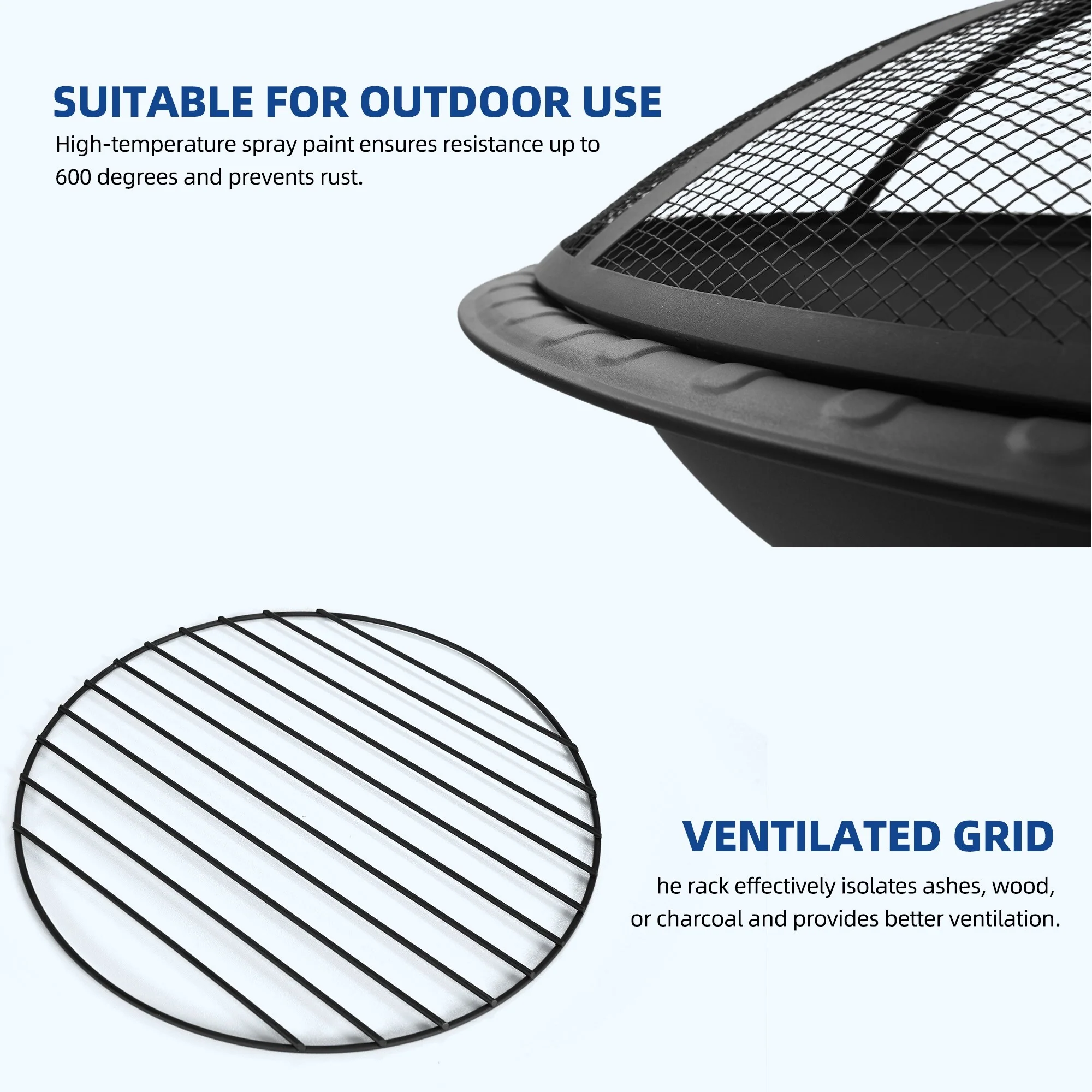 - Includes robust spark screen, fire poker, and detachable grate for enhanced safety.