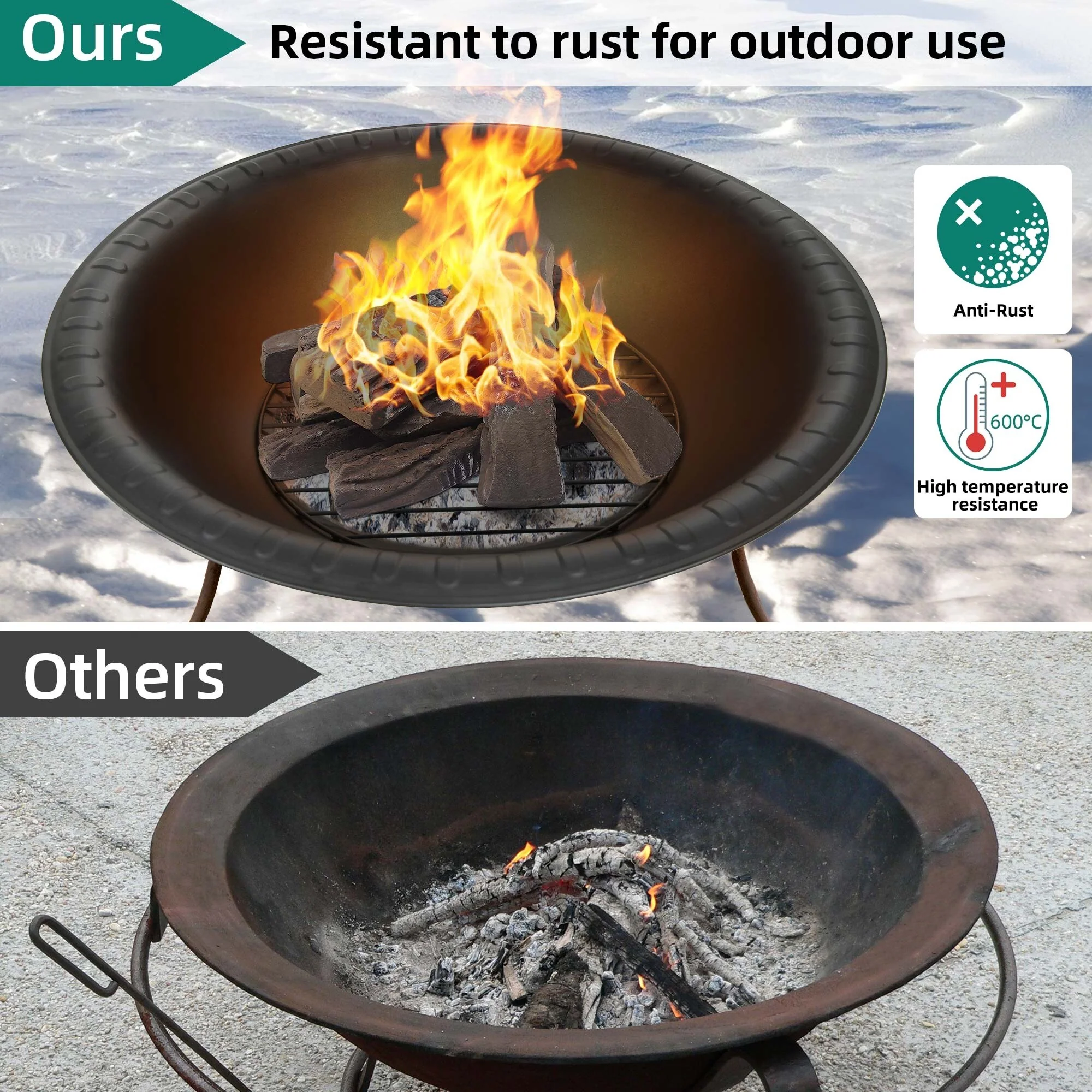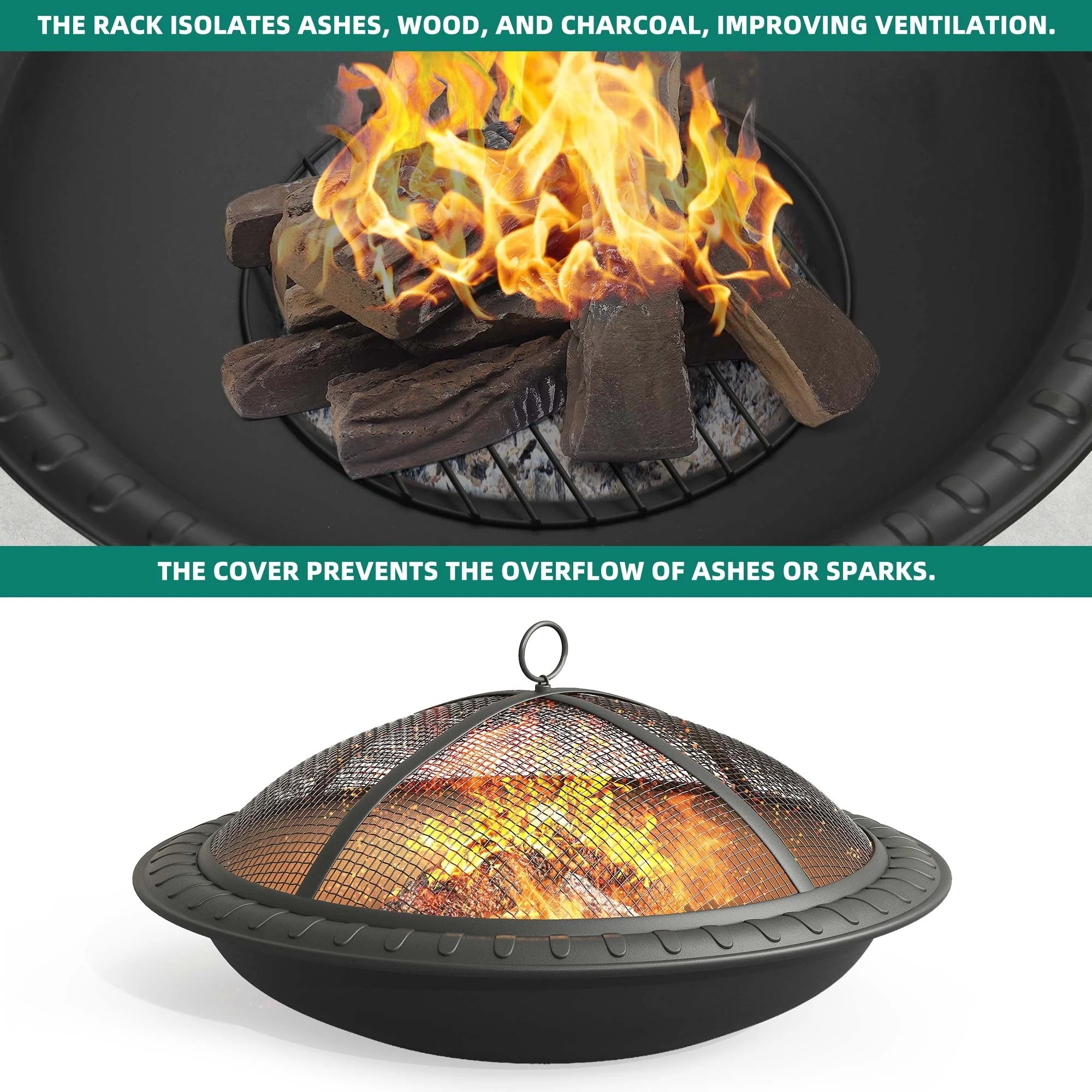 Experience the warmth and tranquility of our Heavy-Duty Fire Pit. Expertly crafted from premium iron with a high-temperature paint finish, this outdoor necessity ensures durability and longevity. The unique design collects burned wood, protecting your lawn and simplifying cleanup. It comes with a robust spark screen, fire poker, and detachable grate, making it ideal for backyard gatherings or camping adventures. Plus, its DIY-friendly components allow for easy replacement when needed.