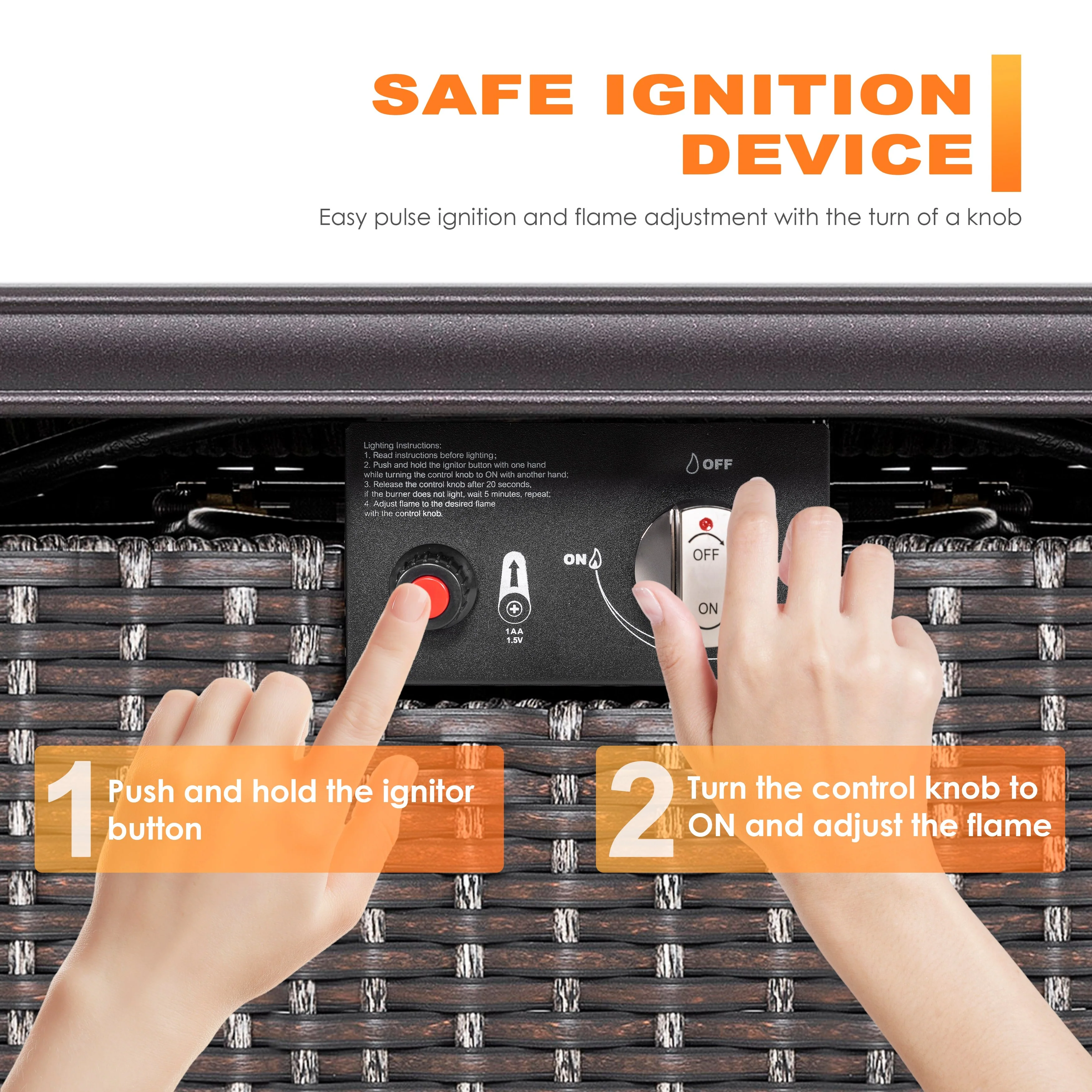 - Easy Ignition & Flame Adjustment: The push-button ignition system allows you to light the table safely and effortlessly. The control knob is made of zinc alloy for a longer life span. Just push the button and turn the control knob to adjust the flame to the desired temperature.
