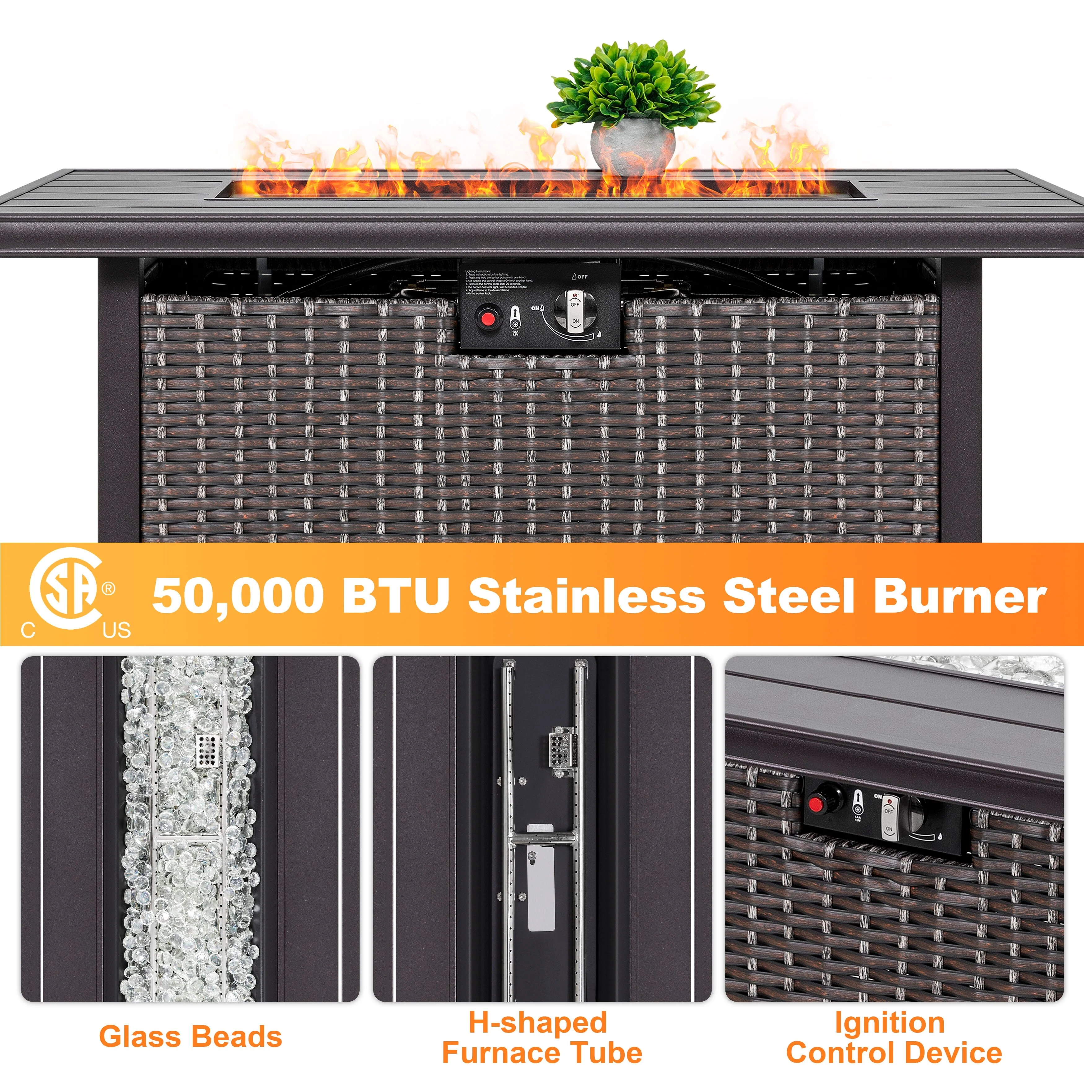 - Safe & Warm Bonfire: Use propane as the fuel to provide ash-free and smoke-free burning. The 50,000 BTU fire pit with a unique caliber concentrates the fire and offers sufficient warmth for your gatherings (4-8 people). Remember to keep some distance from the fire pit.