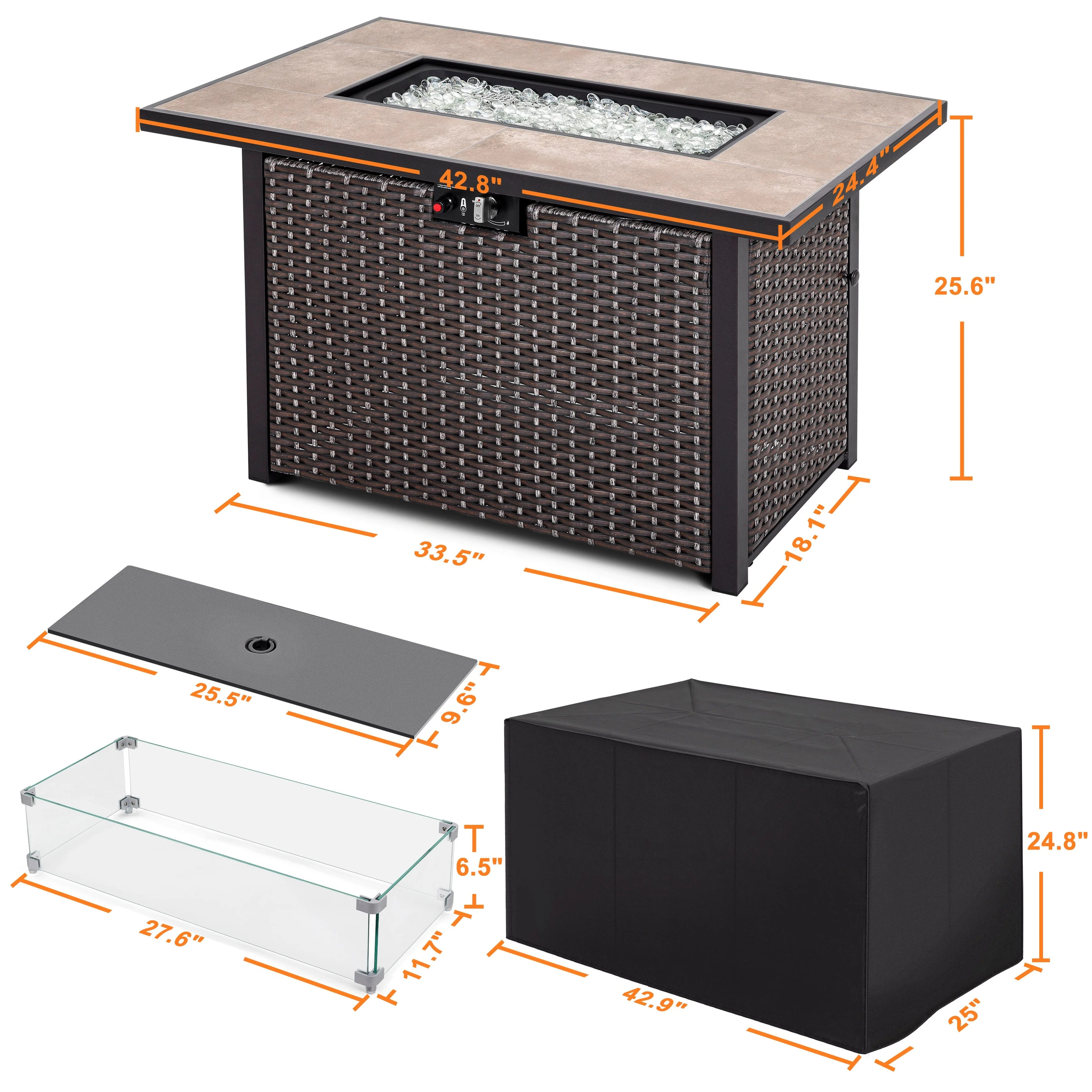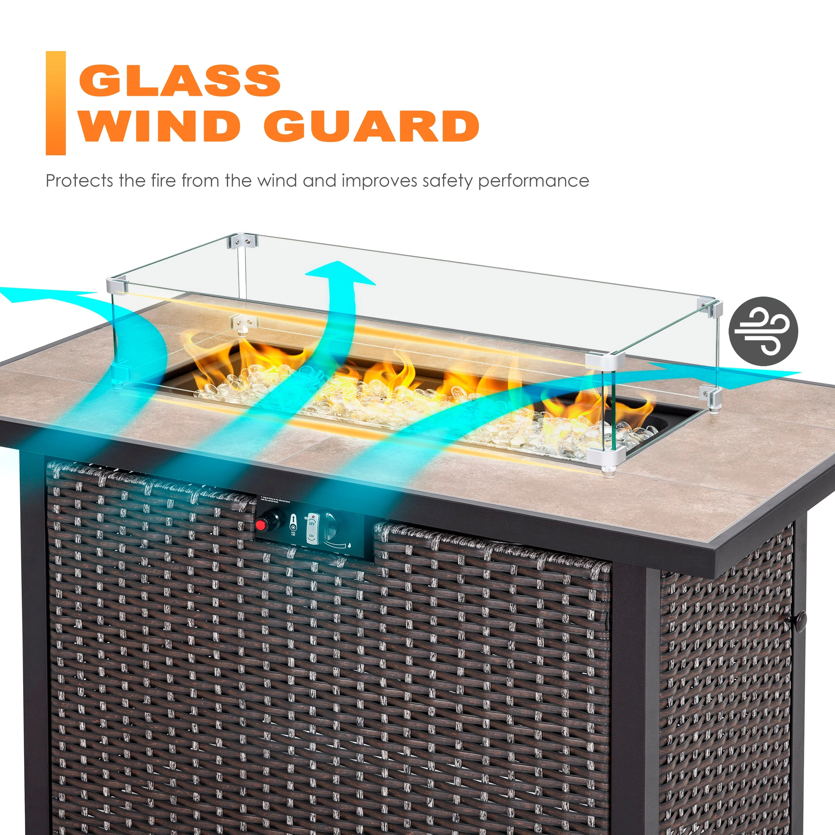 - Net Weight: Fire Table-74.52 lbs; Wind Guard-8.38 lbs; Glass Beads Weight: 7.14 lbs
