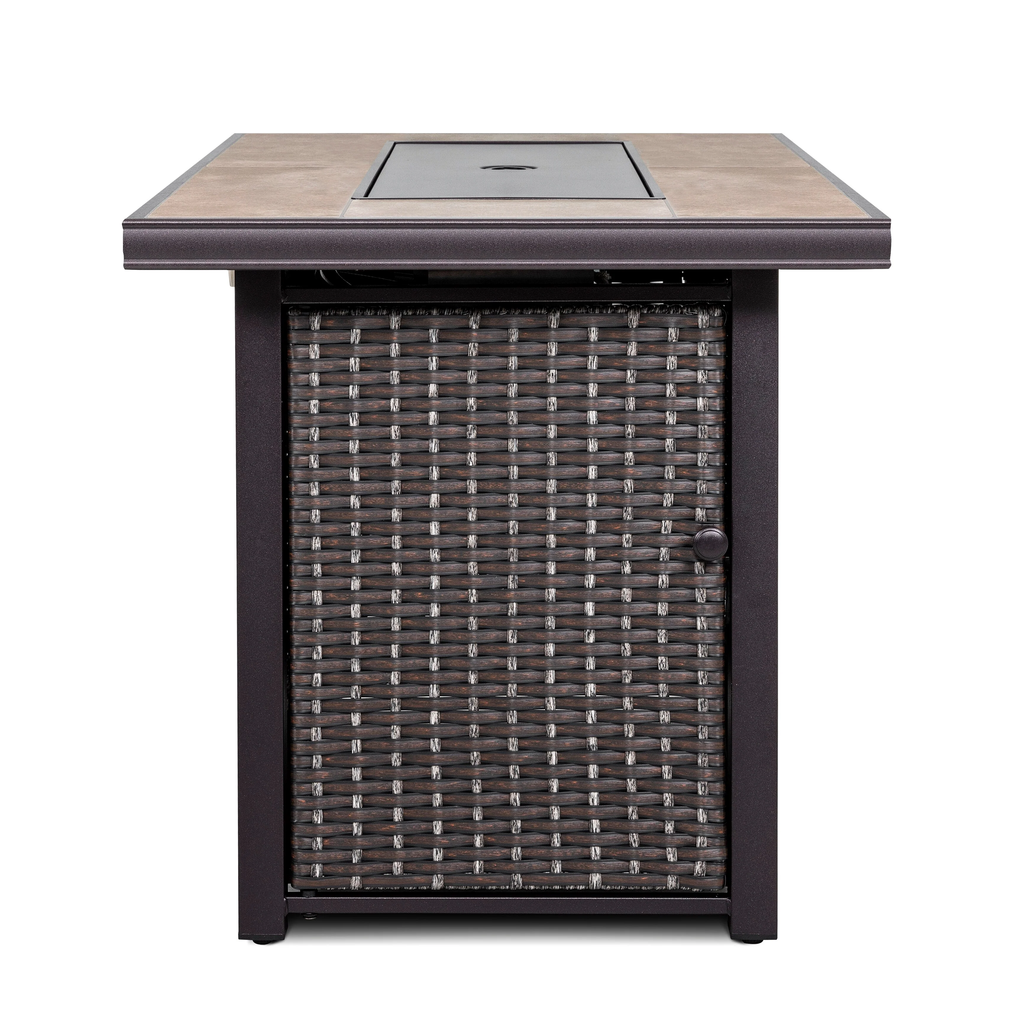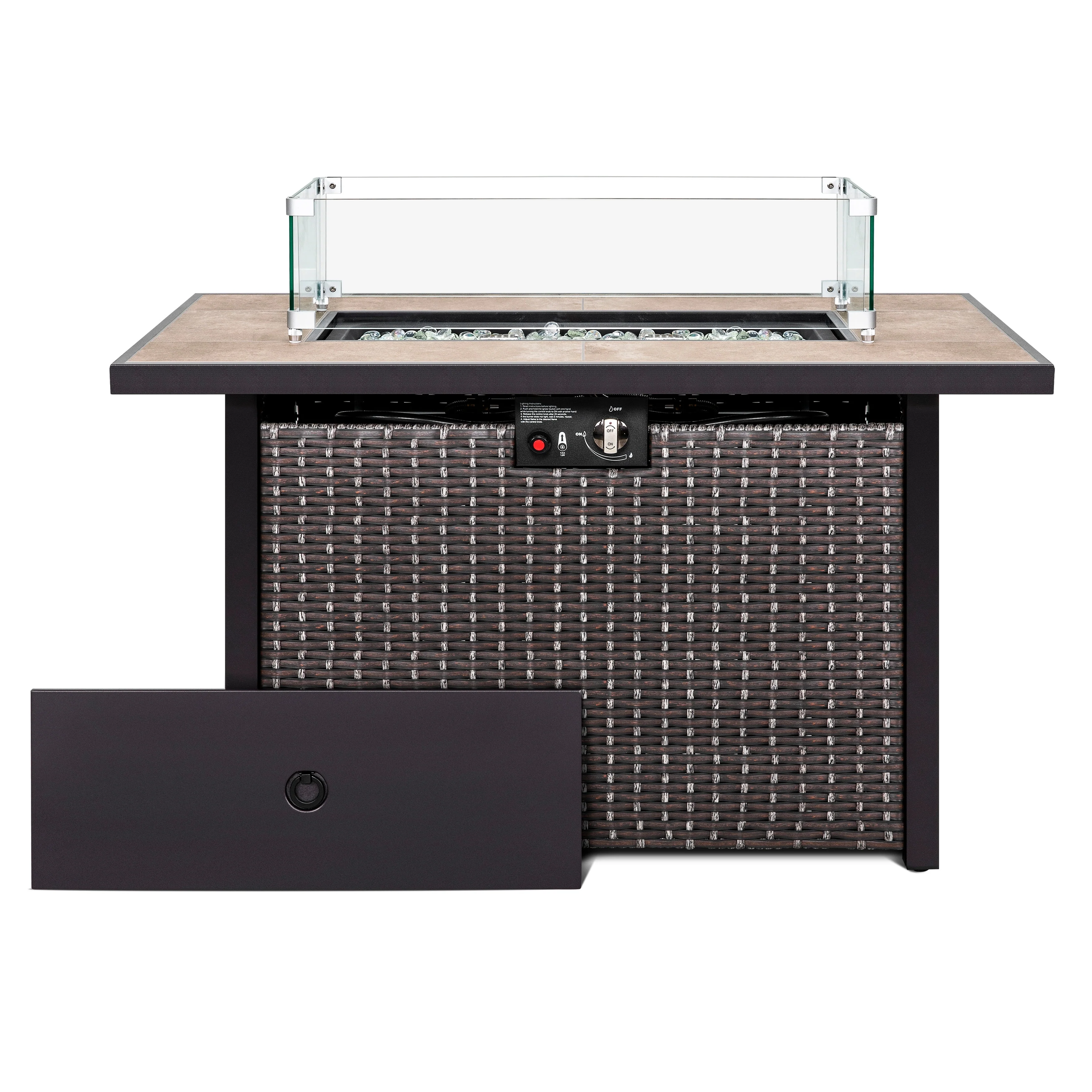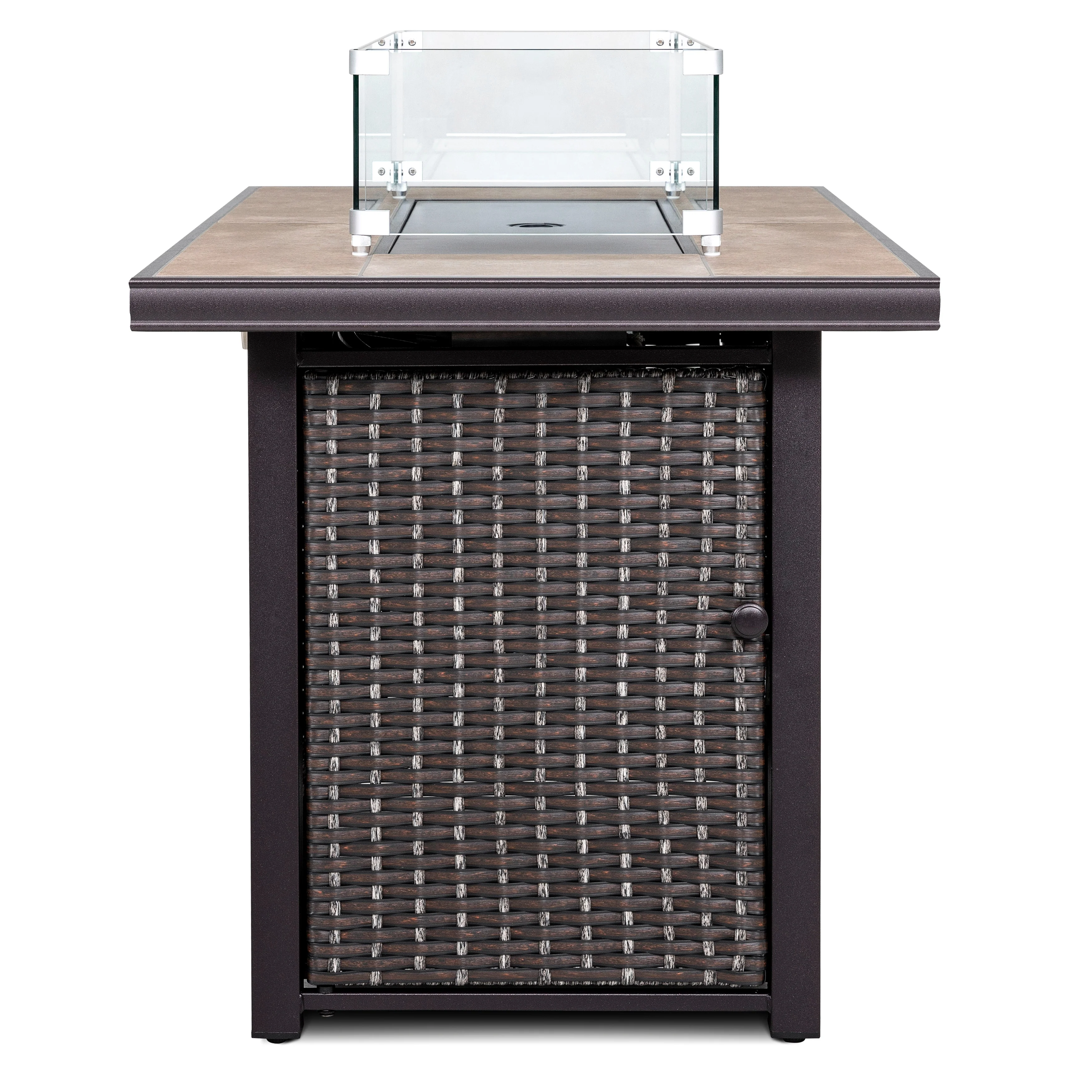Add glamour and mystery to your nights with this Nuu Garden Gas Fire Pit Table. The easy-to-care ceramic tabletop and wicker rattan base bring a classic and elegant look to your outdoor space. Dancing flames elegantly reflect on the glass guard and shine with a flickering effect. From intimate conversations around a cozy fire to stargazing on cold winter nights, our wonderful fire pit will have no trouble gathering everyone together for hours of quality time.