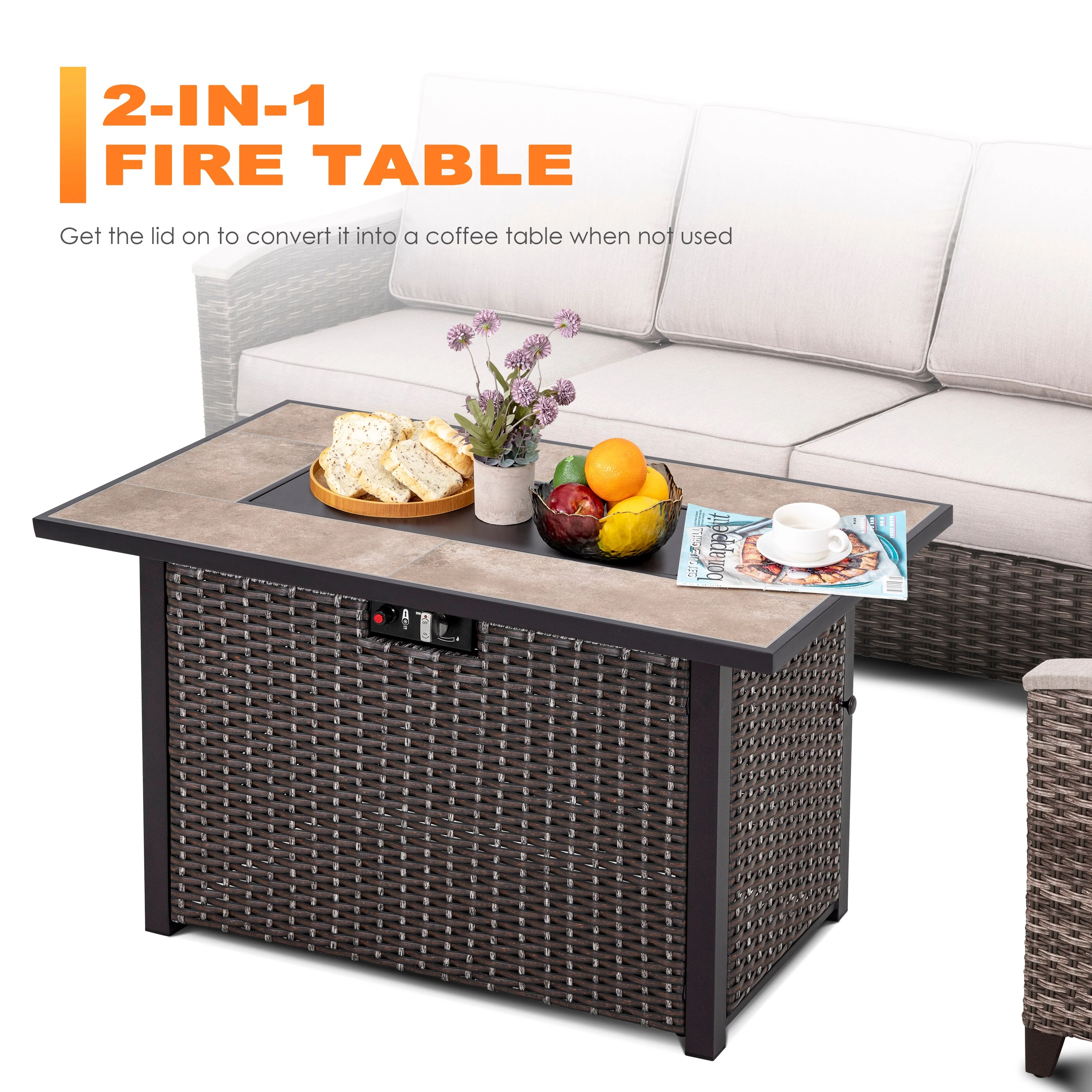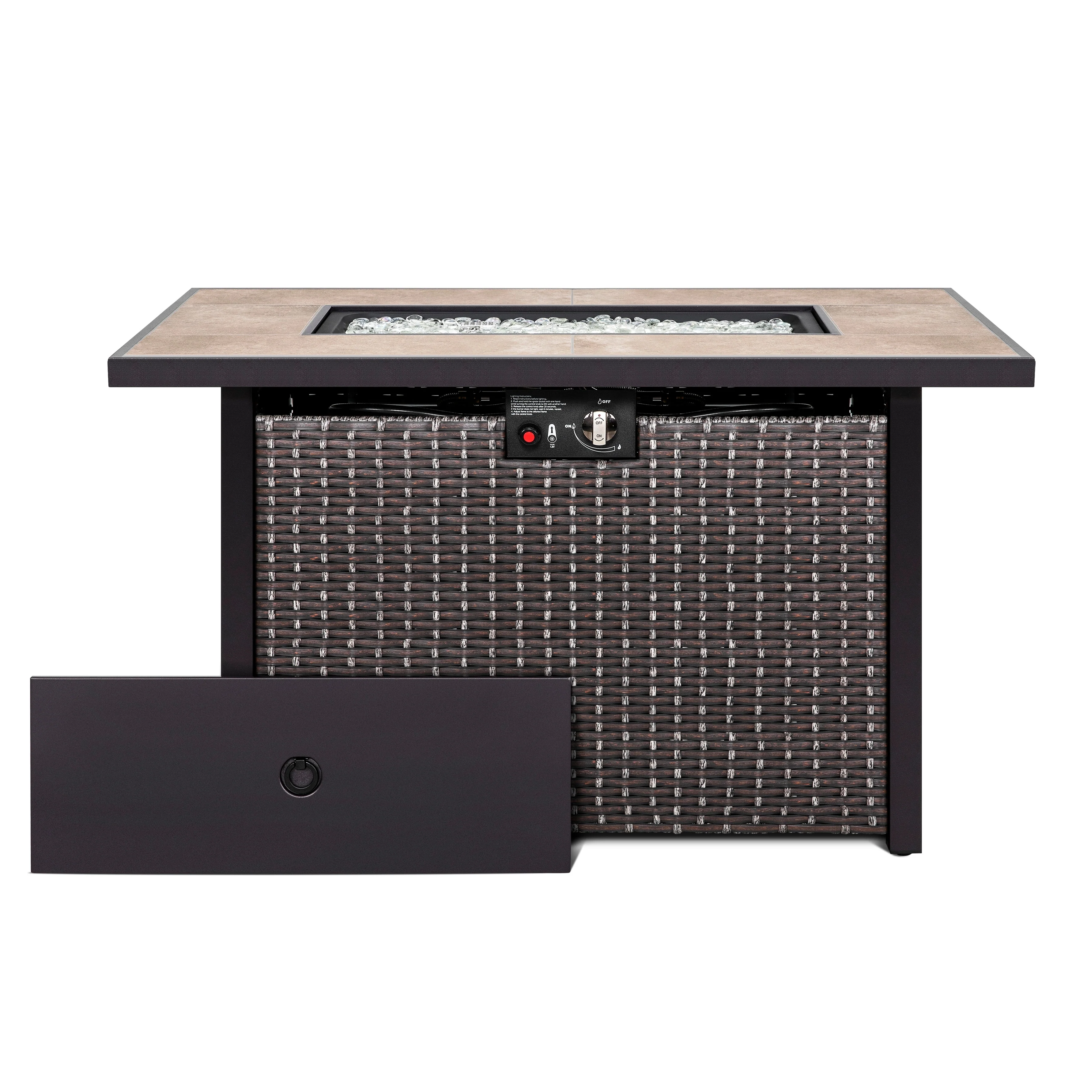 - Safe & Warm Bonfire: This Nuu Garden 43'' fire table uses Propane as the fuel, which provides ash-free and smoke-free burning. The insulating metal plate under the fire bowl prevents the hose from touching the iron bowl. Equipped with an easy push-button spark ignition system, the maximum heat output of this fire table could reach 50,000 BTU. The coldness will no longer be a hinder to your outdoor activities.