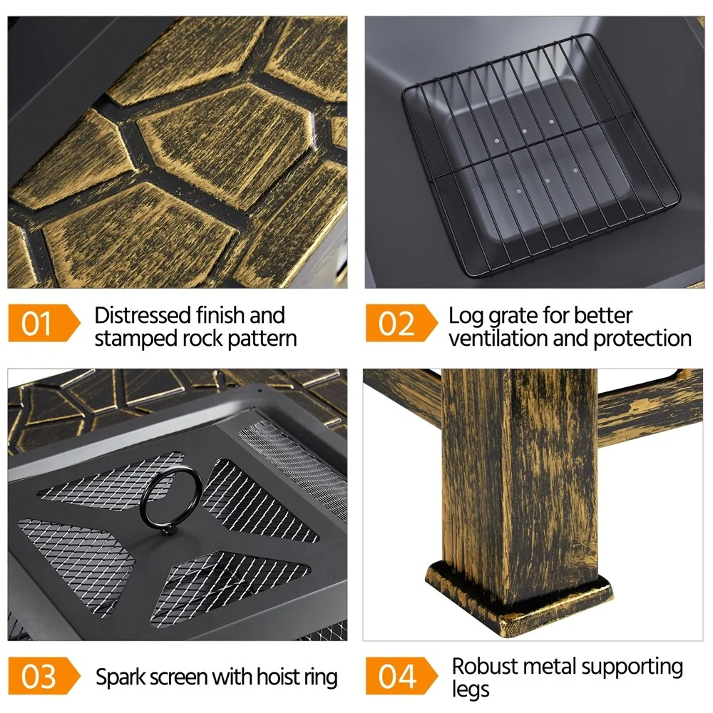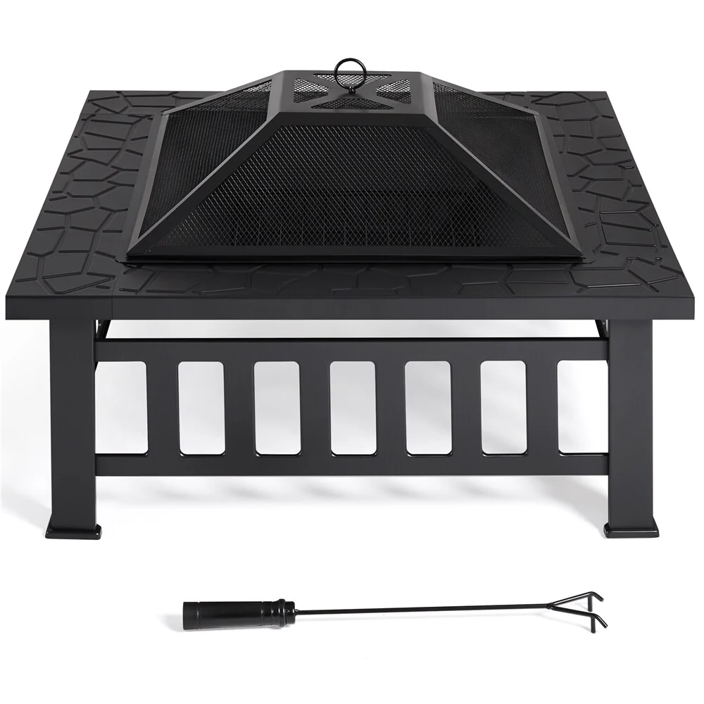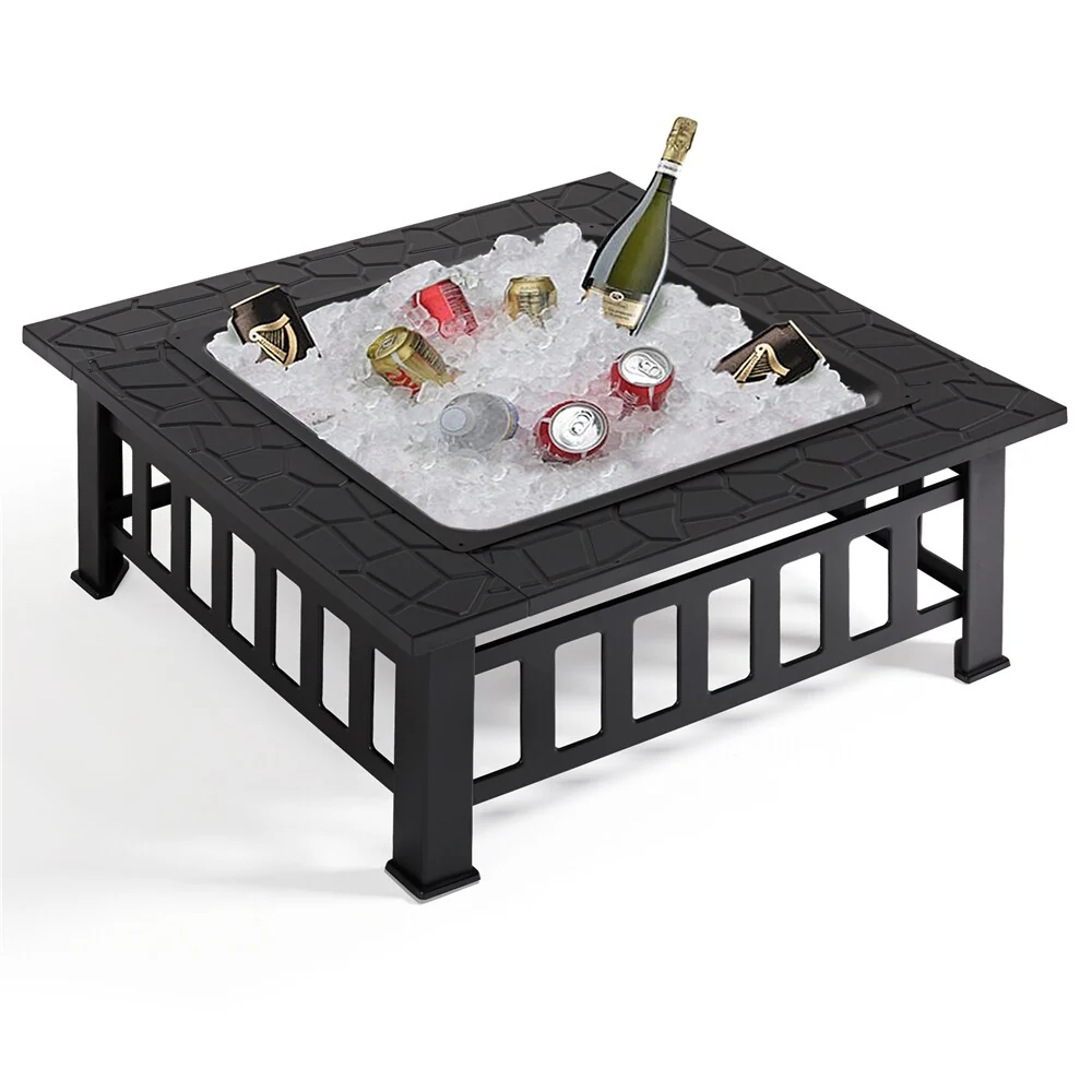 Get ready to enjoy a cozy campfire, a delicious barbecue, or chilled drinks with the Yaheetech 34'' Metal Square Fire Pit Stove Brazier. Made of heat-resistant painted steel and powder-coated steel frame, this fire pit can withstand high temperatures and outdoor elements. The fire bowl is spacious and features ventilation holes at the bottom to increase airflow. Plus, it doubles as an ice bucket for your next outdoor party!
