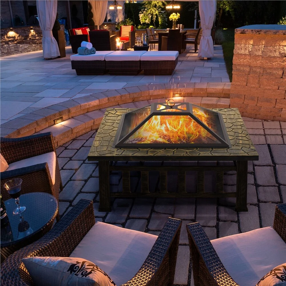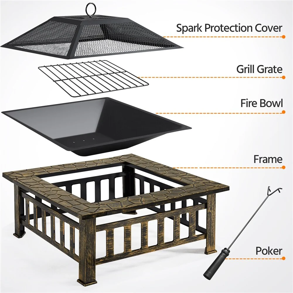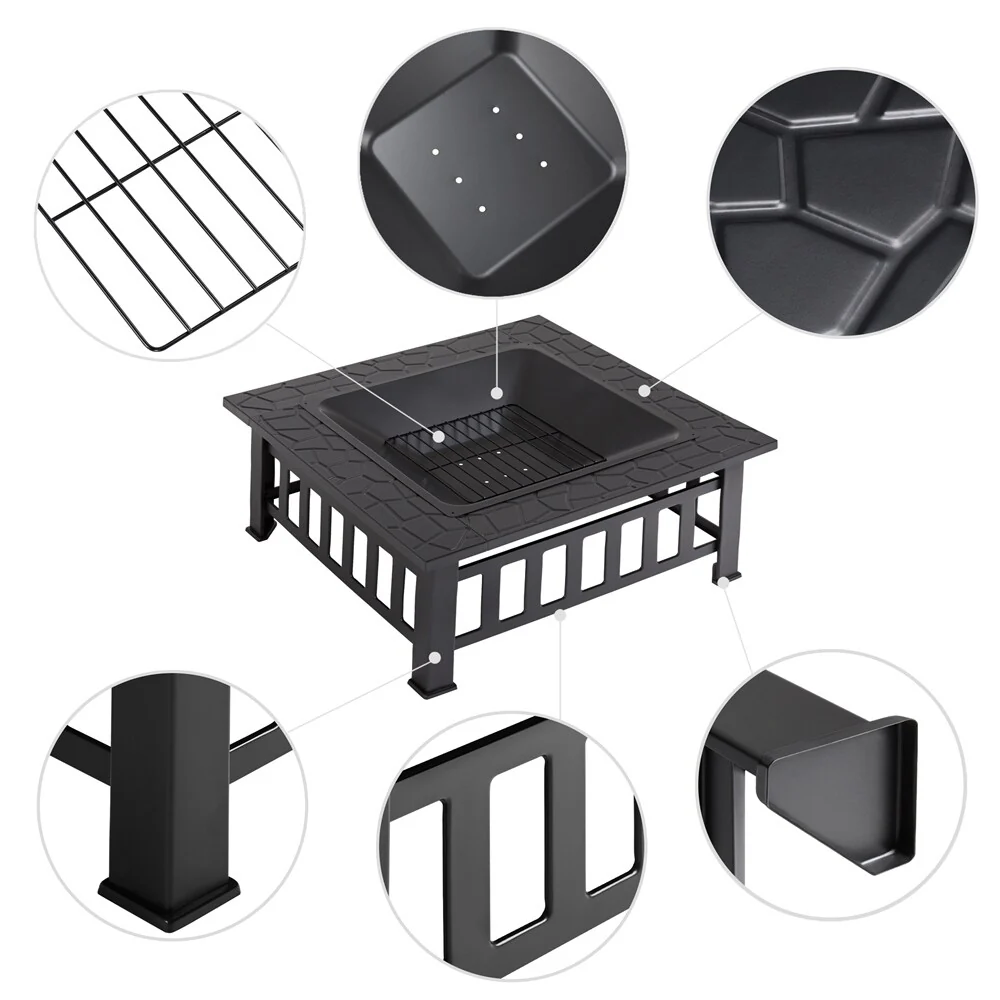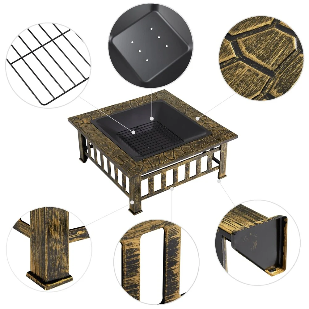 Get ready to enjoy a cozy campfire, a delicious barbecue, or chilled drinks with the Yaheetech 34'' Metal Square Fire Pit Stove Brazier. Made of heat-resistant painted steel and powder-coated steel frame, this fire pit can withstand high temperatures and outdoor elements. The fire bowl is spacious and features ventilation holes at the bottom to increase airflow. Plus, it doubles as an ice bucket for your next outdoor party!
