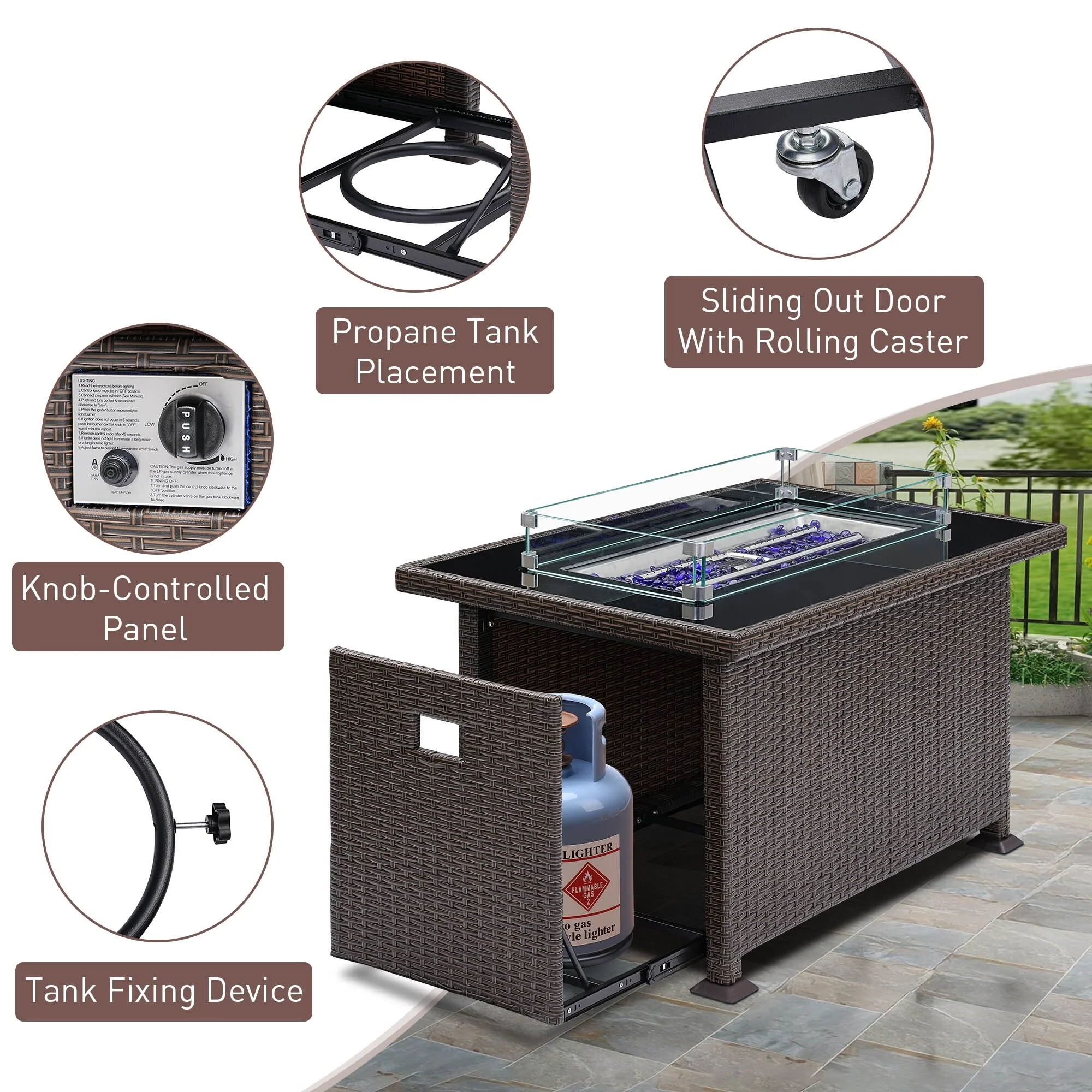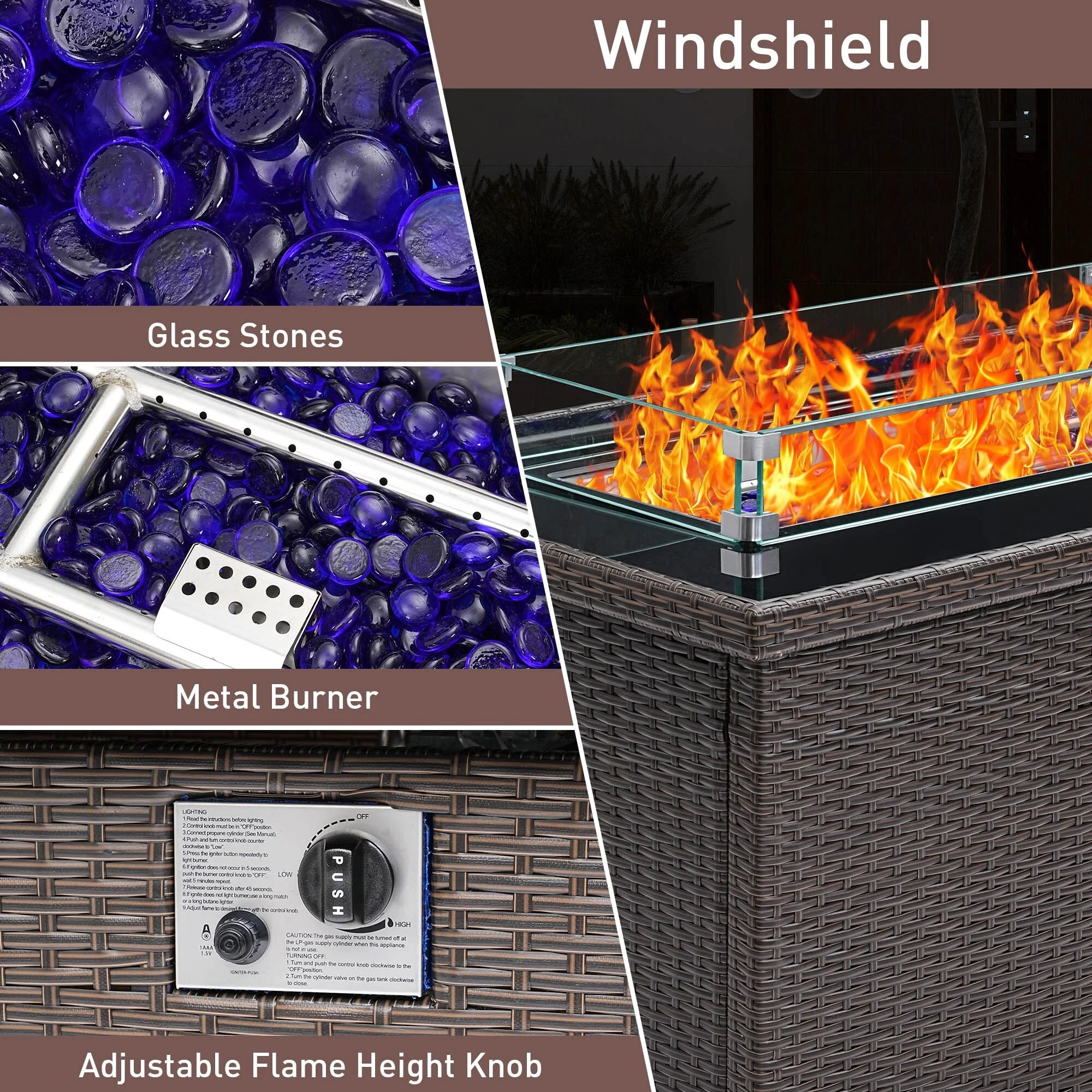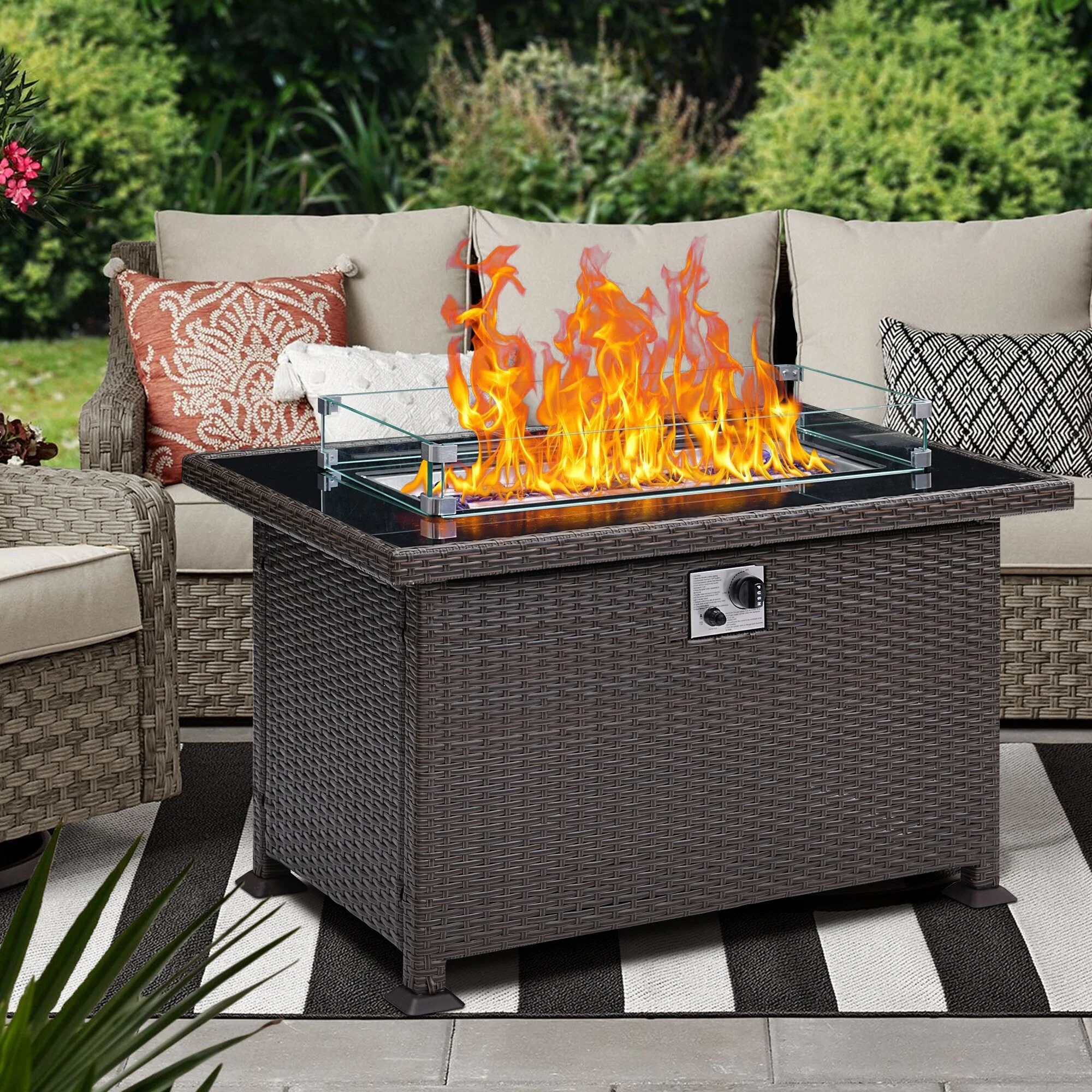 Enjoy your outdoor time with this powerful fire pit table. CSA certification ensures you use the fire pit table safely and securely while enjoying the party. The upgraded all-weather wicker is a perfect match for your patio decor, while glass beads accentuate an active fire. We also provide a durable fabric cover to protect your table from the elements, and a removable lid to transform your fire pit into an elegant dining table, coffee table or casual bar, beautify to your outside backyard or your garden
