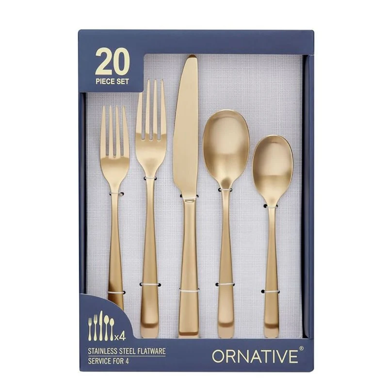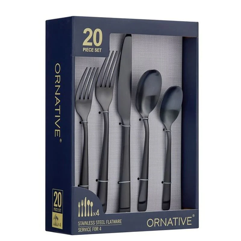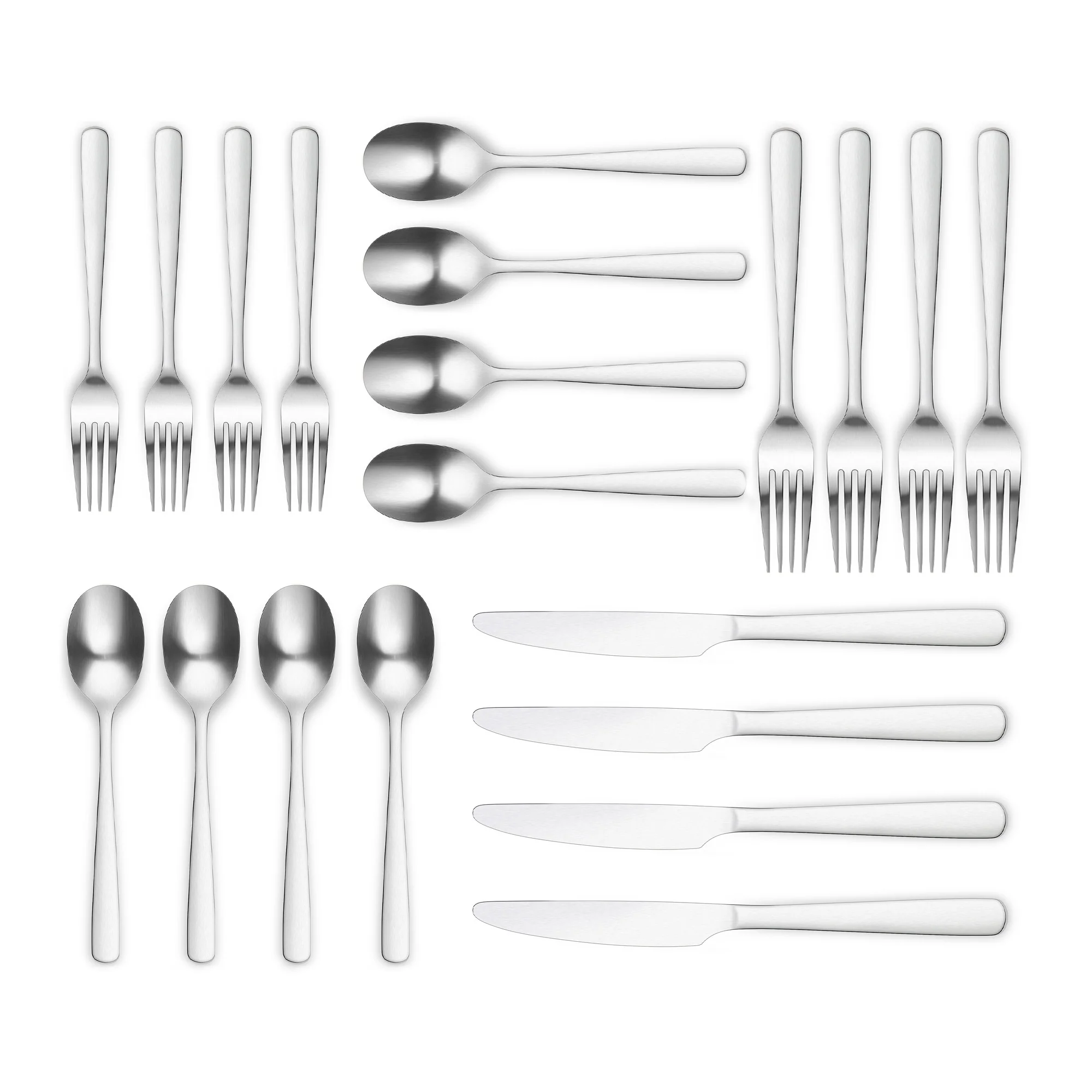 - Set include: Four (4) Dinner Forks, Four (4) Salad Forks, Four (4) Knifes, Four (4) Teaspoons, Four (4) Tablespoons