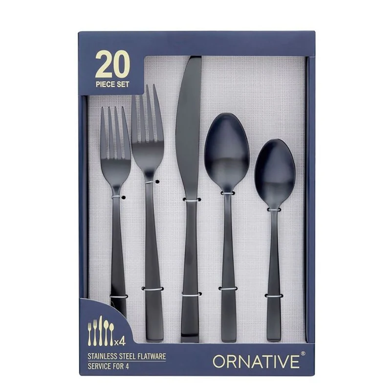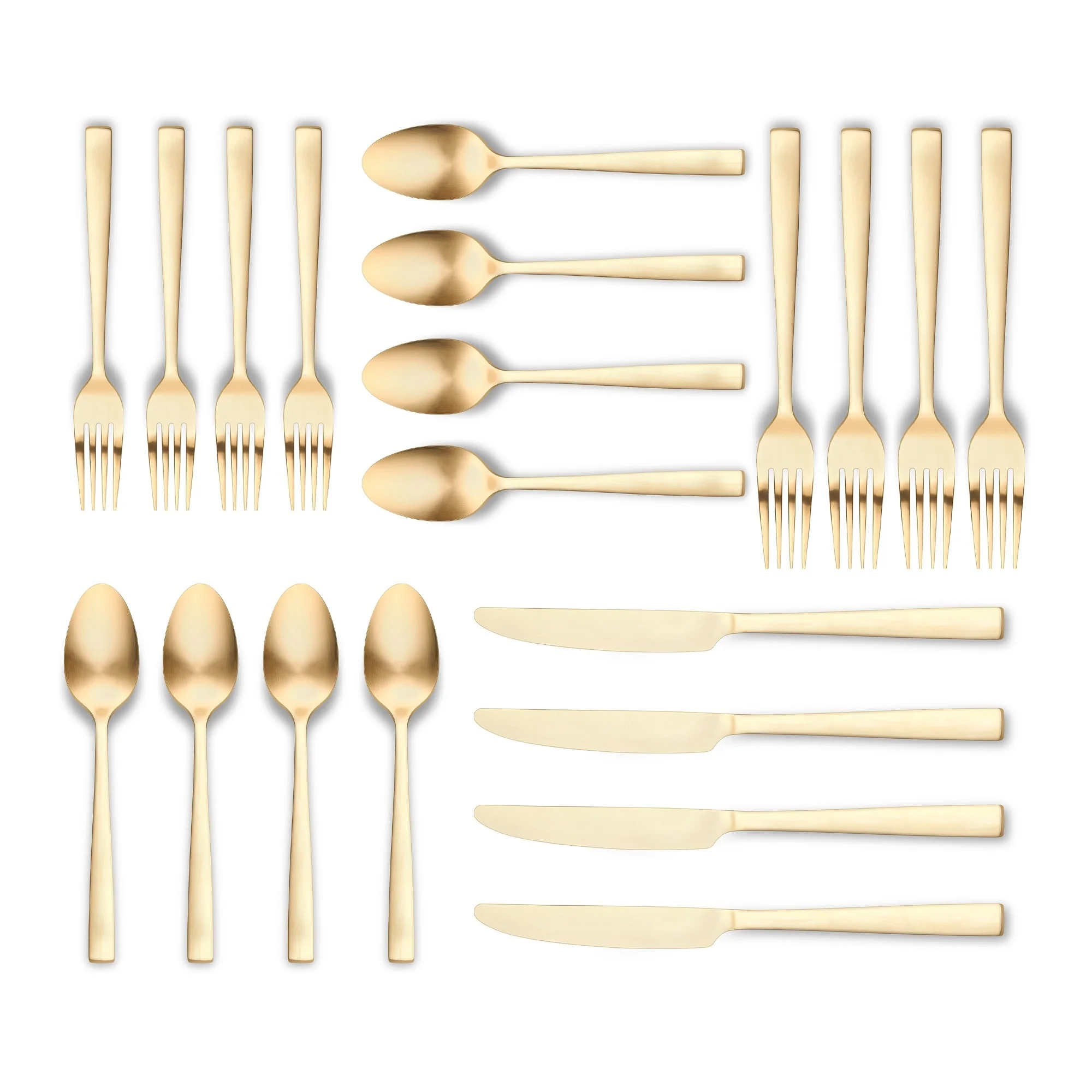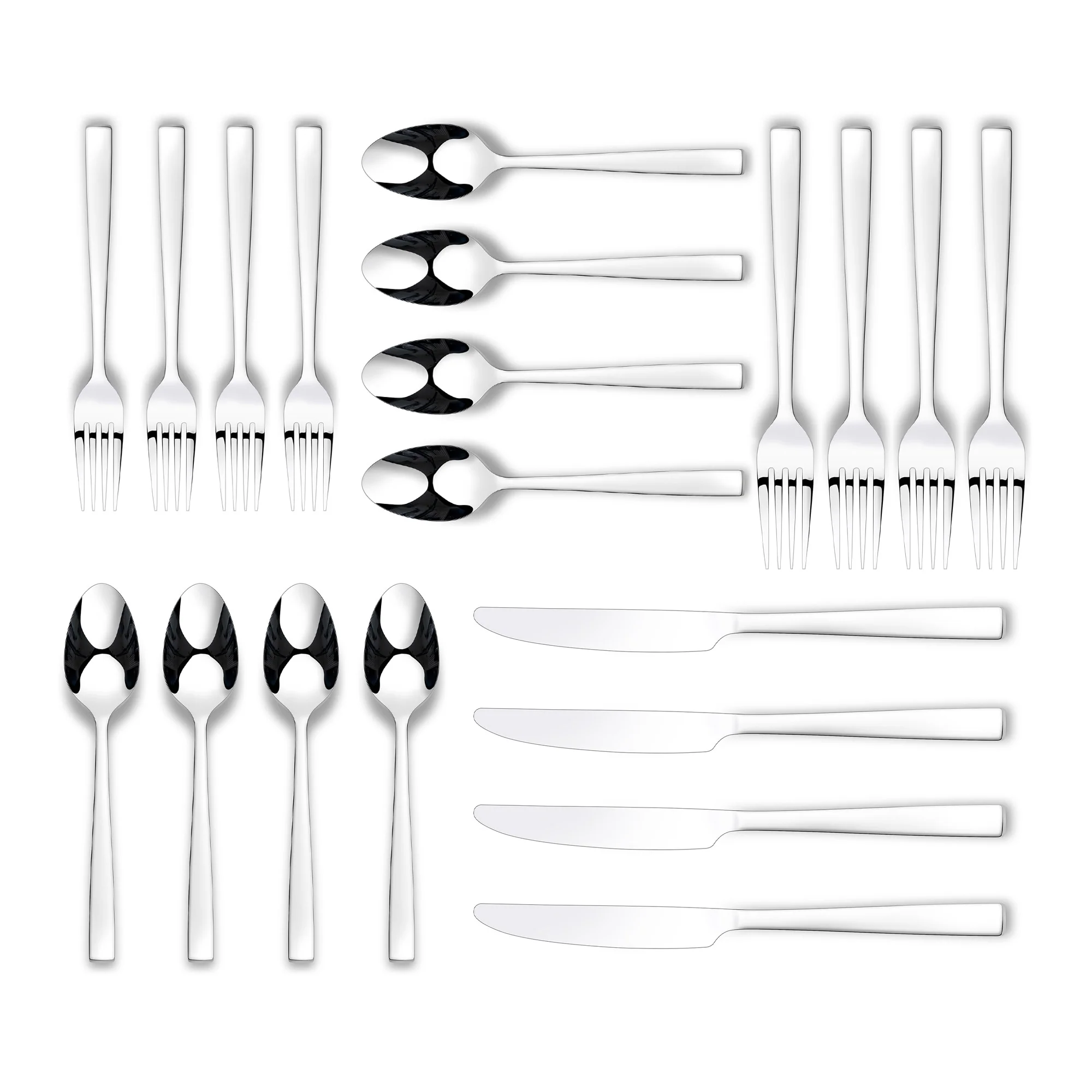 - Set include: Four (4) Dinner Forks, Four (4) Salad Forks, Four (4) Knifes, Four (4) Teaspoons, Four (4) Tablespoons