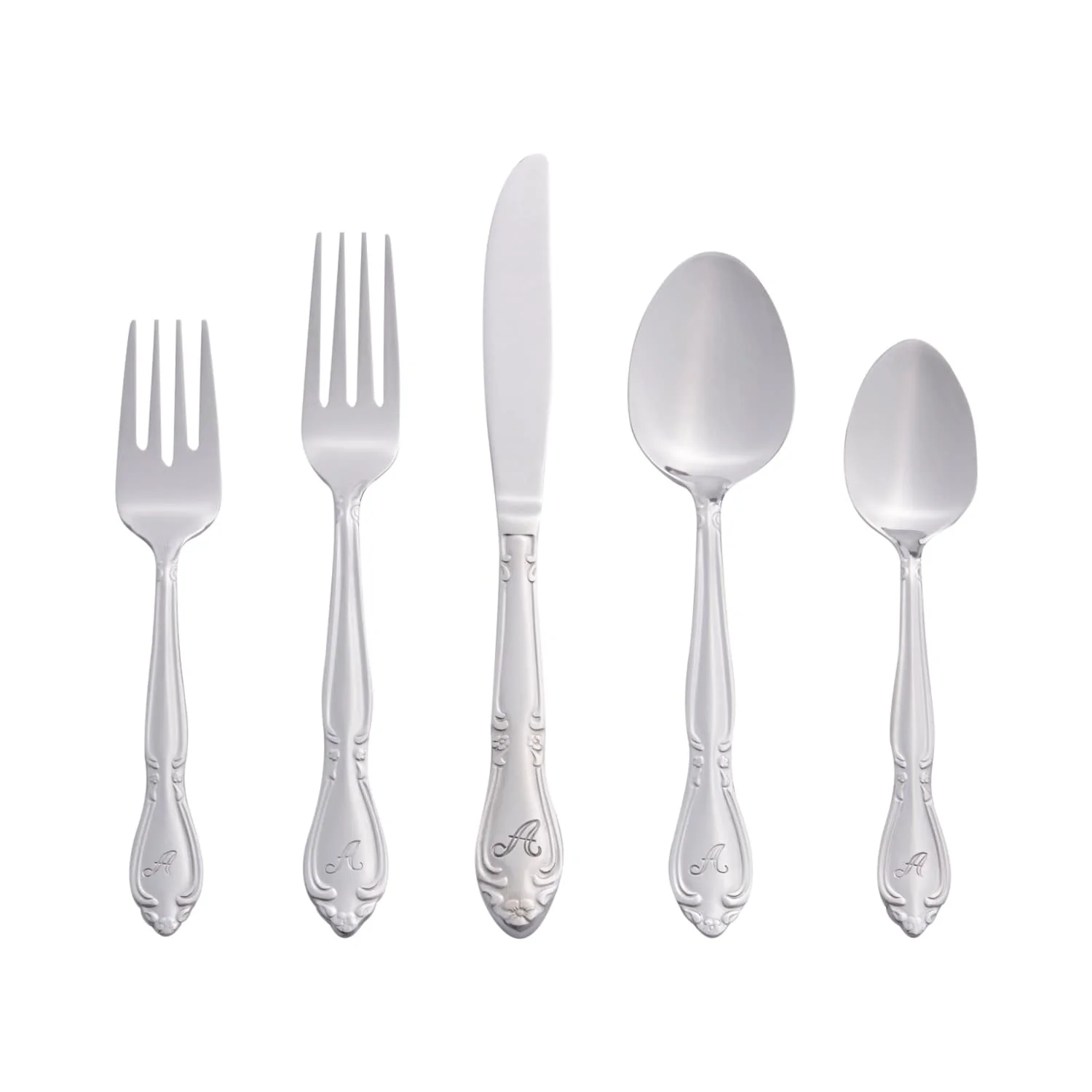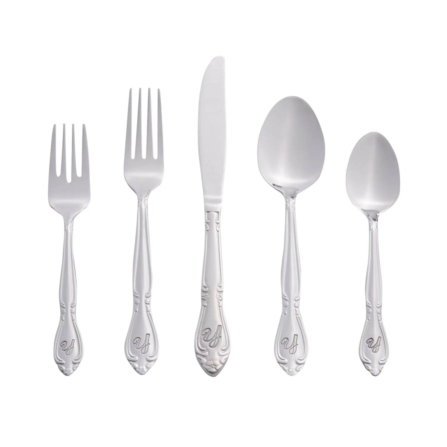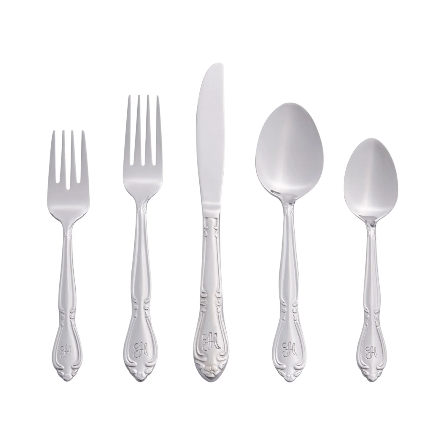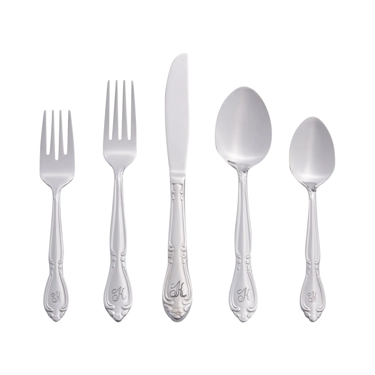 - Our flatware set for 8, features an elegant rose blossom motif that coordinates with any table setting