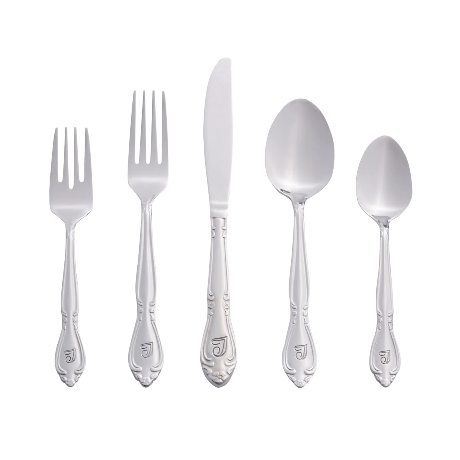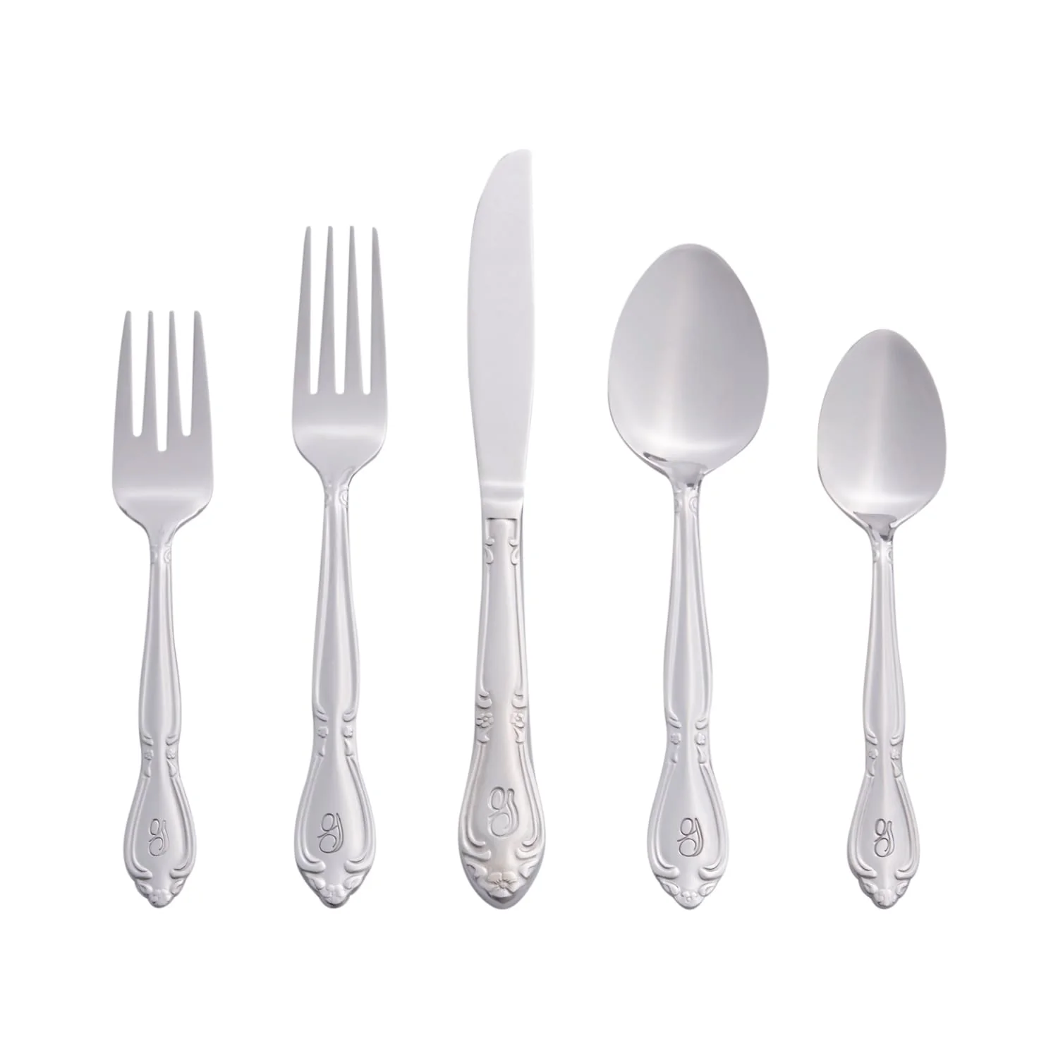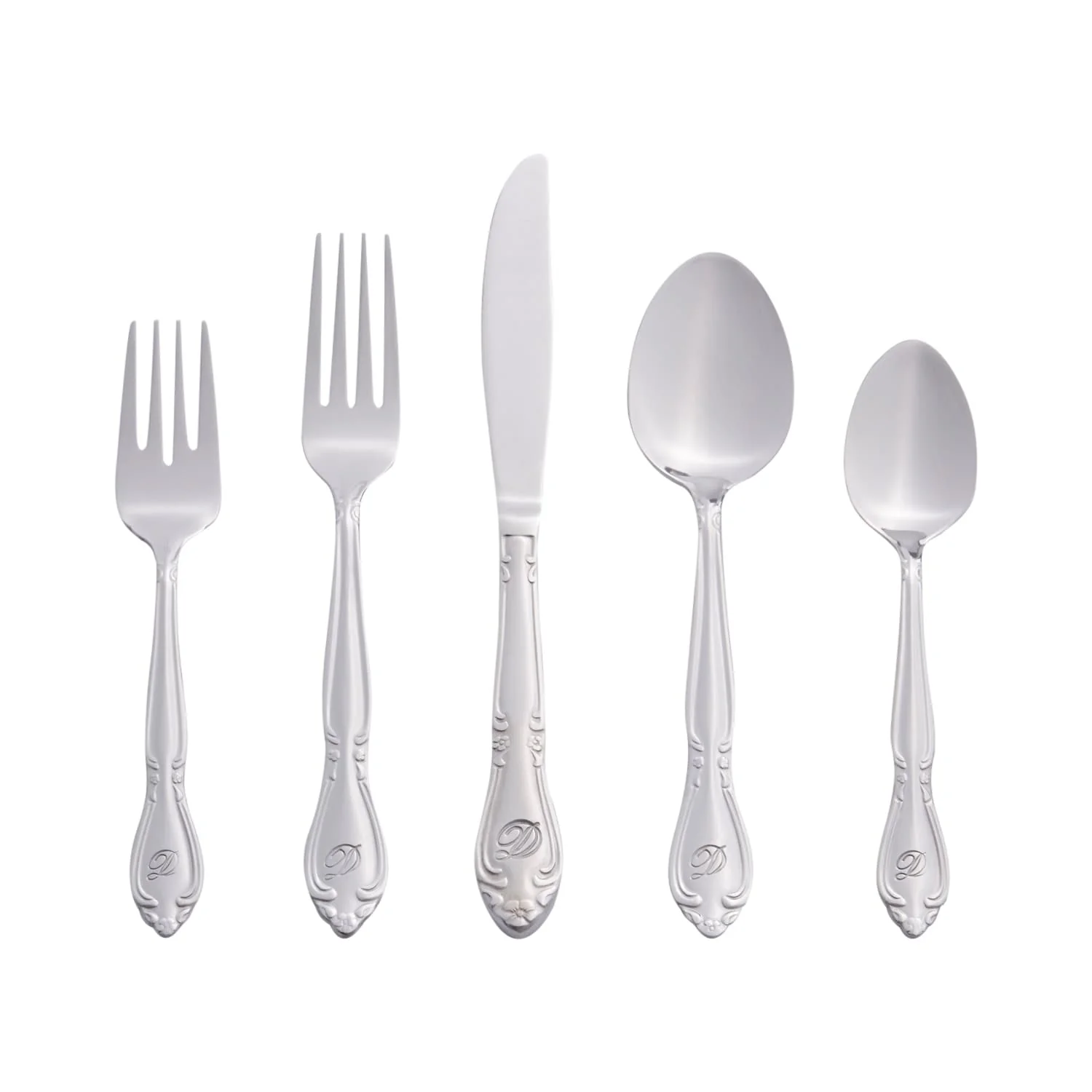 - Our flatware set for 8, features an elegant rose blossom motif that coordinates with any table setting