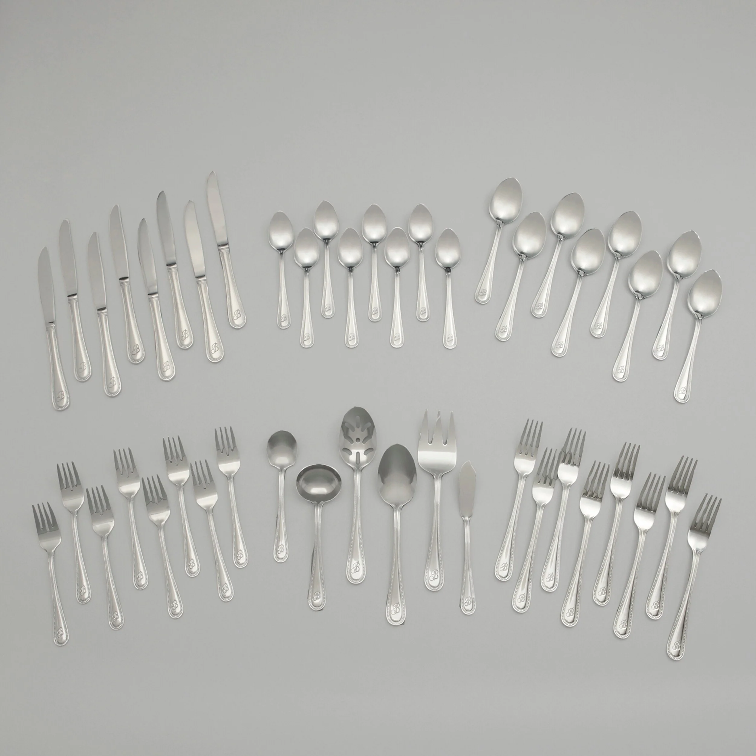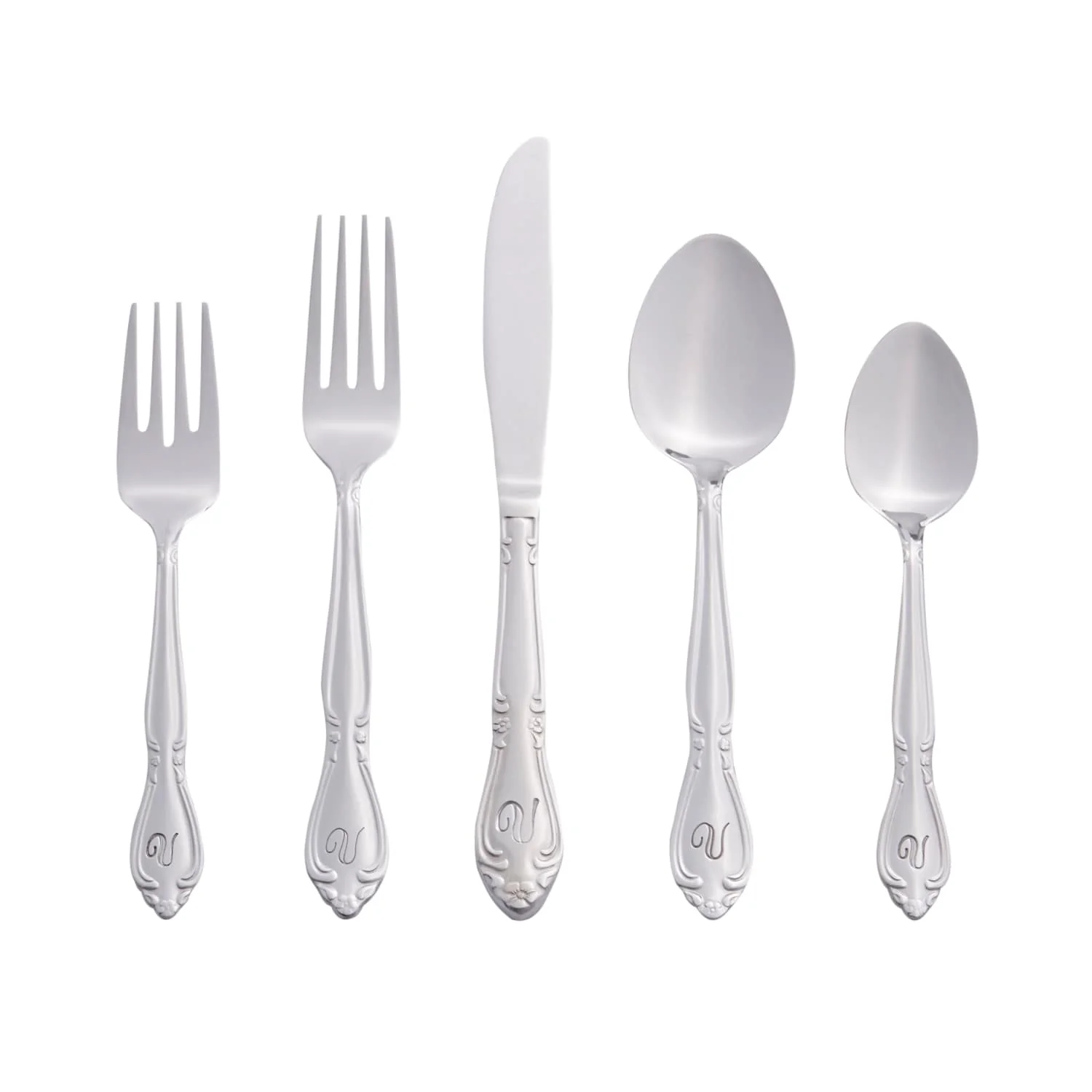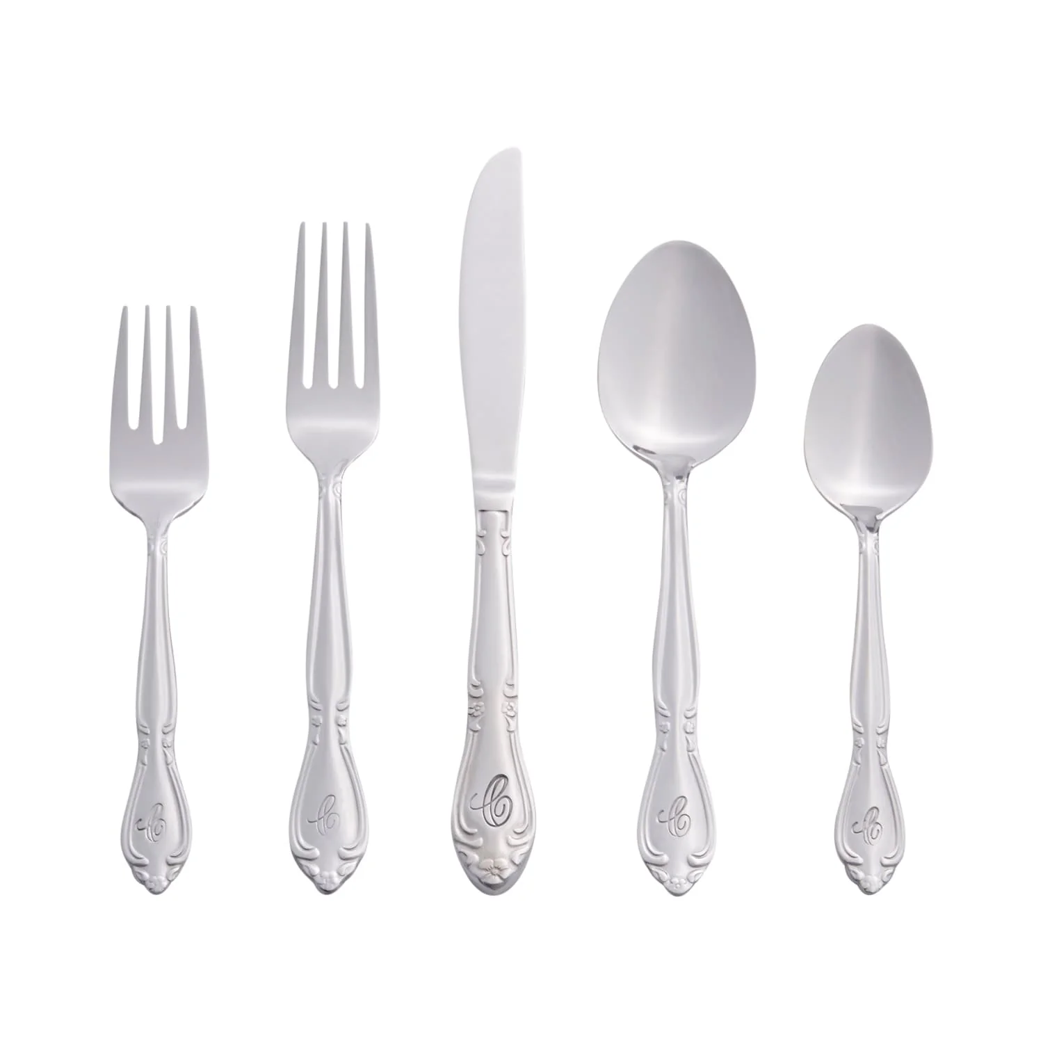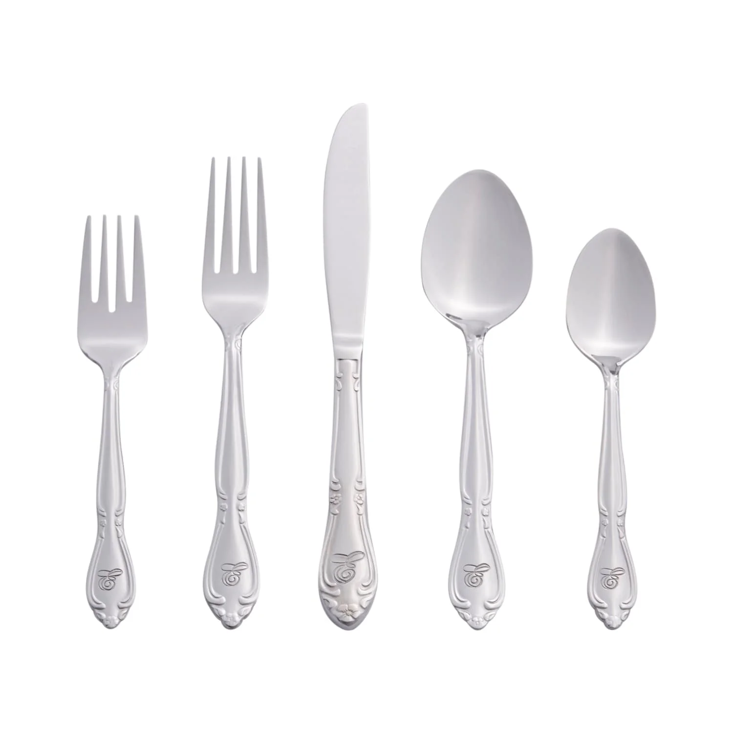 - Our flatware set for 8, features an elegant rose blossom motif that coordinates with any table setting