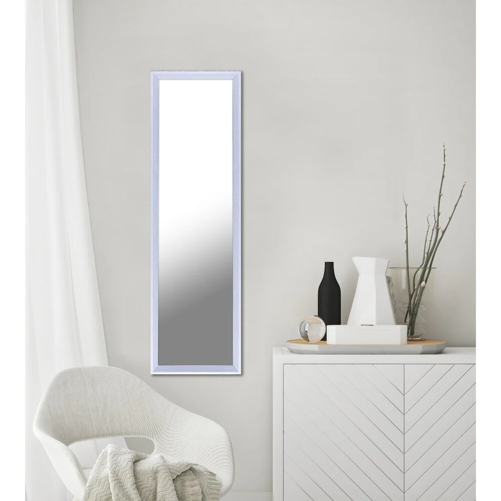 Update your rental home with this beautiful mirror. Built with a White Patina finish Styrene frame this tall mirror looks sleek and contemporary. This mirror is ready to hang and comes with pre-attached hooks.