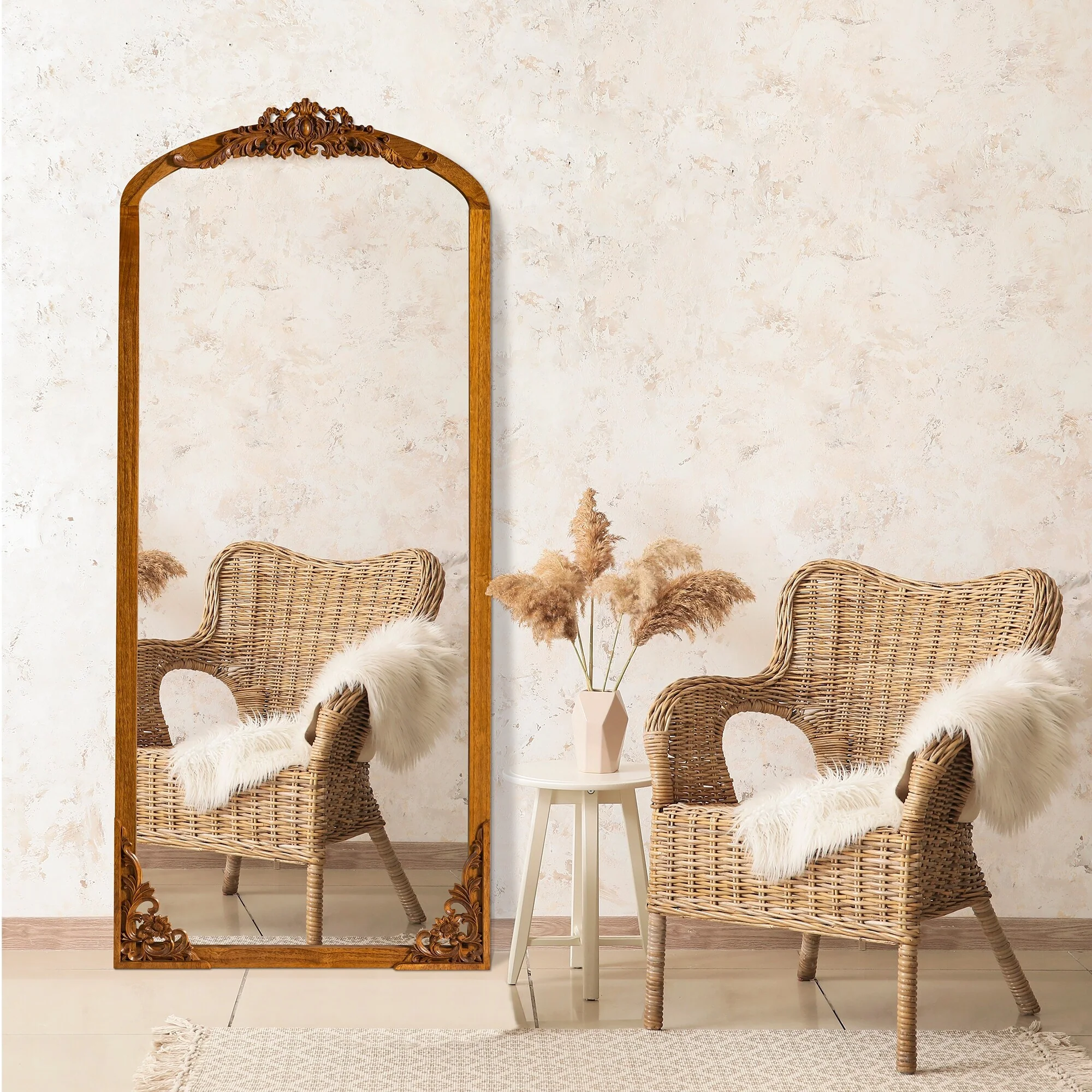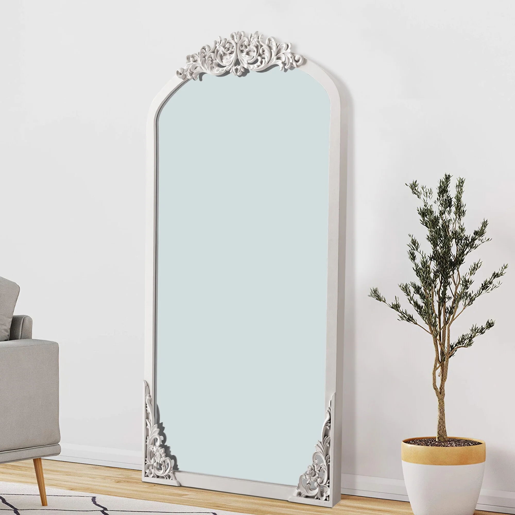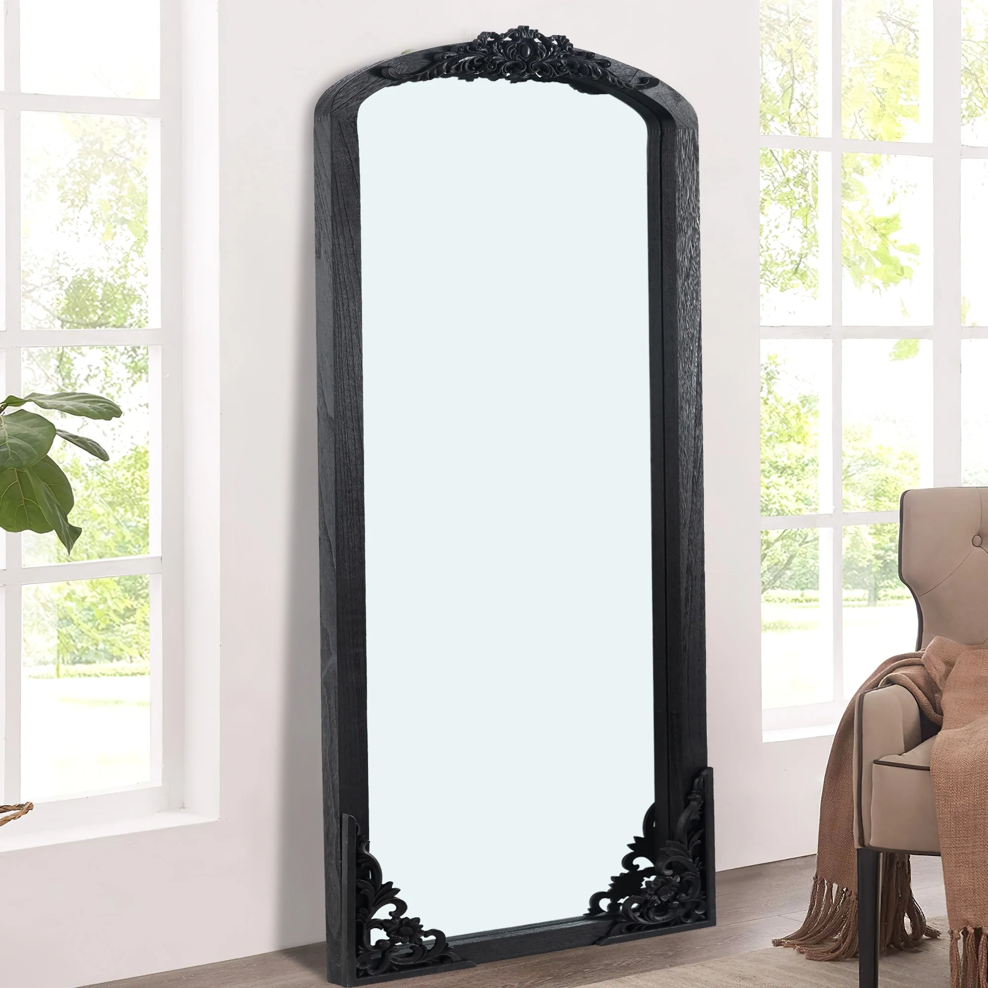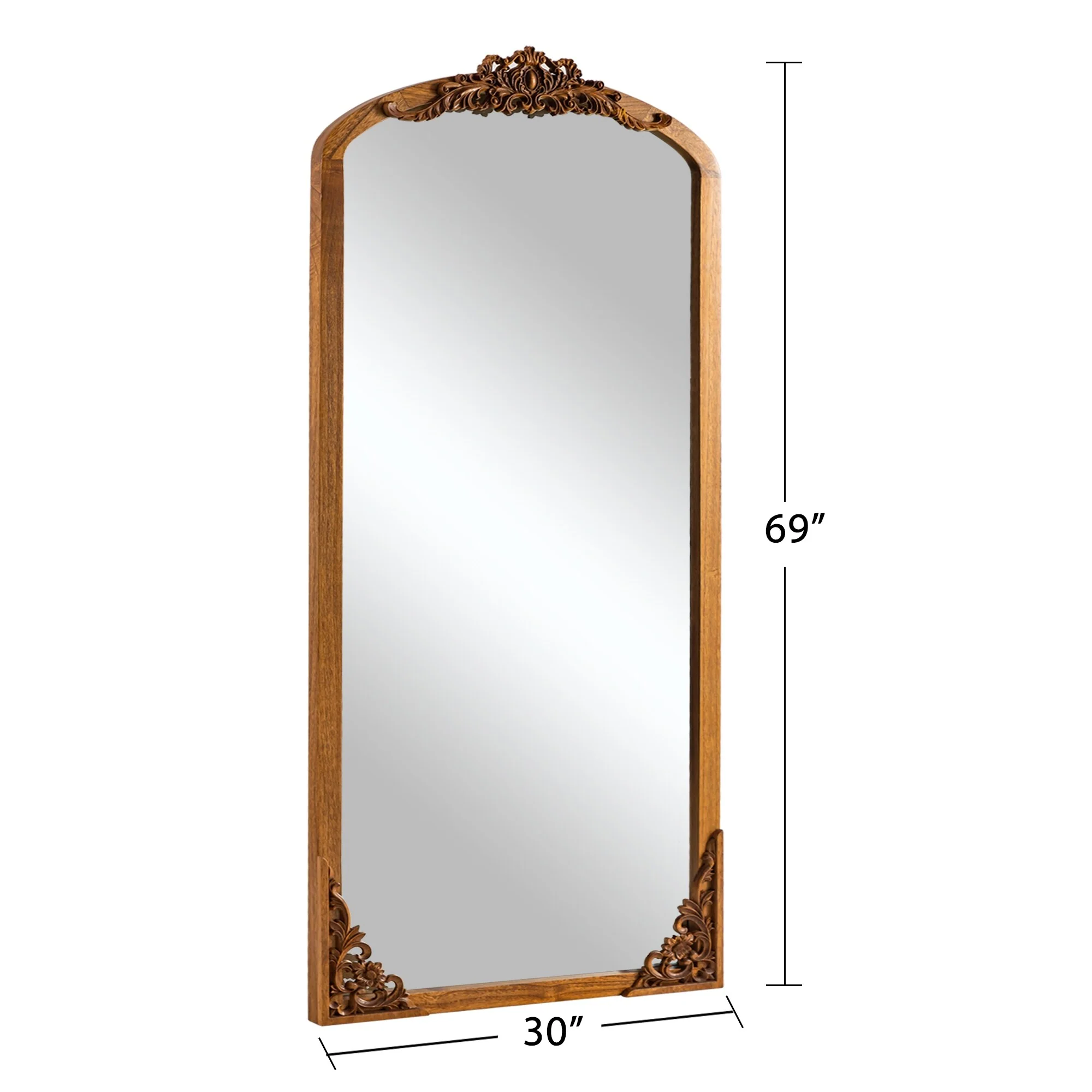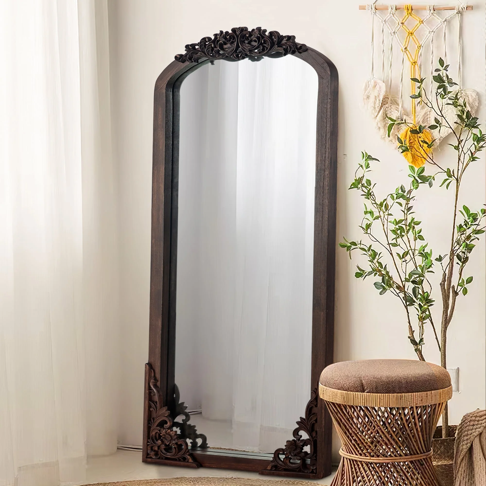 Elevate your room's ambiance with the timeless elegance of this solid wood floor mirror. The arched silhouette and intricate windowpane design create a vintage-inspired optical illusion that enhances your space and adds distinctive character to any decor.