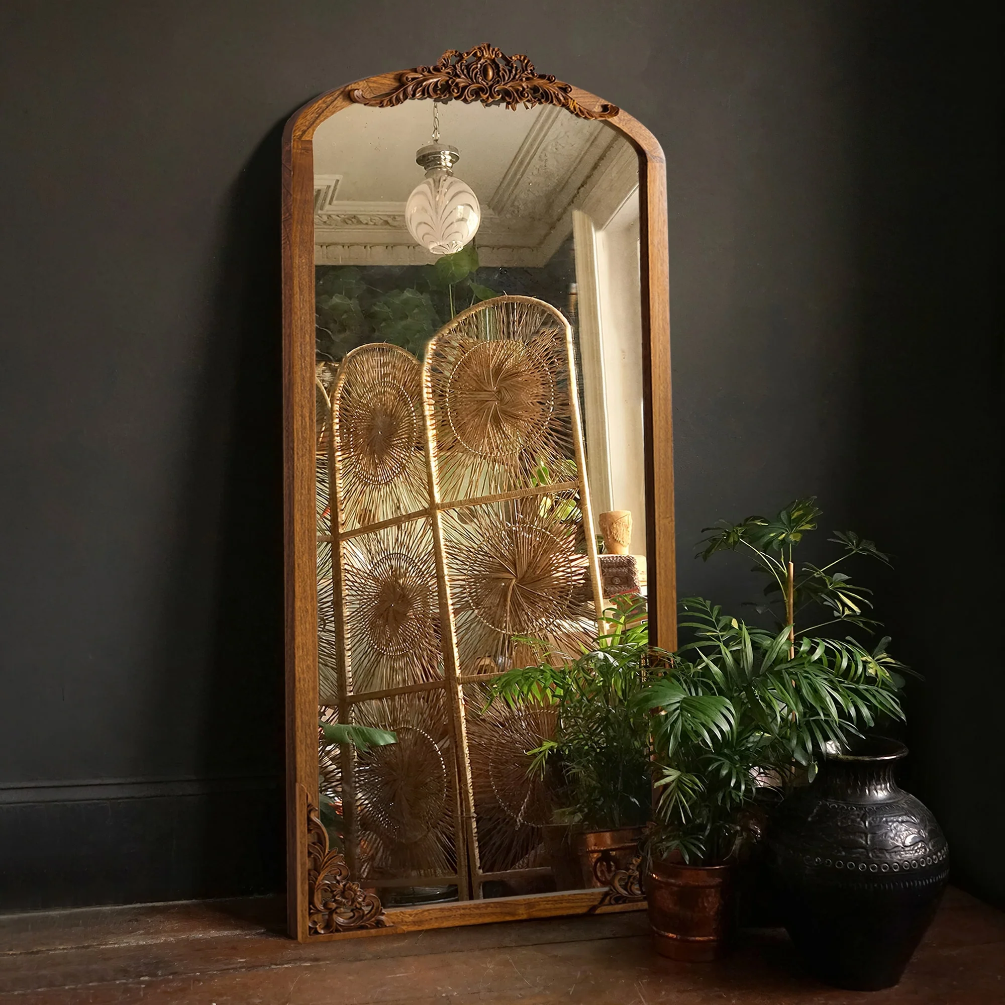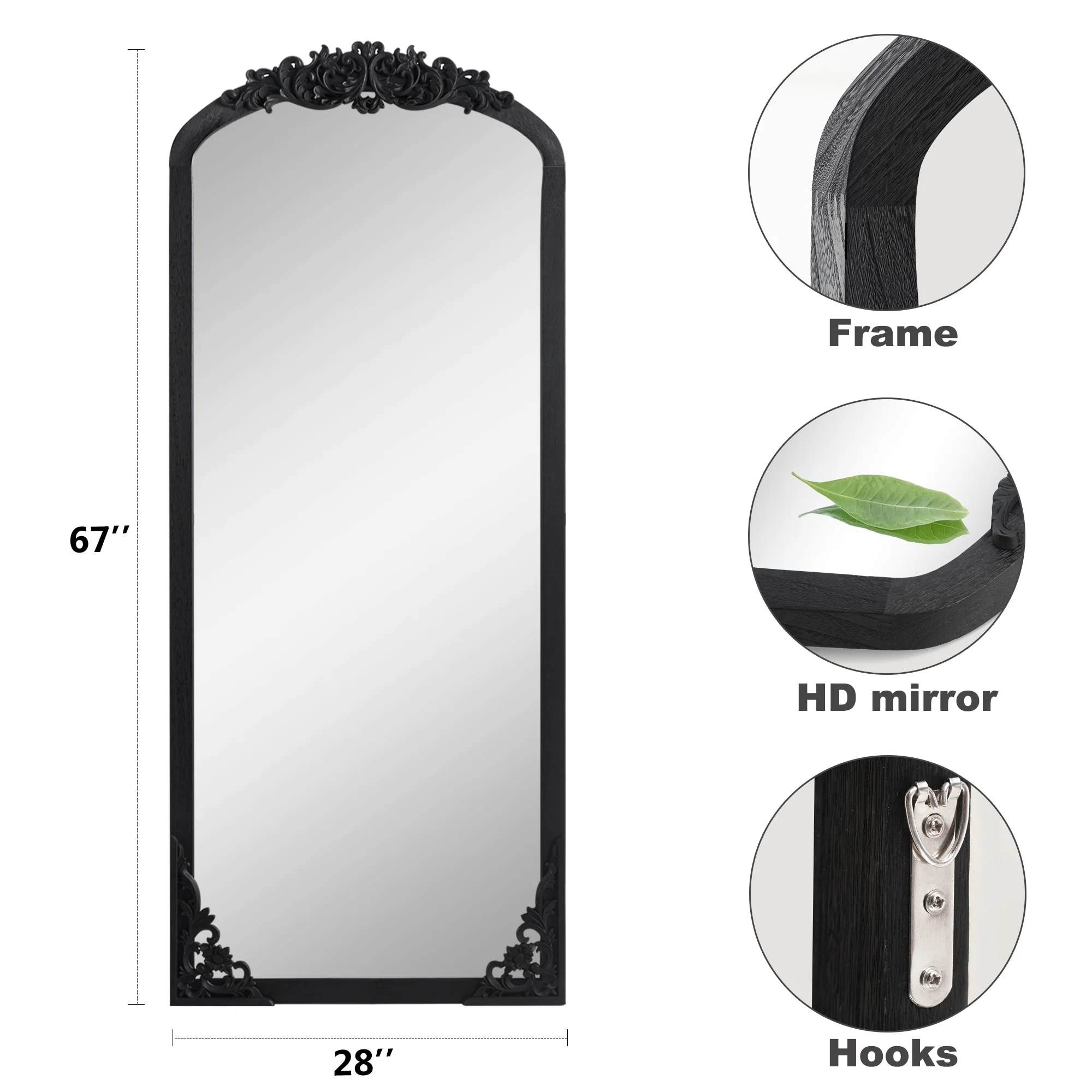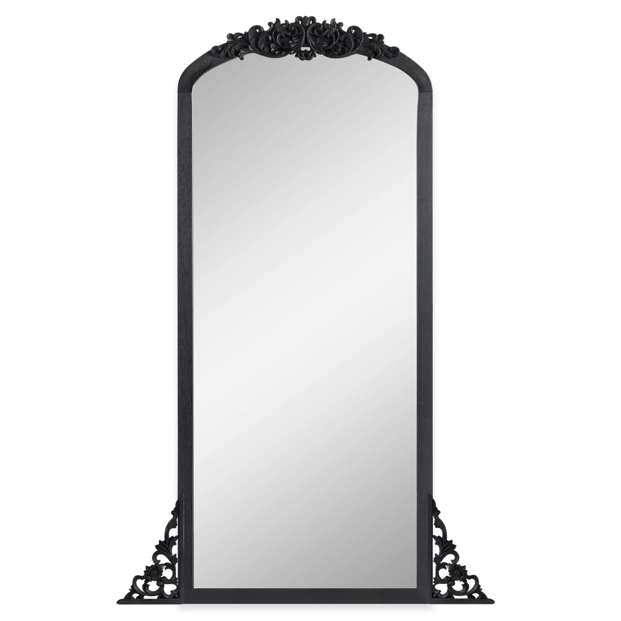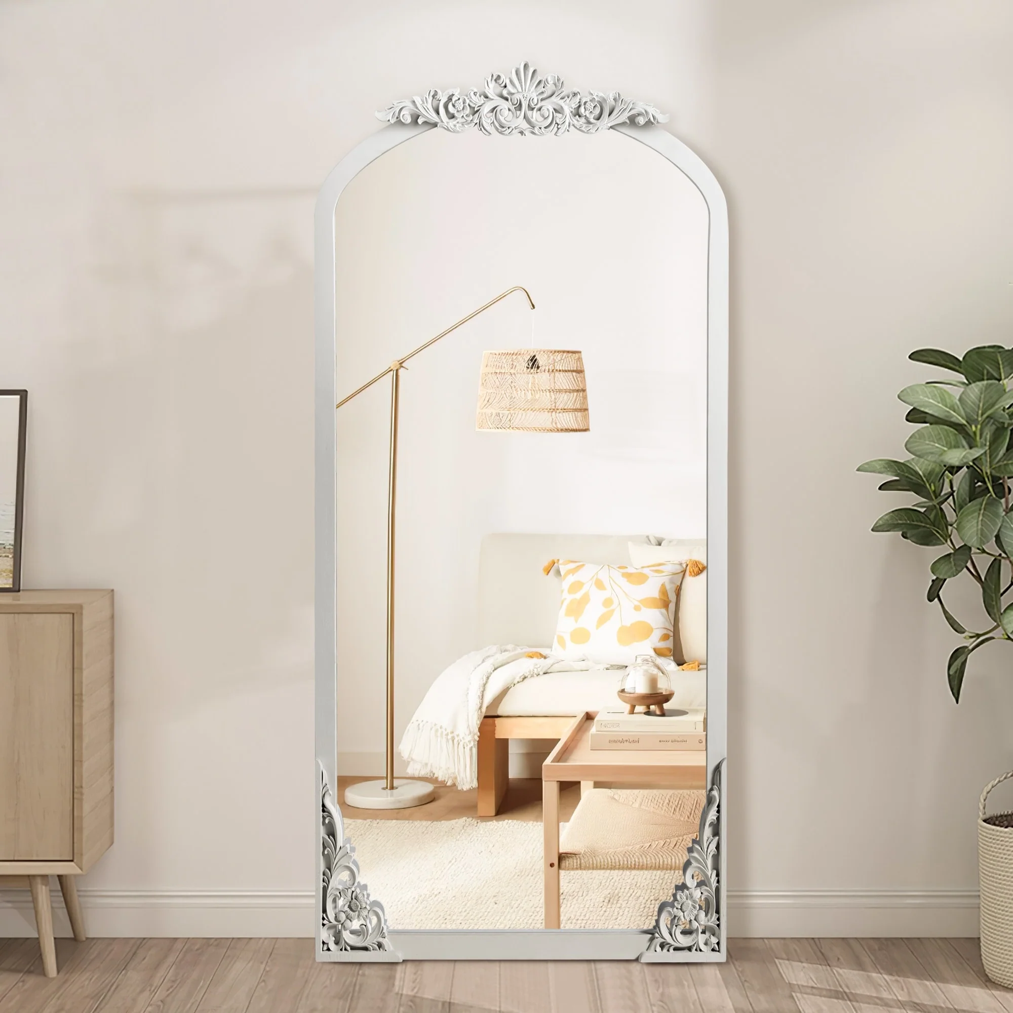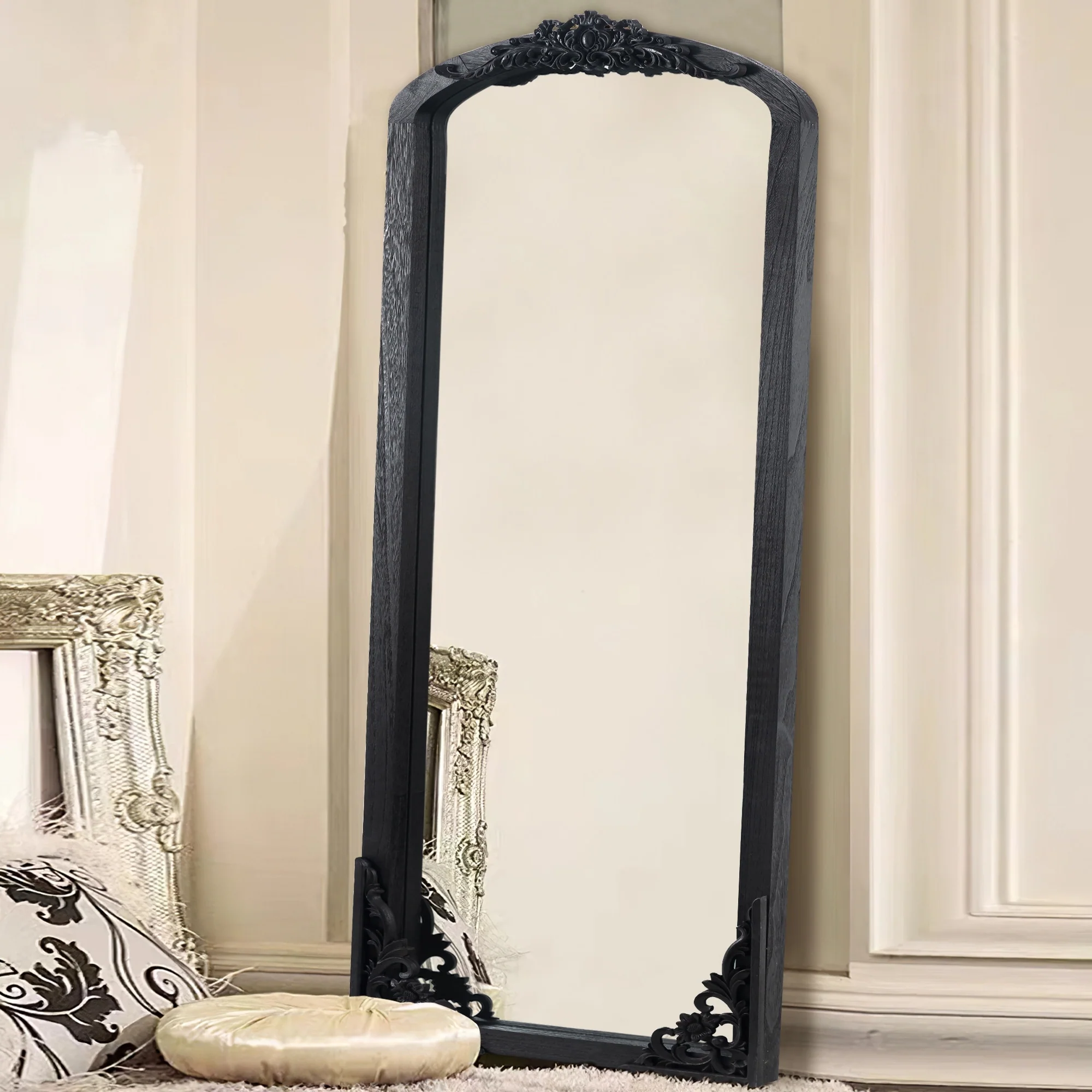 Elevate your room's ambiance with the timeless elegance of this solid wood floor mirror. The arched silhouette and intricate windowpane design create a vintage-inspired optical illusion that enhances your space and adds distinctive character to any decor.