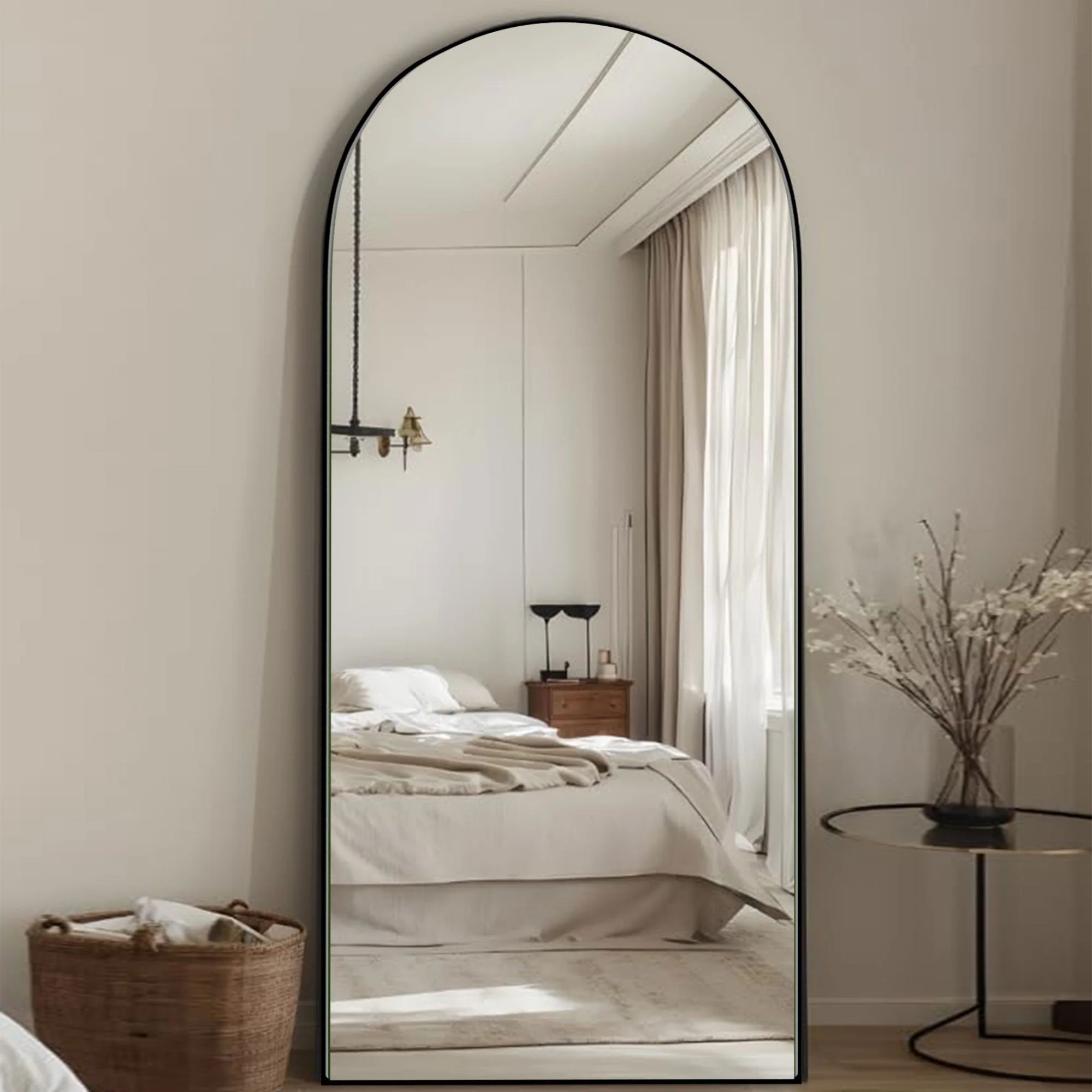 Brighten up any room in your home with this tall, elegant modern full length mirror. Its unique arched design and sleek frame make it a statement piece that adds depth and dimension to any room. It reflects the items in the room as well as any natural or artificial light, making any space feel larger and brighter. Perfect for a bedroom, living room or dressing area, this mirror will quickly become the centerpiece of your decor to suit your taste. Offering great value for money is this home essential!!!
