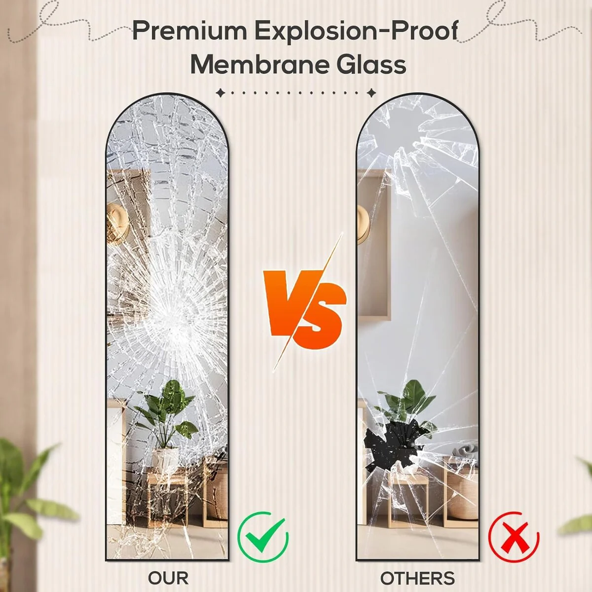 - Upgraded Nano Glass: Our full-length mirror features upgraded thick 3mm HD nano glass, ensuring superior clarity and mirror reflection. The nano glass includes an HD explosion-proof layer to prevent splashing in case of damage from external forces.
