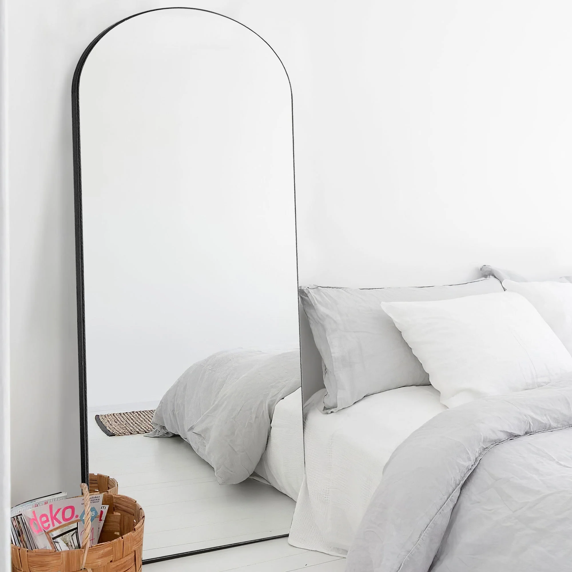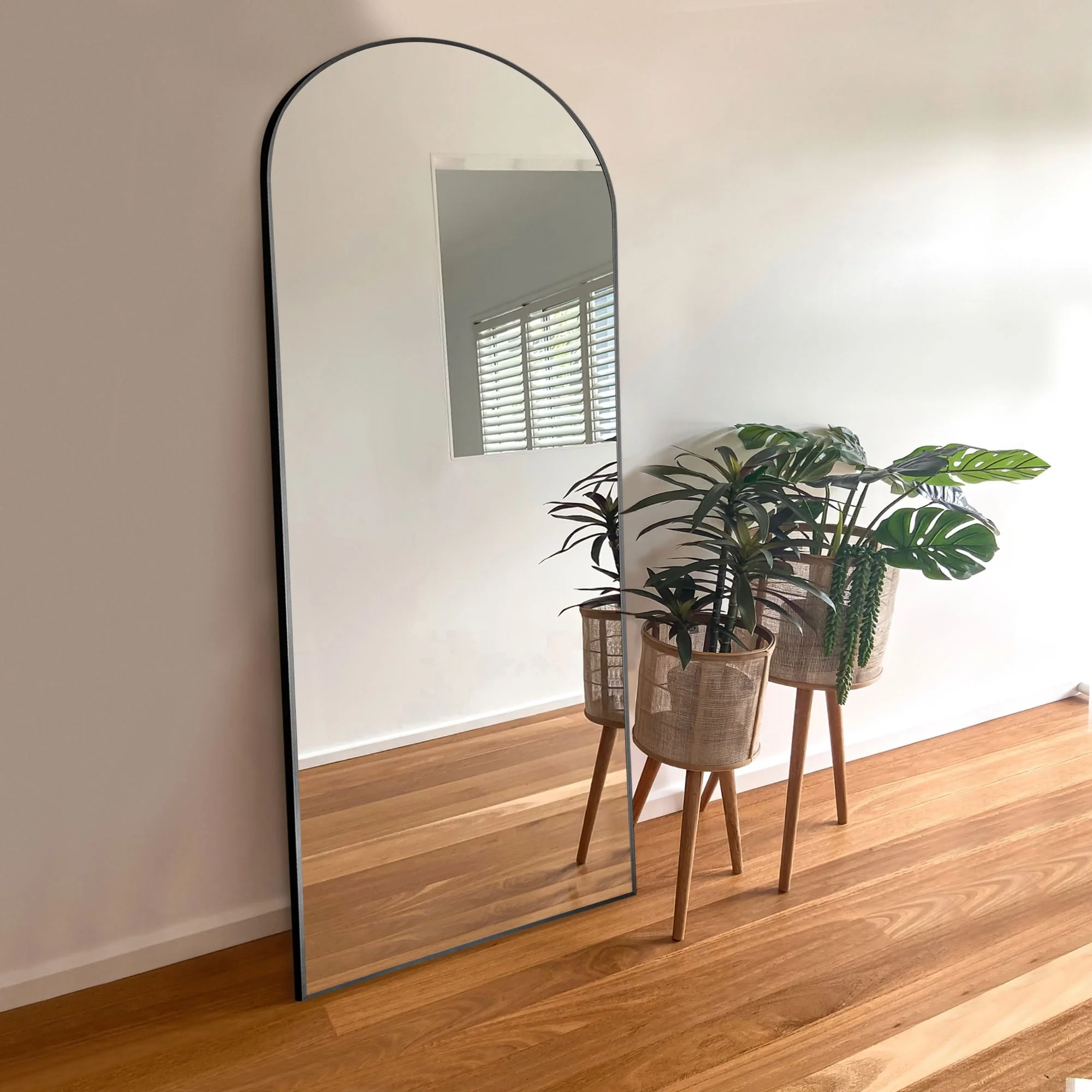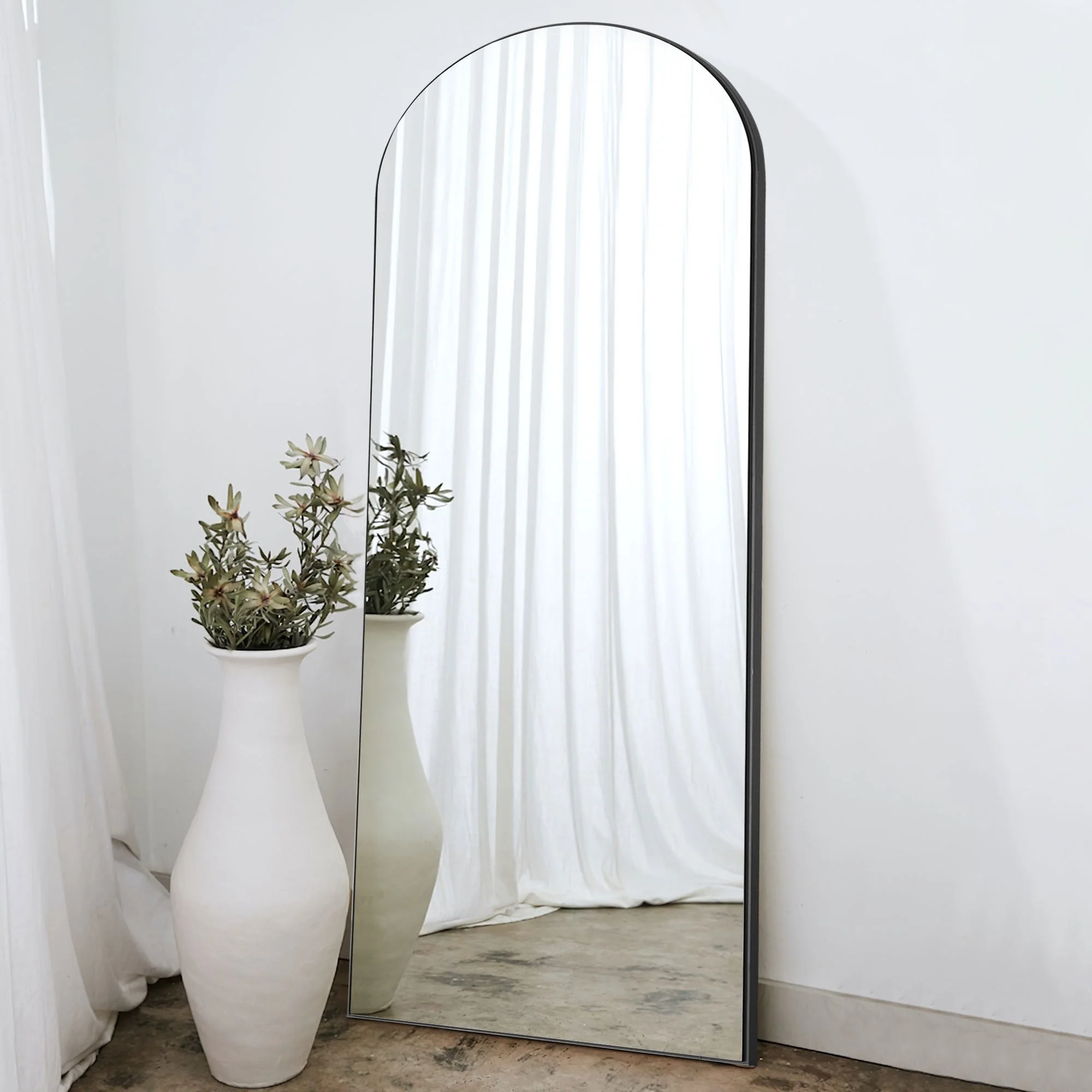 Enhance your home with the modern style and sophistication of the Arched Full-Length Mirror. This elegant mirror is perfect for any room and decor style, offering excellent reflectivity and clarity. The solid aluminum alloy frame and shatter-proof glass ensure high quality and safety.