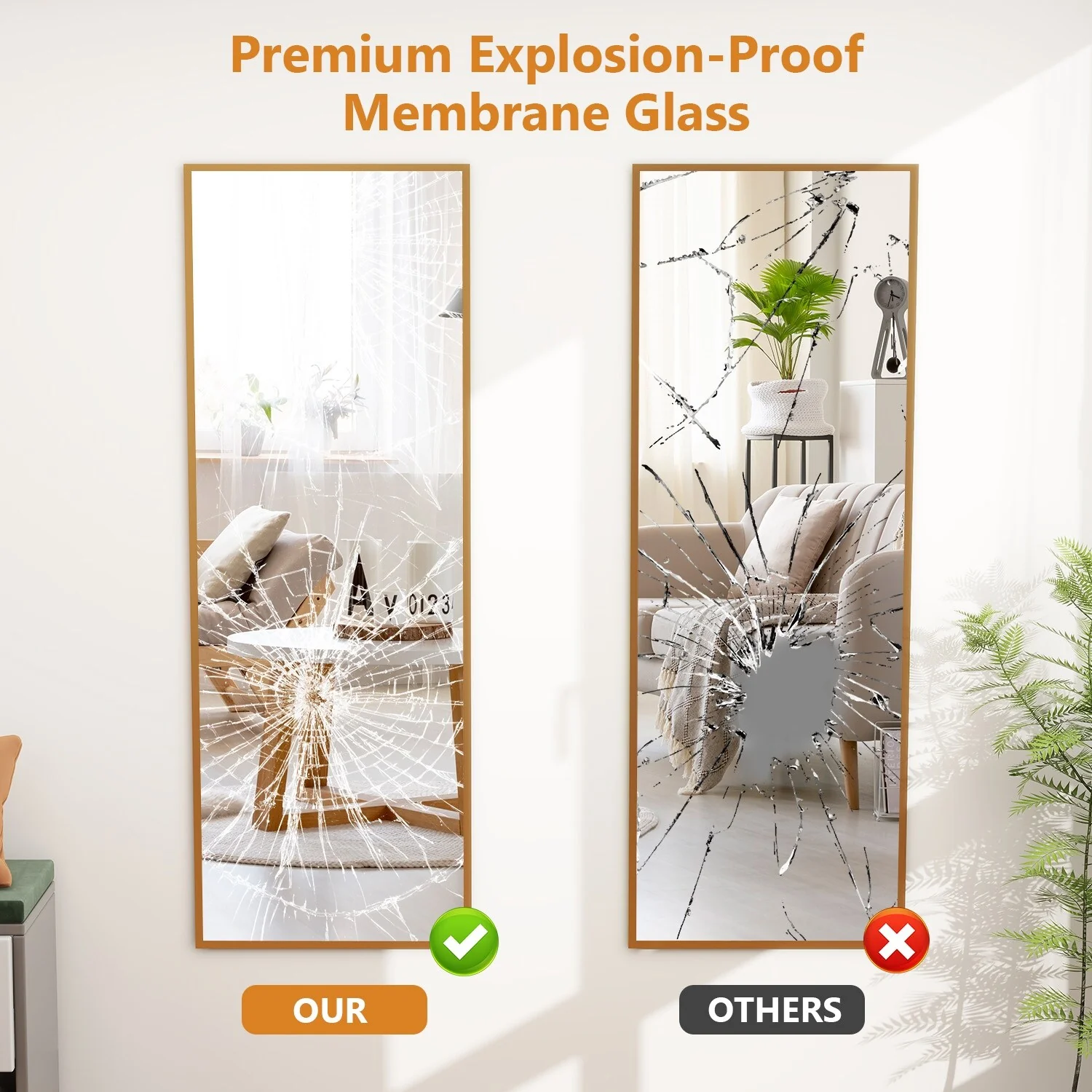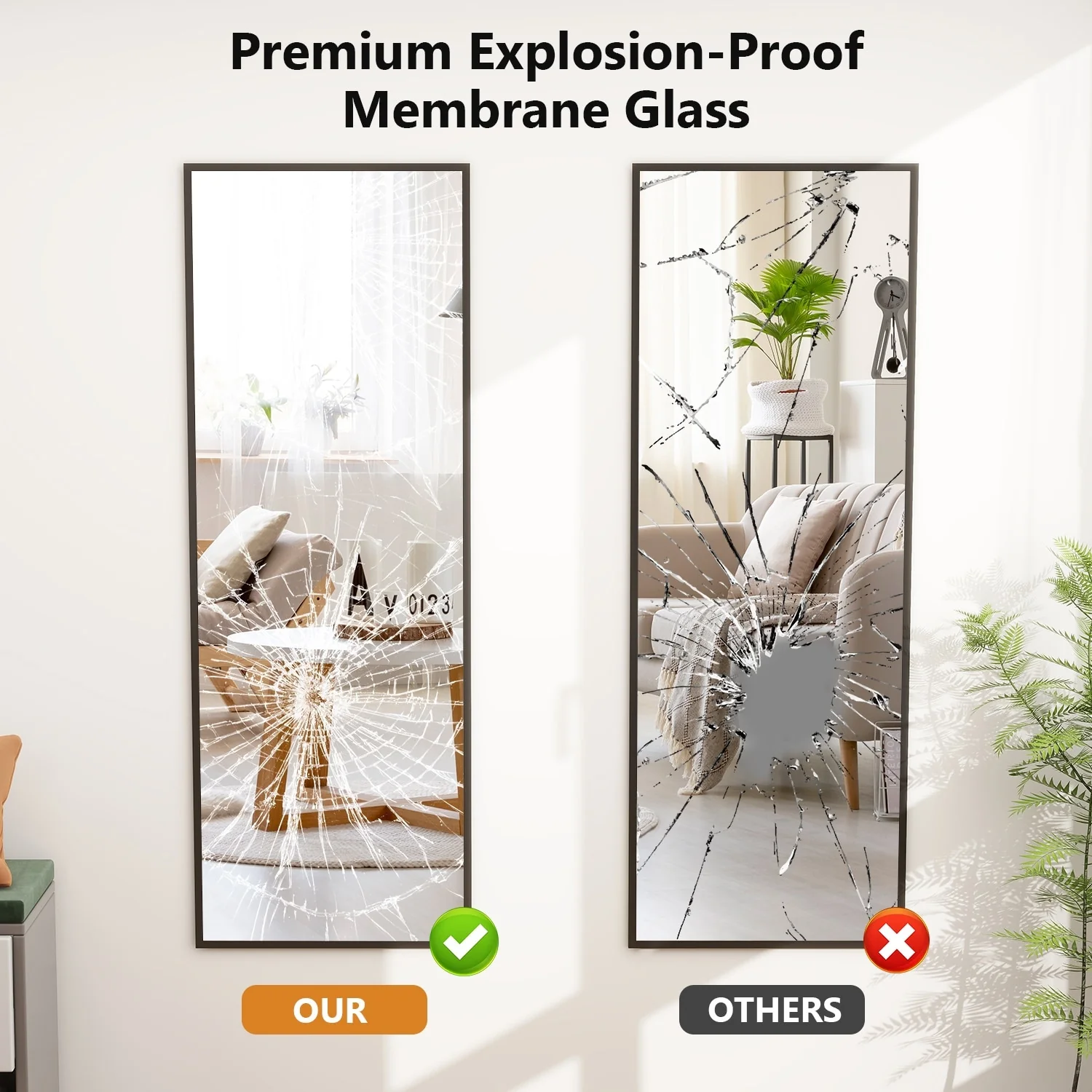 - UPGRADED NANO GLASS: Our large mirror is made of durable 3 mm high-definition nano glass. Upgrade explosion-proof nano glass with pure silver layer is more high definition and not easy to break. Even if it is accidentally damaged by an external force, the broken pieces of the mirror will not splash in all directions.�