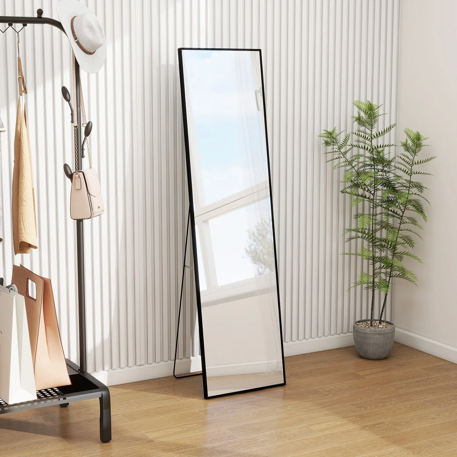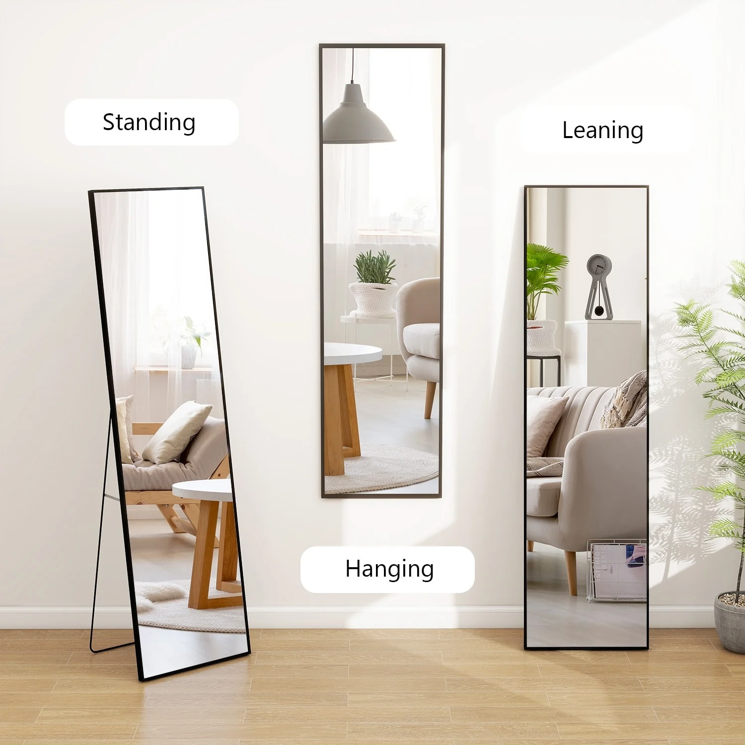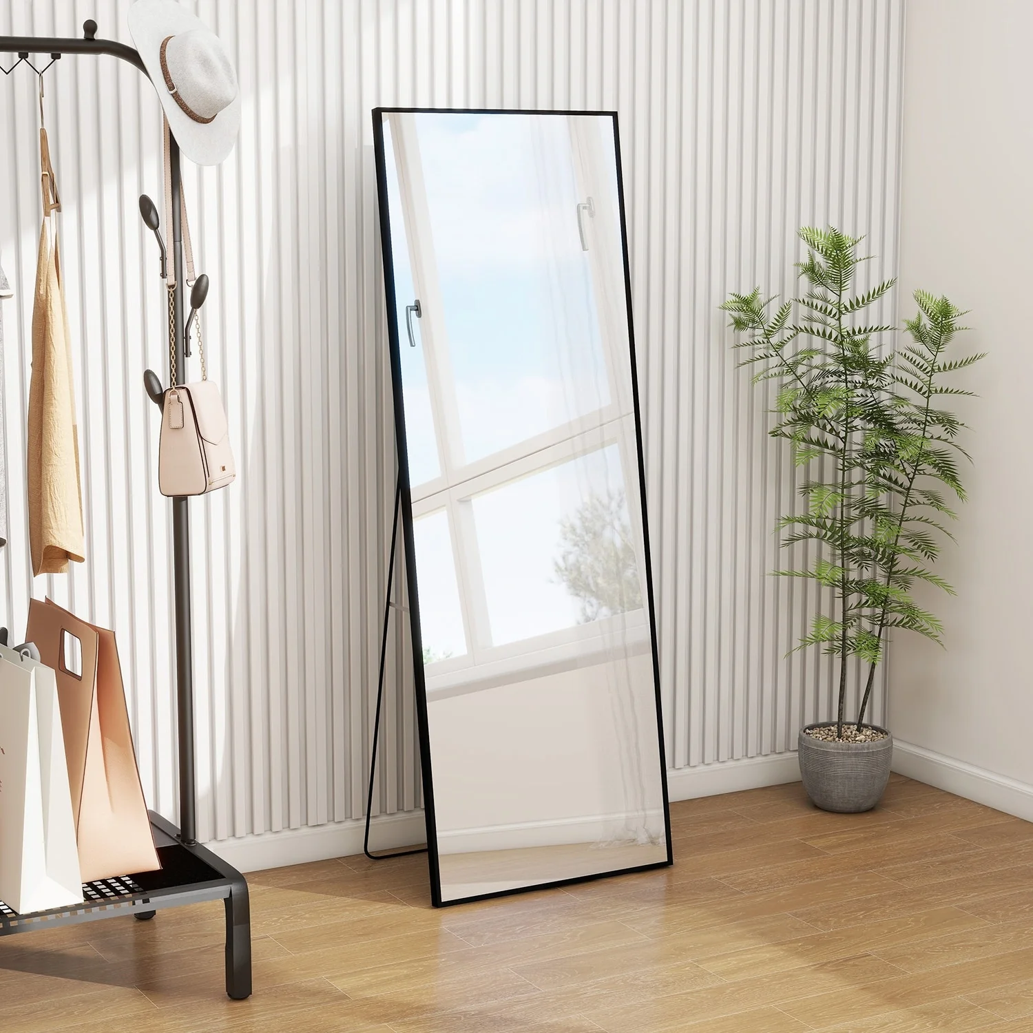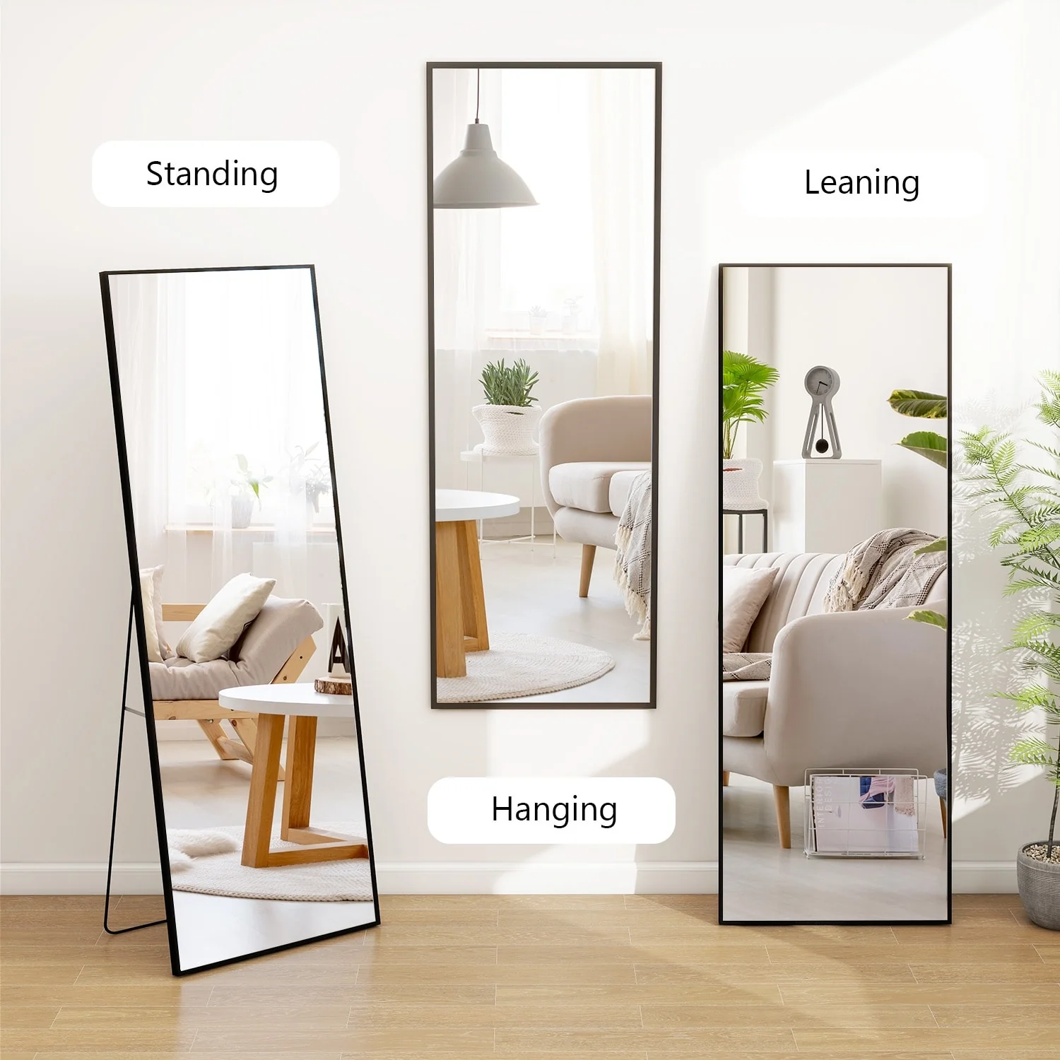 - ALL-MATCH: No Assembly Required: The floor length mirror can stand anywhere with the standing holder. You also can lean it against a wall, or you can hang it horizontally or vertically on the wall for space-saving. It is suitable for a bedroom, living room, cloakroom, home gym, corridor, clothing shop, etc.�