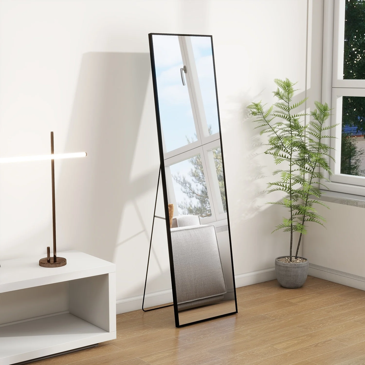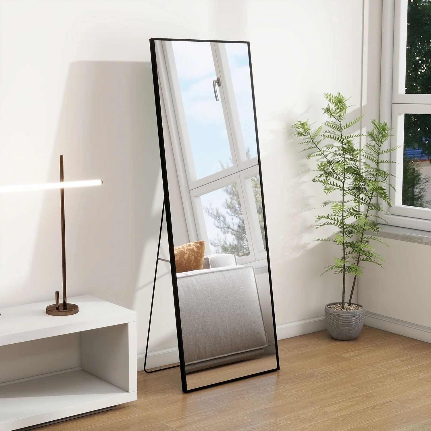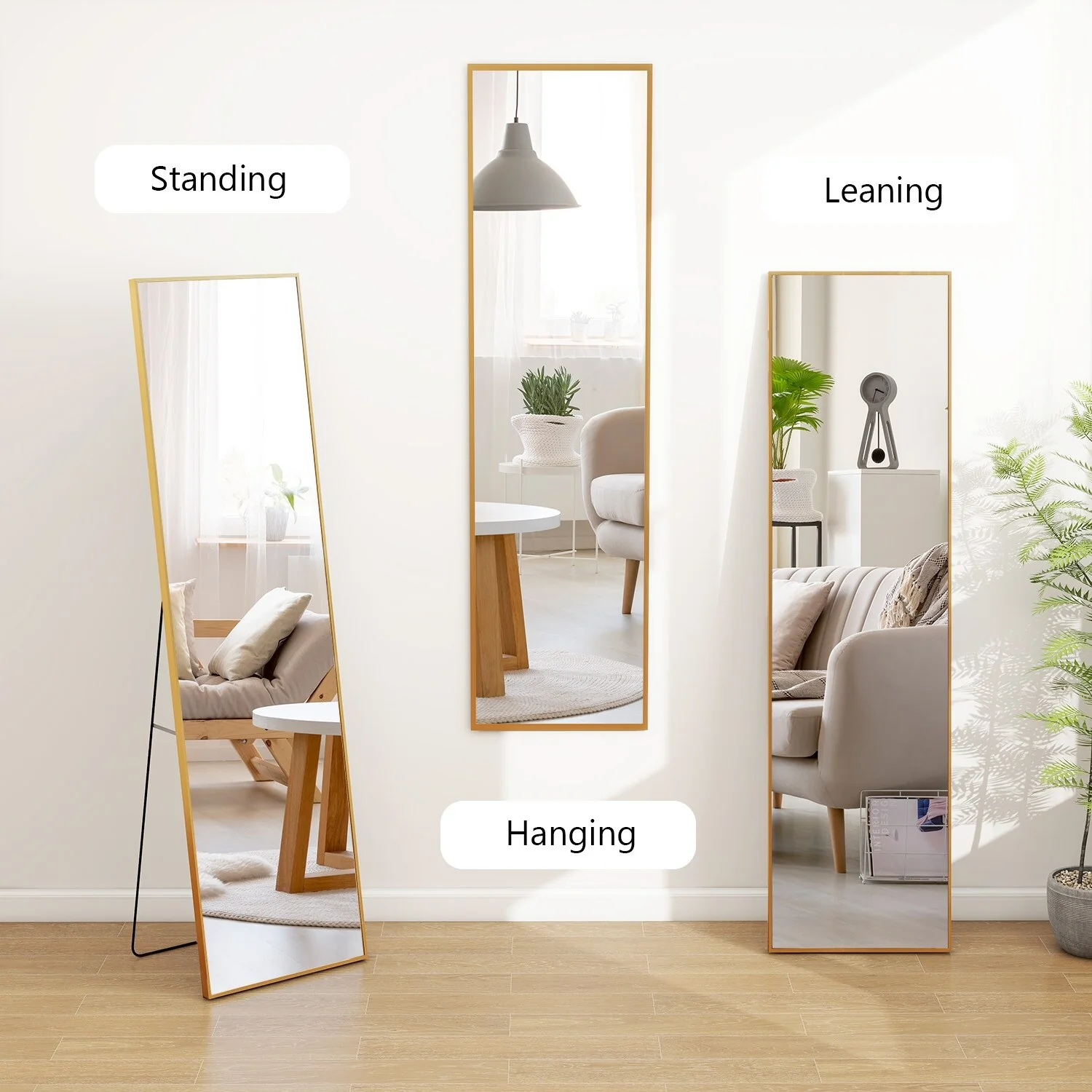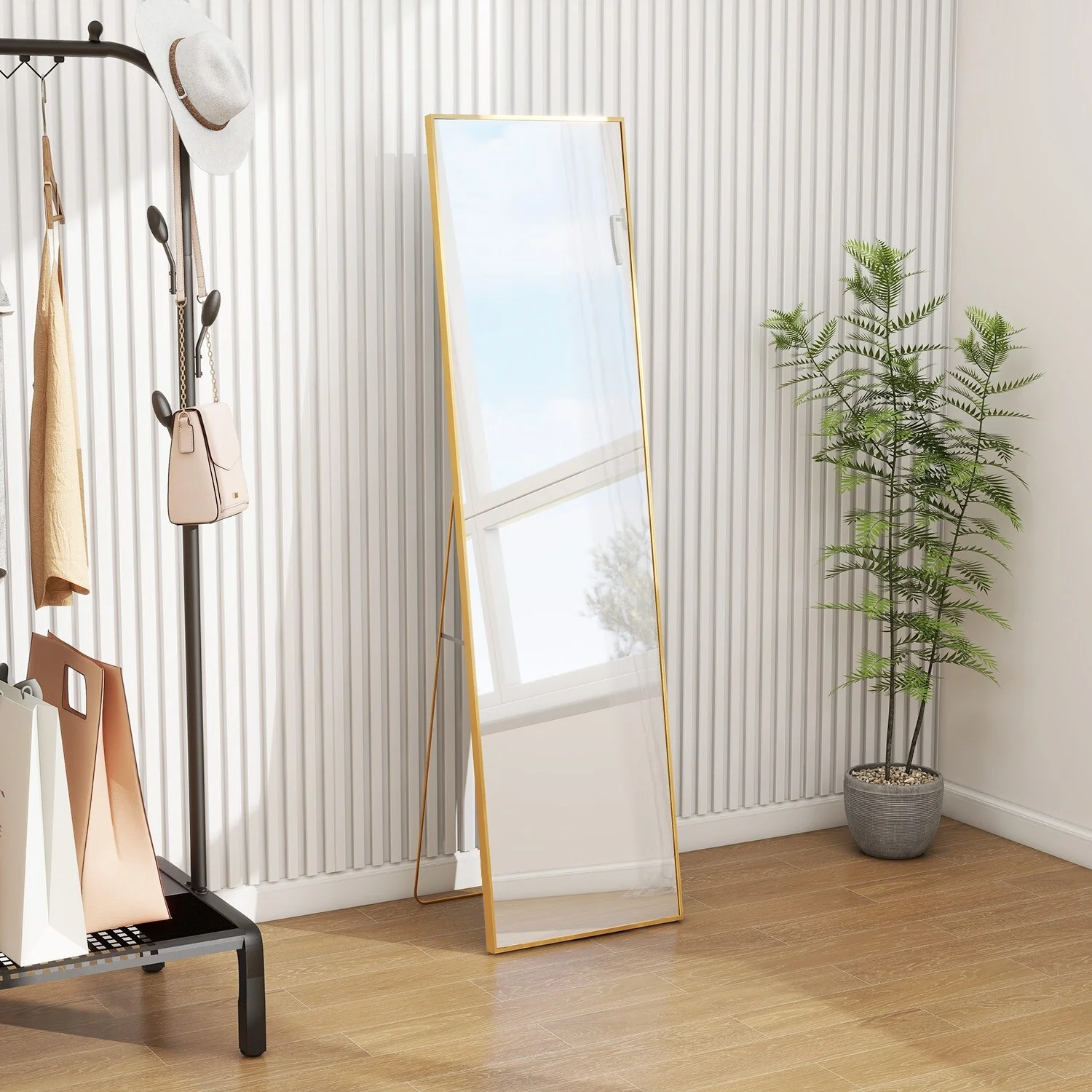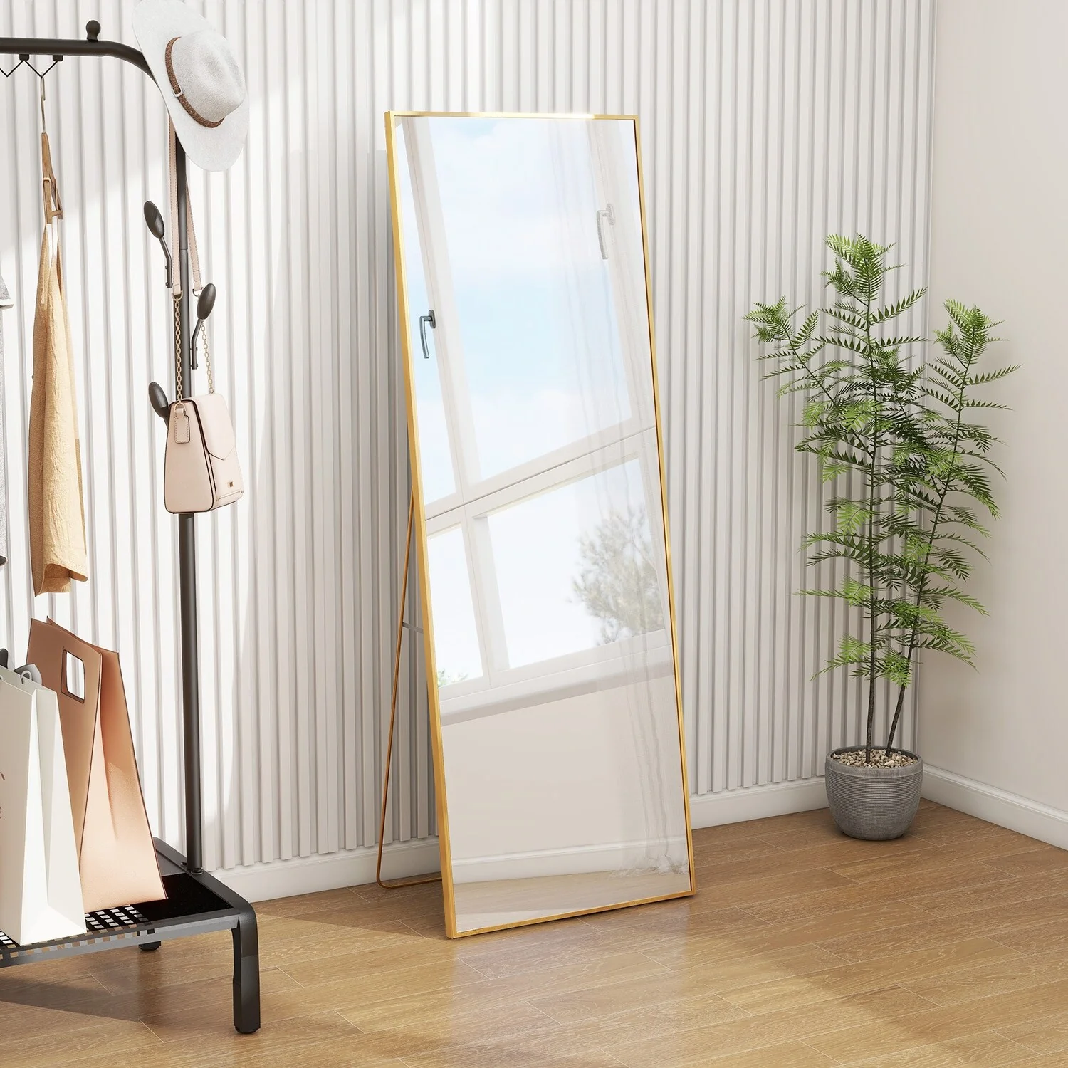 - ALL-MATCH: No Assembly Required: The floor length mirror can stand anywhere with the standing holder. You also can lean it against a wall, or you can hang it horizontally or vertically on the wall for space-saving. It is suitable for a bedroom, living room, cloakroom, home gym, corridor, clothing shop, etc.�