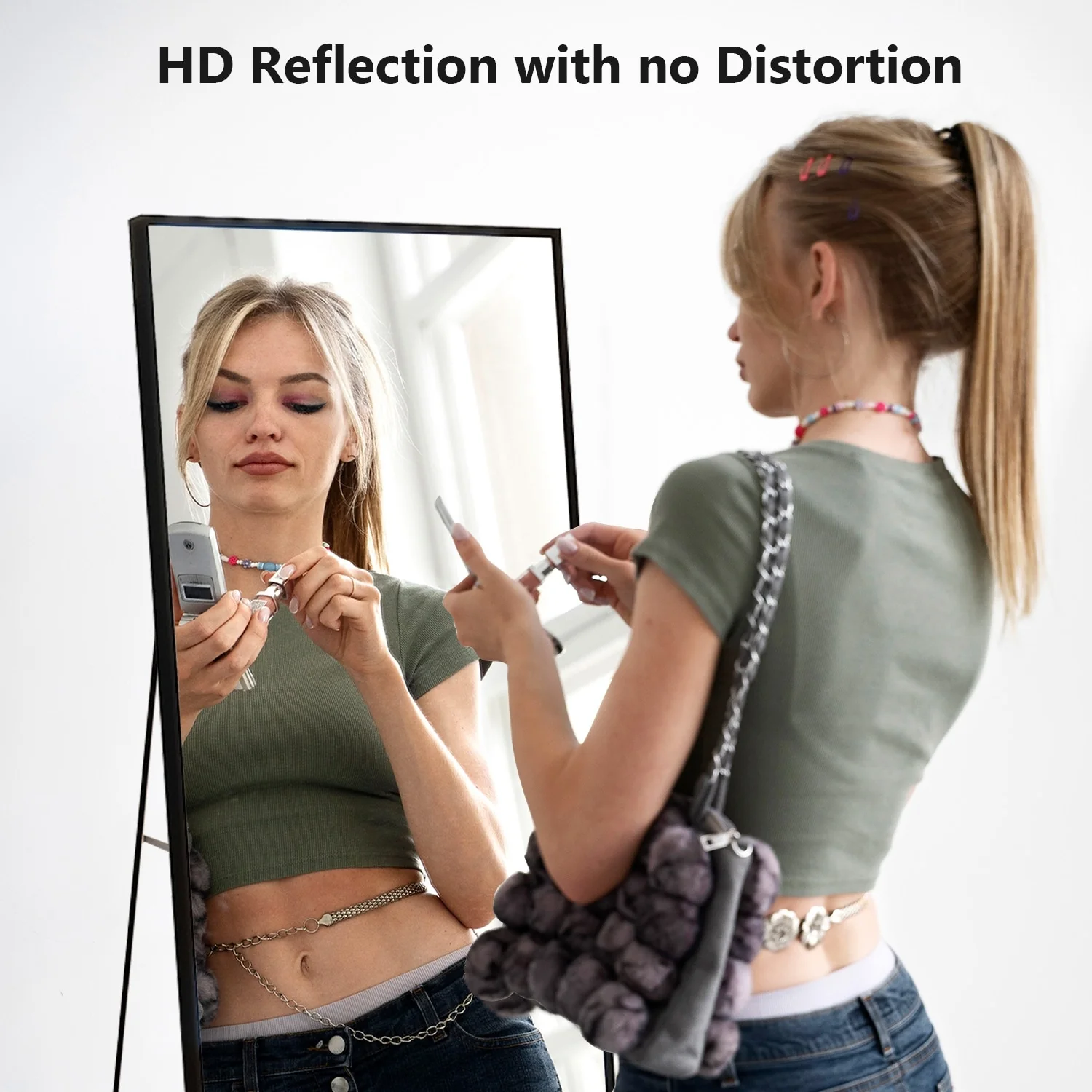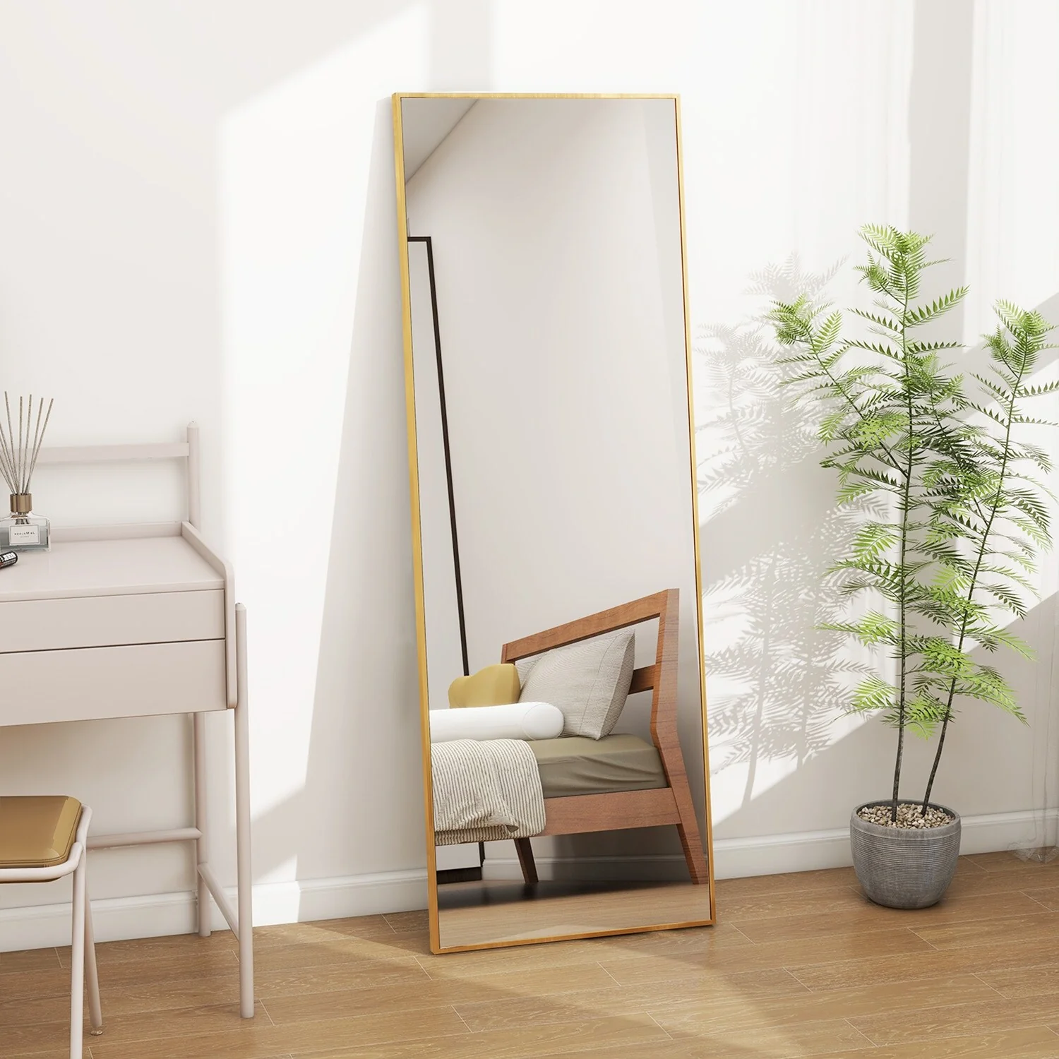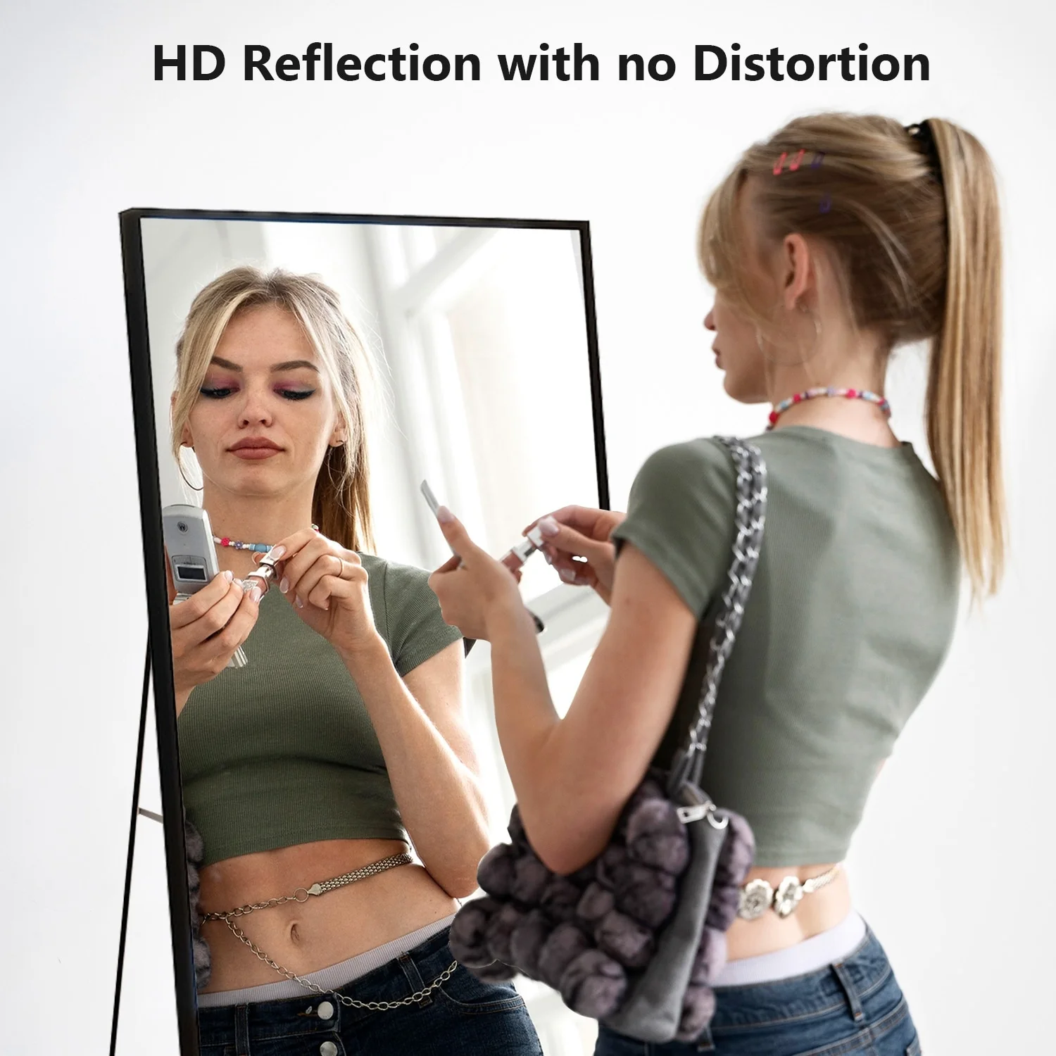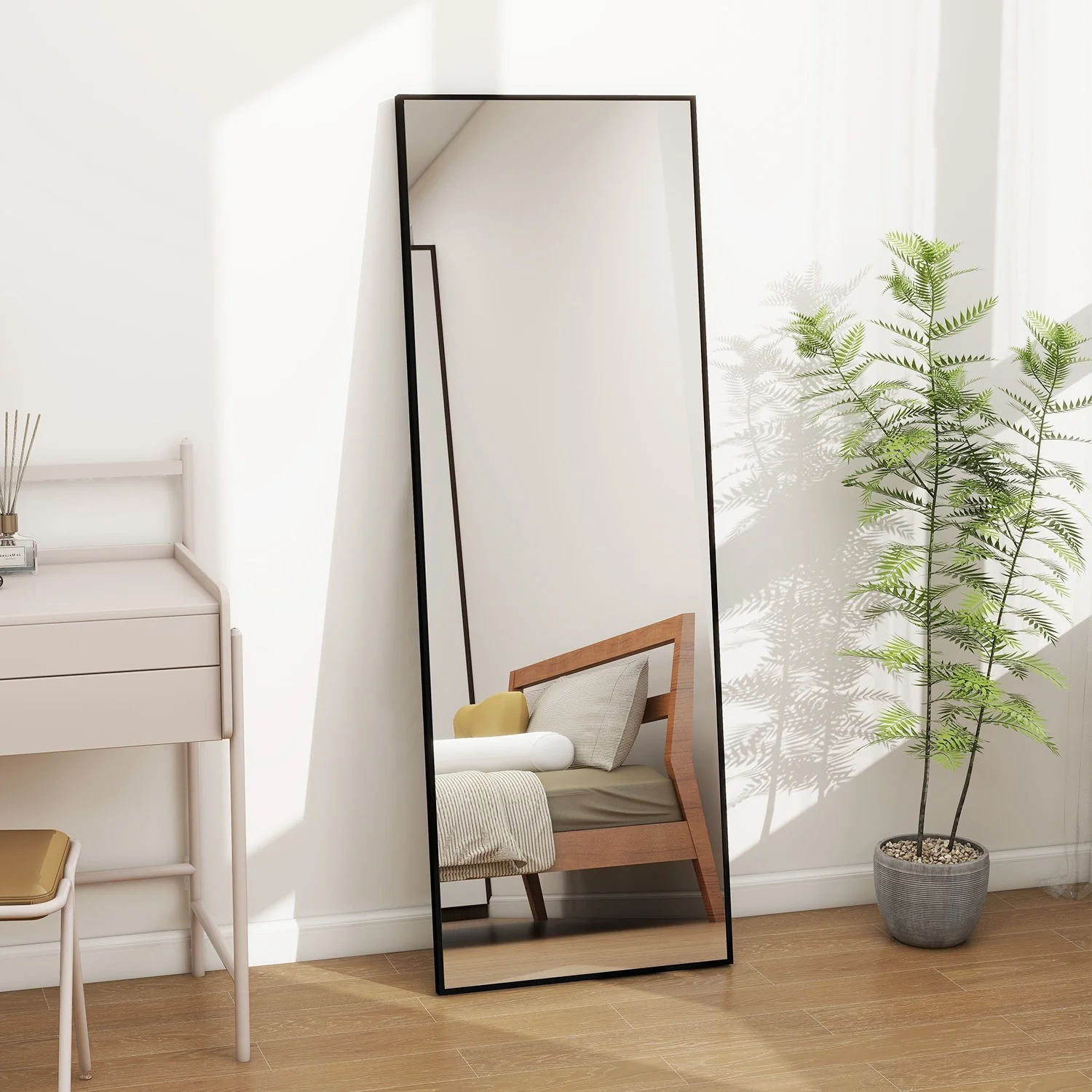 - ALL-MATCH: No Assembly Required: The floor length mirror can stand anywhere with the standing holder. You also can lean it against a wall, or you can hang it horizontally or vertically on the wall for space-saving. It is suitable for a bedroom, living room, cloakroom, home gym, corridor, clothing shop, etc.�