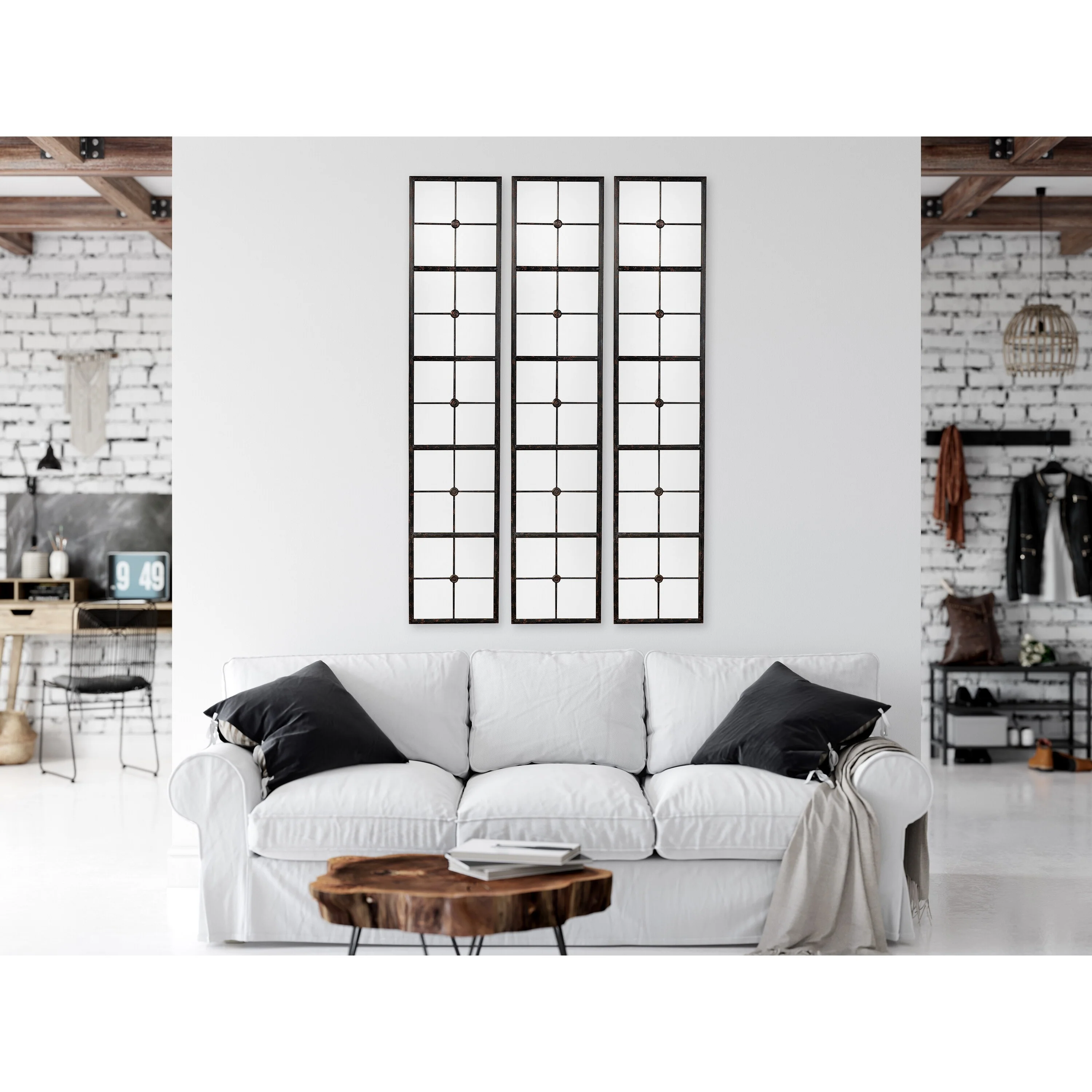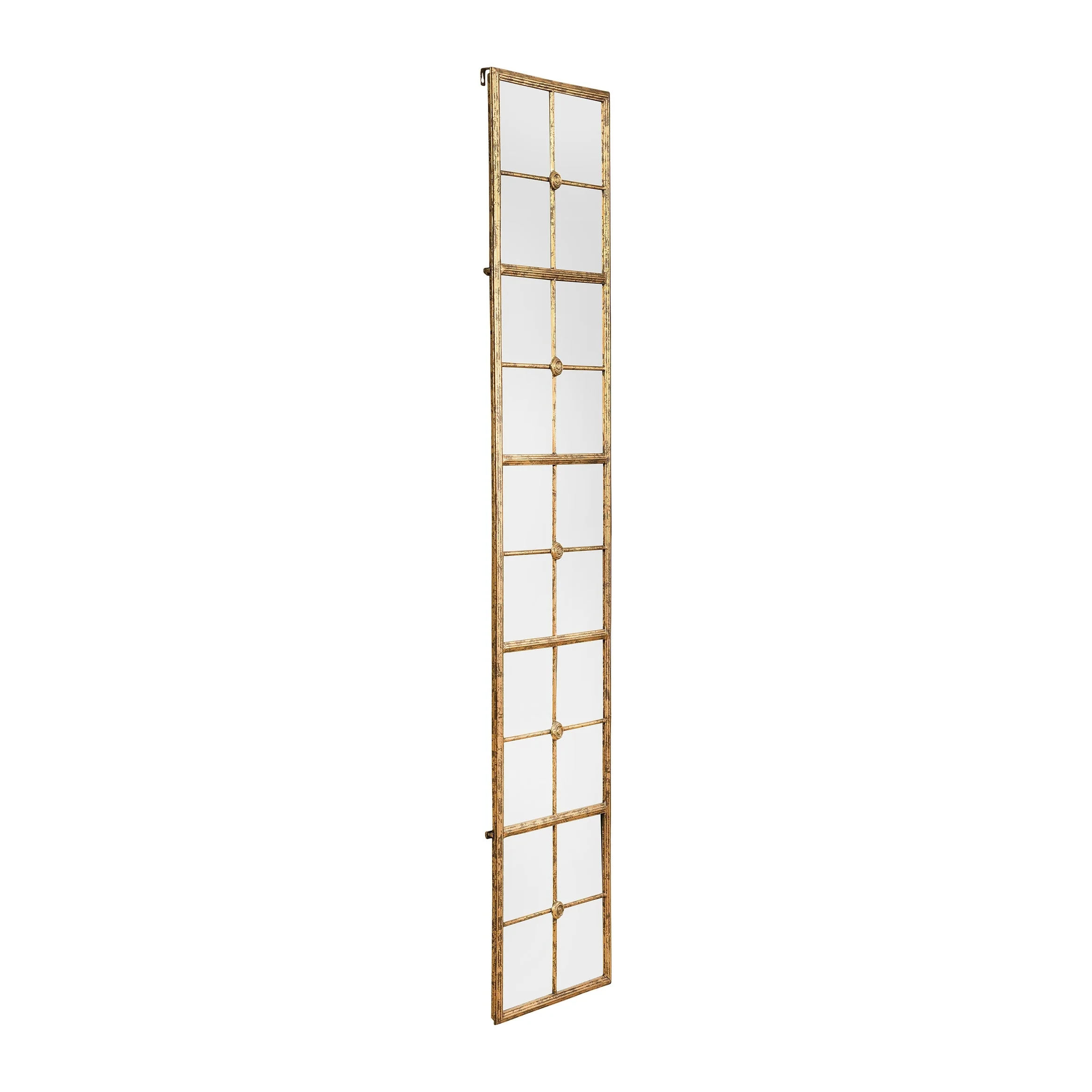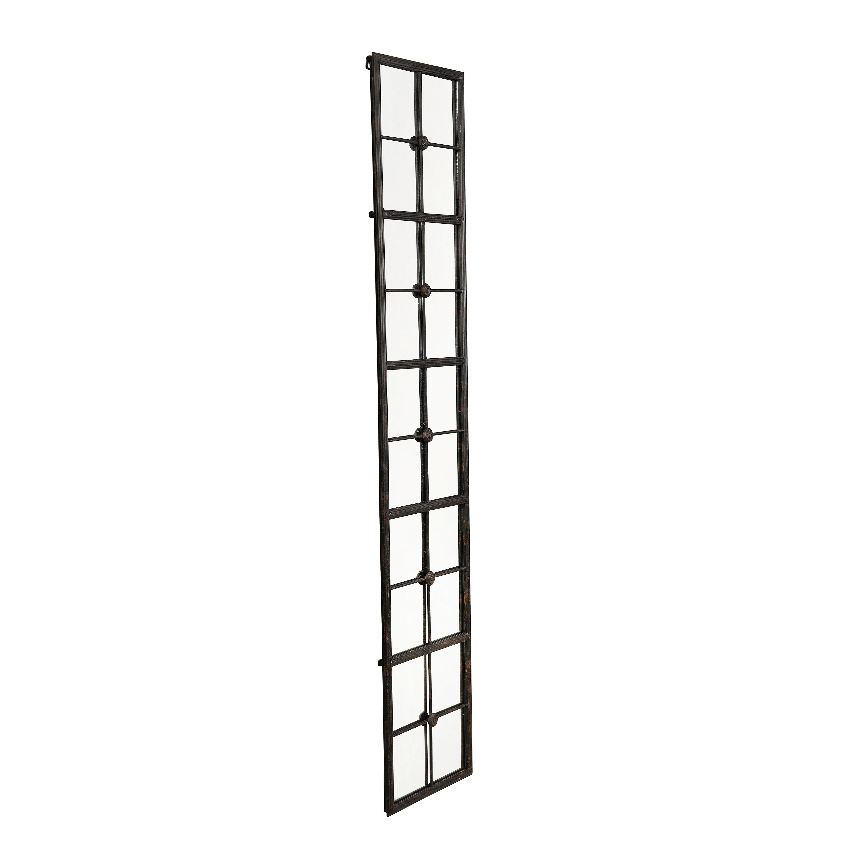 This distressed windowpane wall mirror adds style and depth to any living space. This artfully crafted mirror showcases a rustic metal frame with stylish windowpane detail. The mirror is made from metal and glass for a sleek and sturdy look. The mirror has hanging mechanisms for easy installation and can be hung vertically. This mirror is perfect for adding a touch of elegance and sophistication to any living room, bedroom, or hallway. It measures 13.5 inches long by 65 inches high, making it a perfect size for any space. This mirror is a stunning piece that will add a touch of sophistication to any home.�