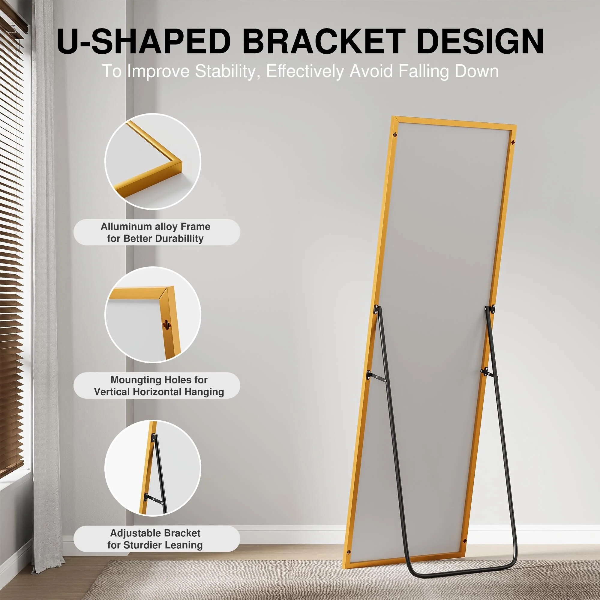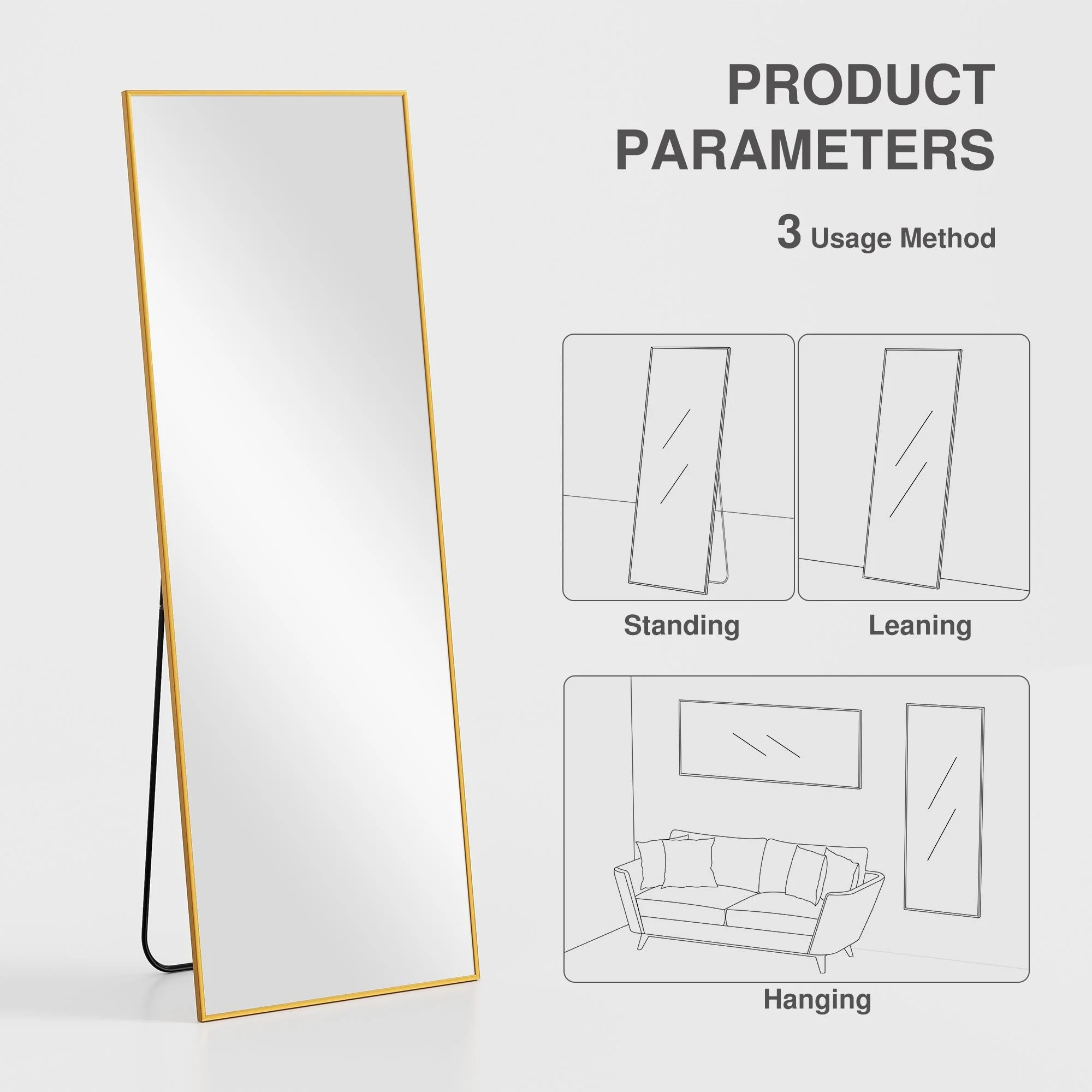 - Free-standing, wall-mounted, or leaning