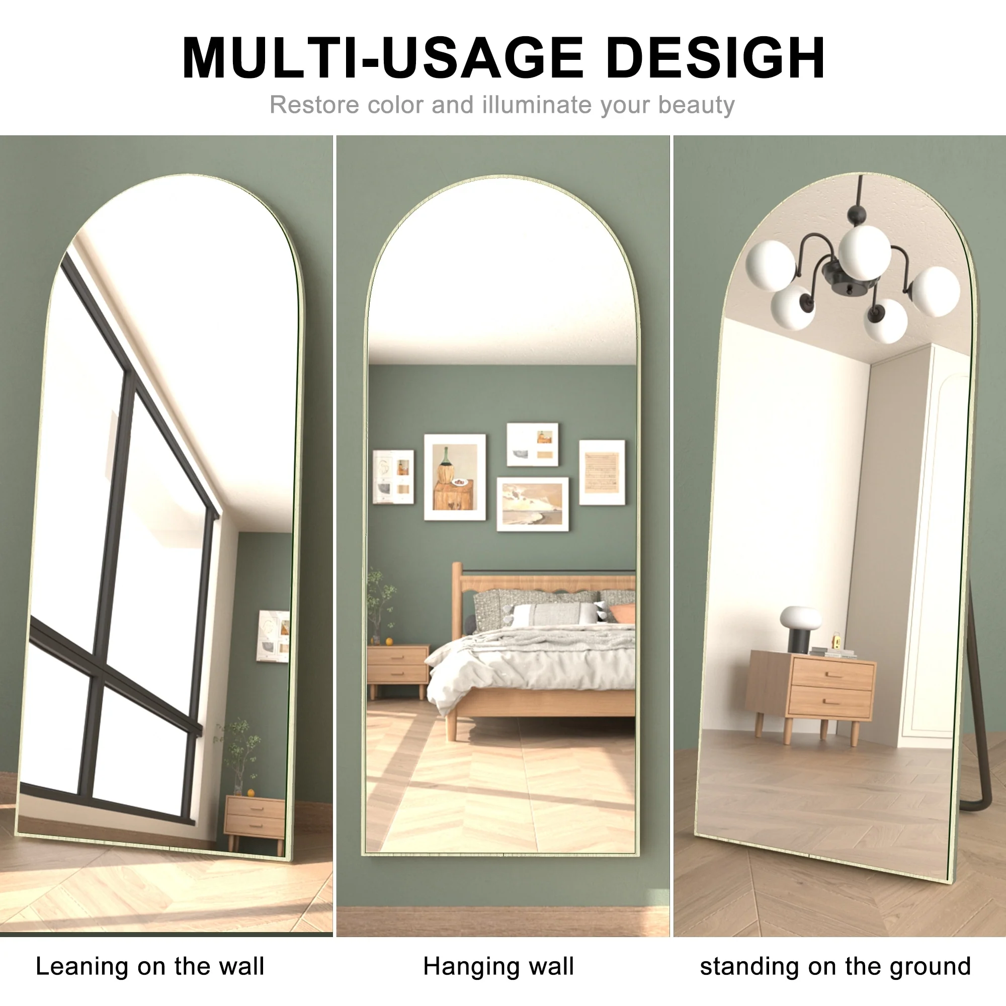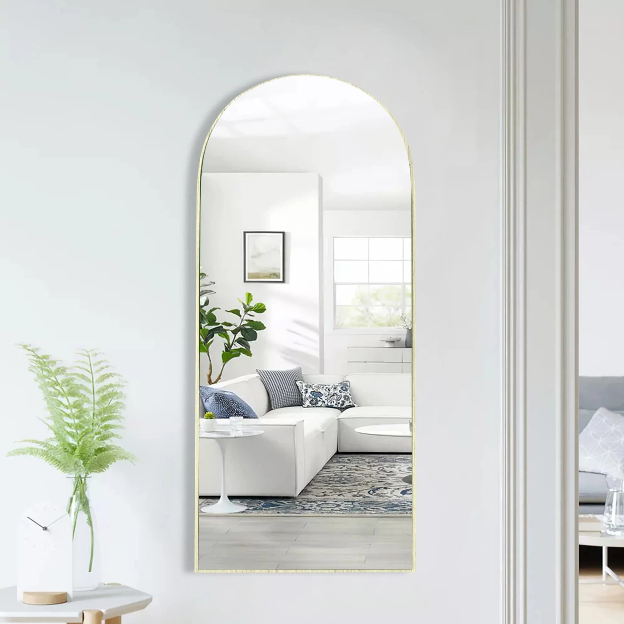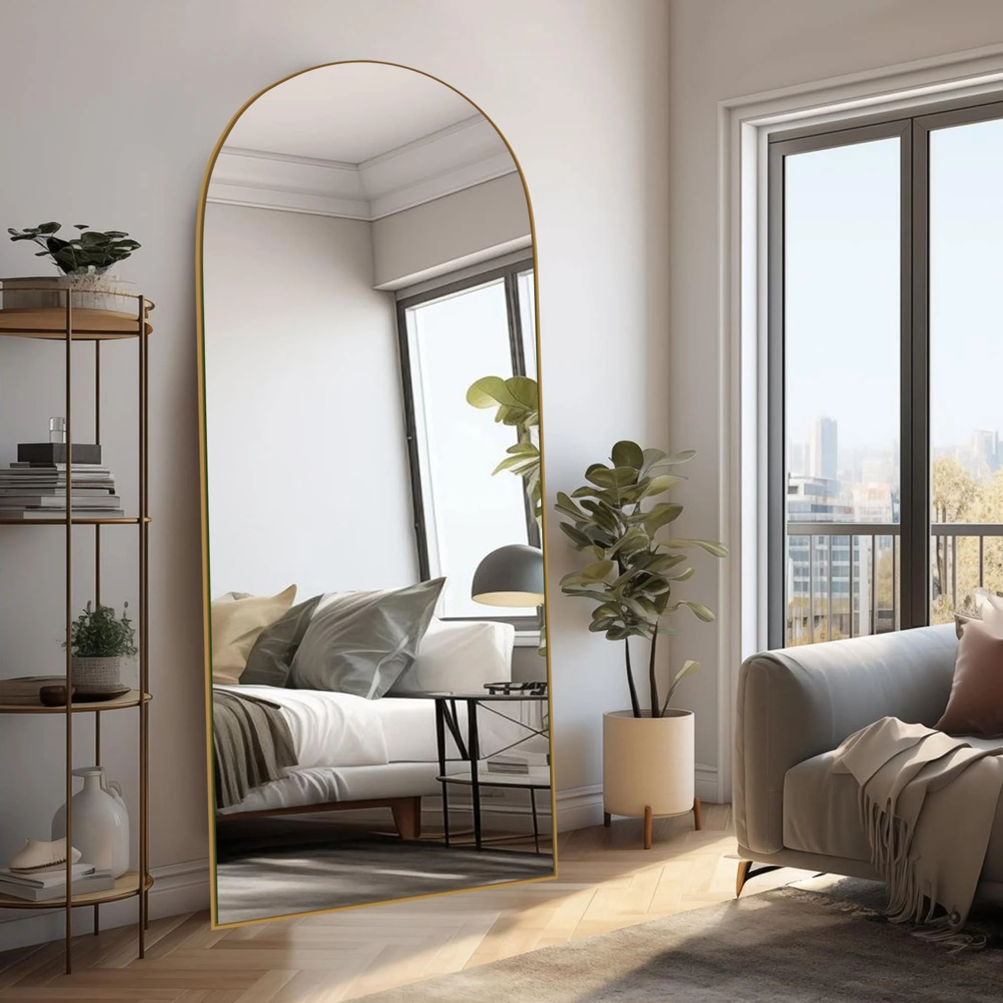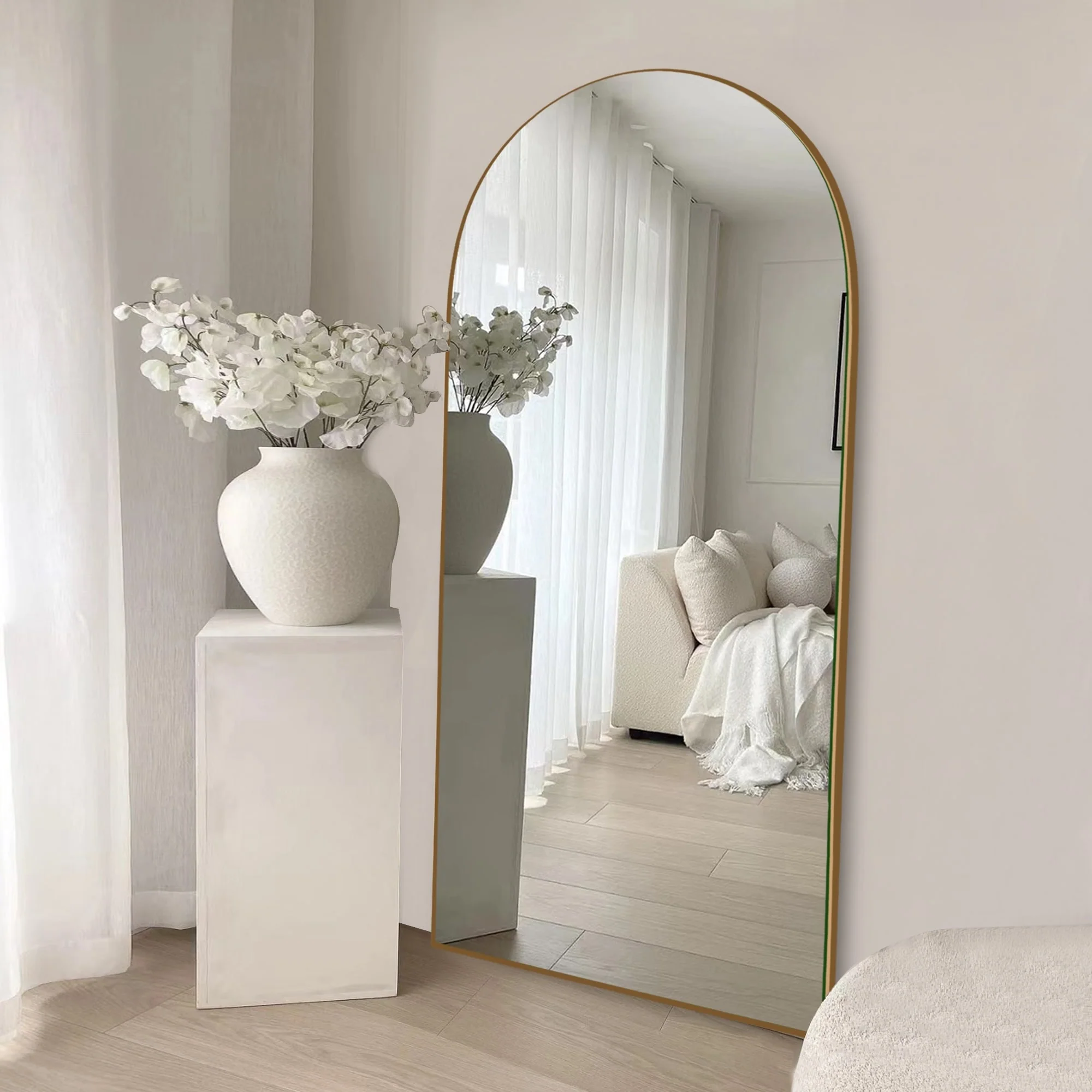 The modern arched full-length mirror is an essential element in home decoration. From a distance, it looks like a door or a window, making it more artistic and highlighting the beauty of the body mirror. At the same time, the arched design can visually elevate the ceiling and enhance the transparency of the space It can also enhance the indoor lighting ability, create a unique and exquisite space aesthetic feeling, shape the space atmosphere, and effectively improve the taste and grade of the entire interior space. Its exceptional quality is highlighted by an affordable price point, offering you a remarkable value for your investment. Order now to transform your home with this remarkable mirror! �