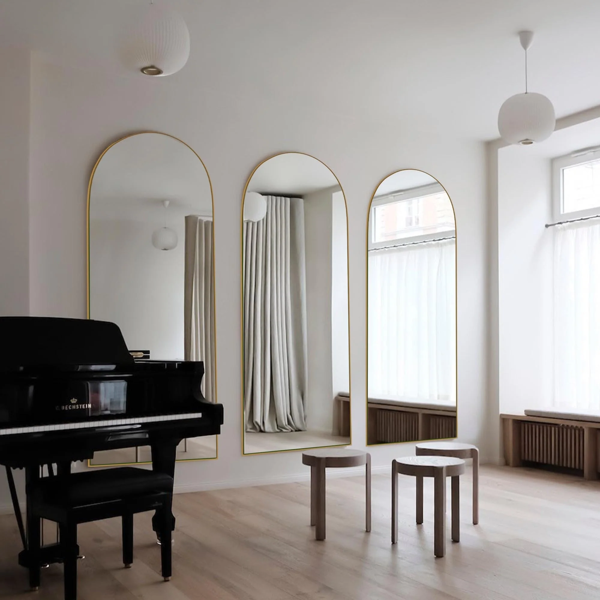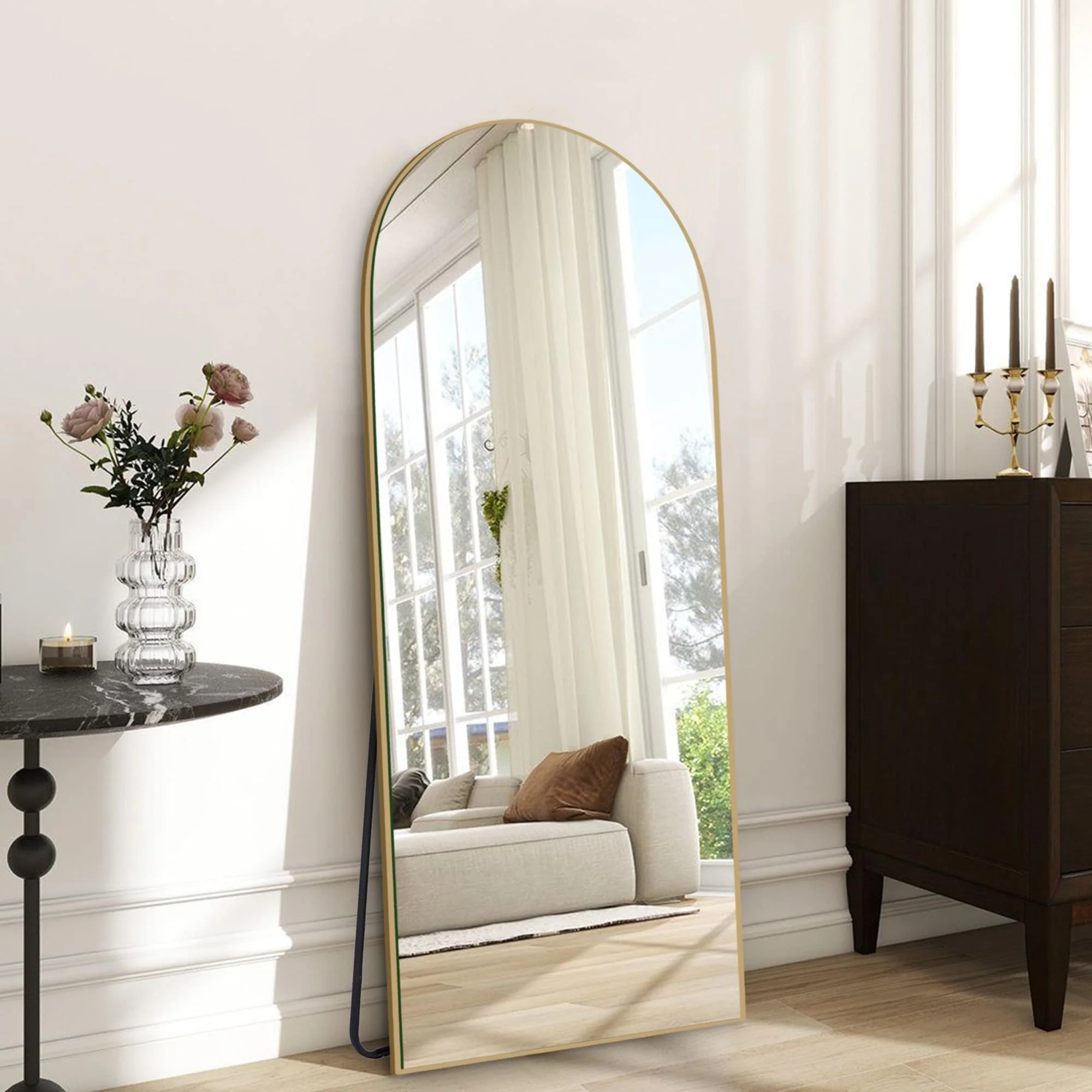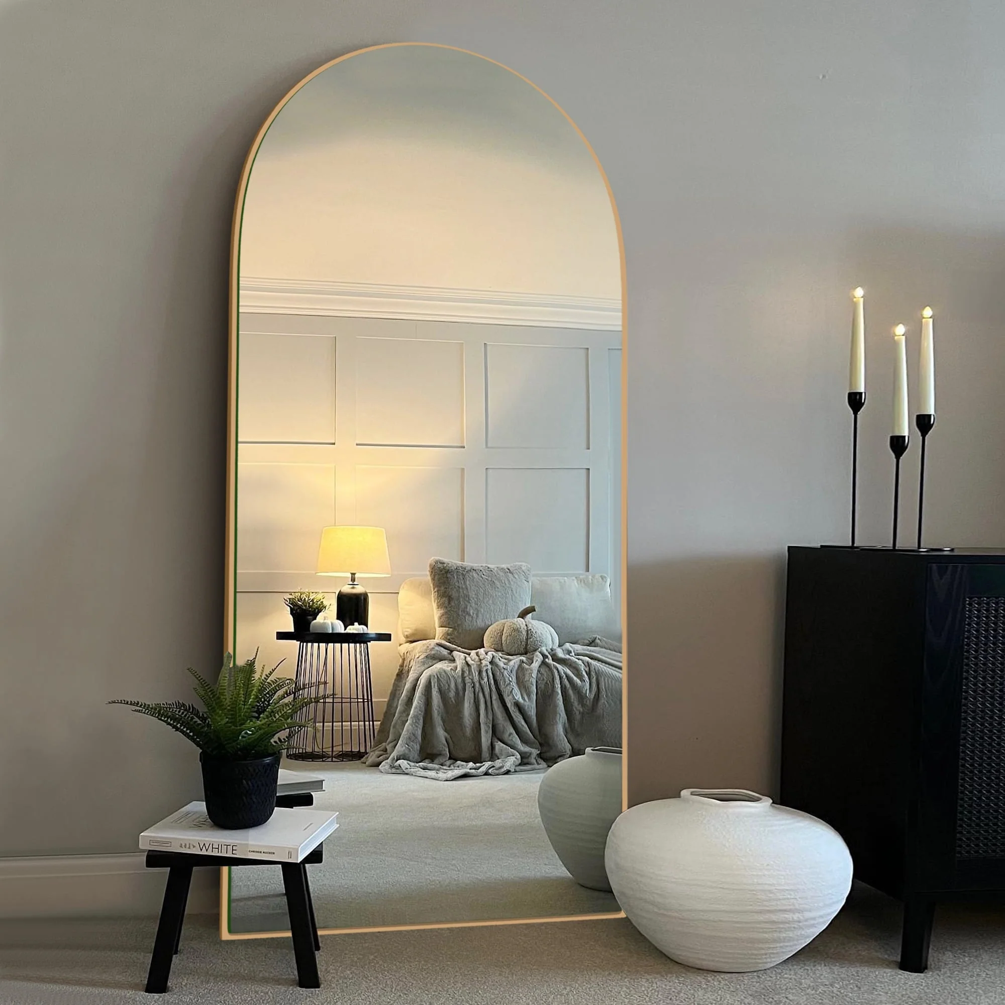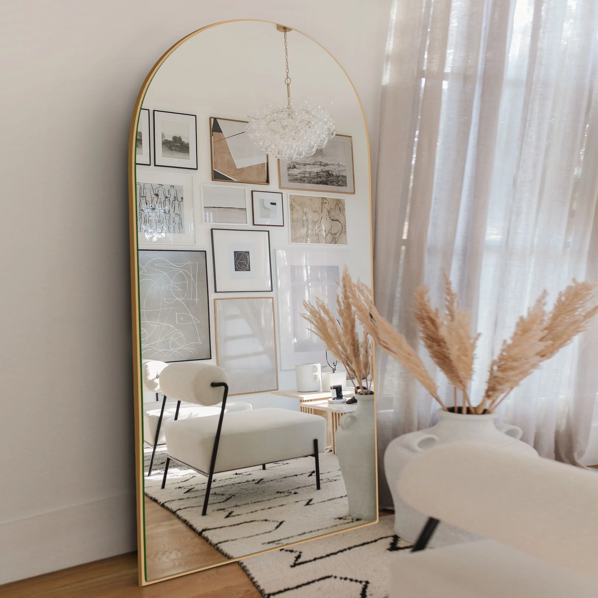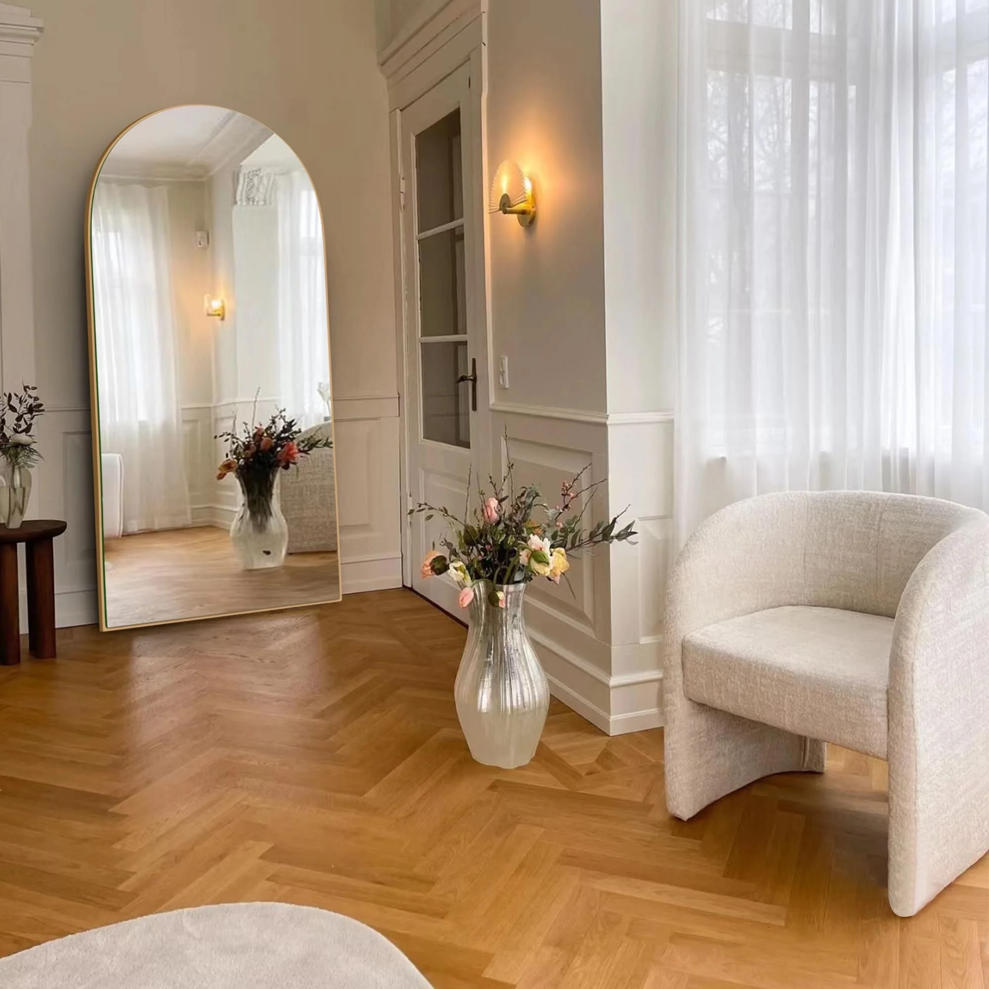 The modern arched full-length mirror is an essential element in home decoration. From a distance, it looks like a door or a window, making it more artistic and highlighting the beauty of the body mirror. At the same time, the arched design can visually elevate the ceiling and enhance the transparency of the space It can also enhance the indoor lighting ability, create a unique and exquisite space aesthetic feeling, shape the space atmosphere, and effectively improve the taste and grade of the entire interior space. Its exceptional quality is highlighted by an affordable price point, offering you a remarkable value for your investment. Order now to transform your home with this remarkable mirror! �