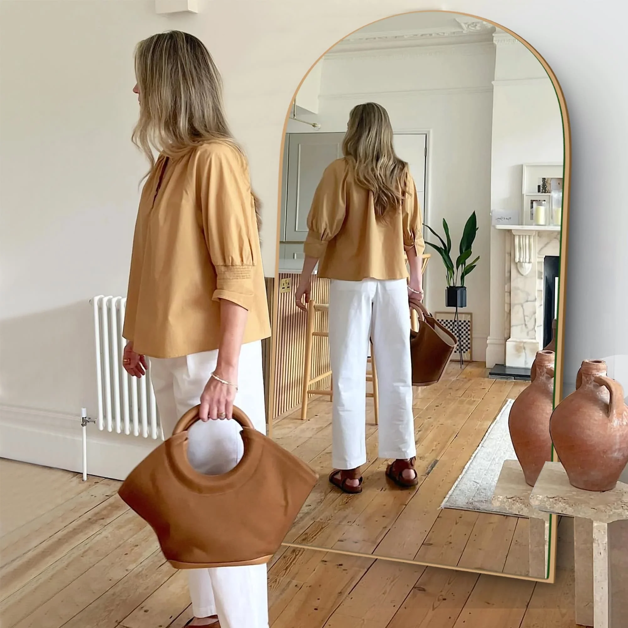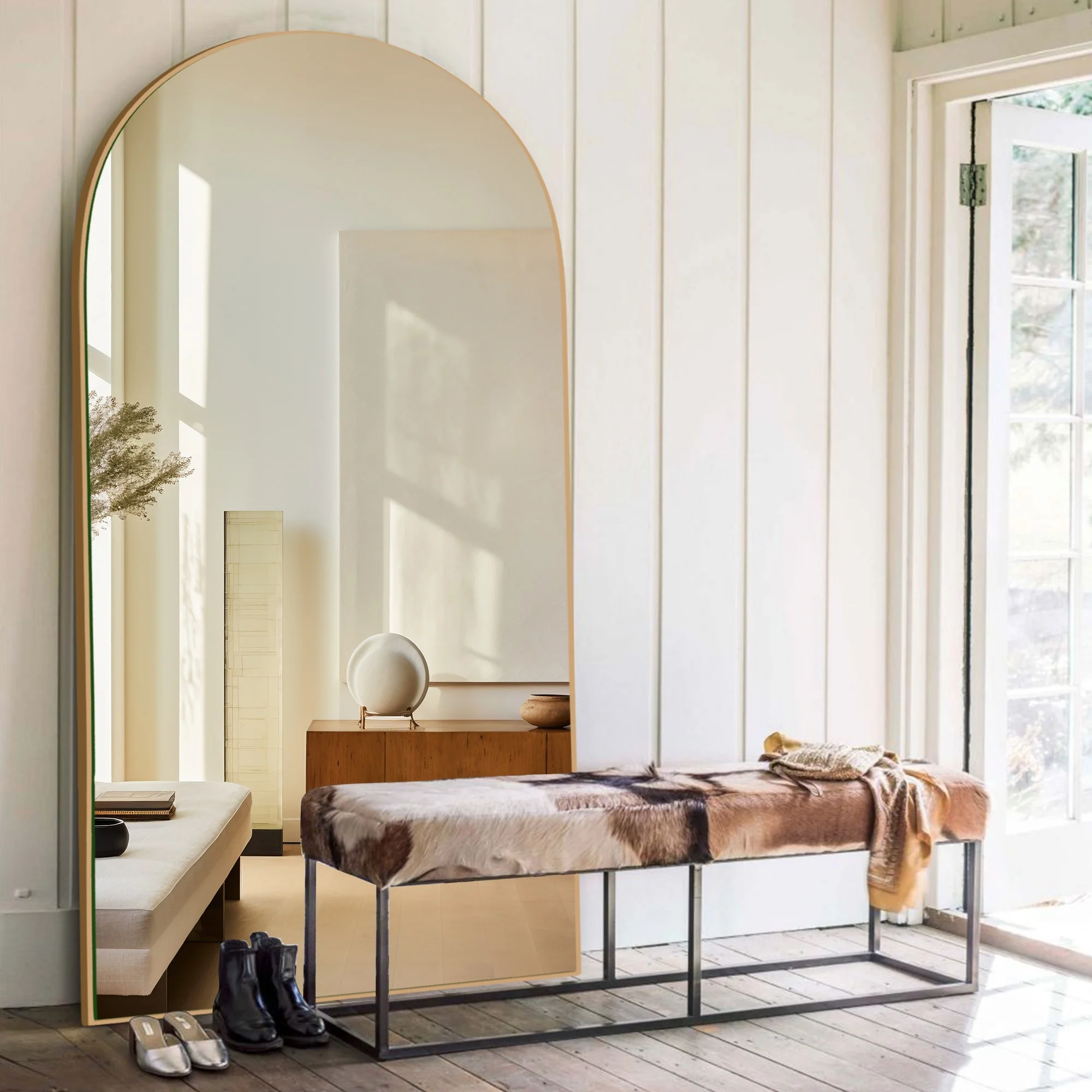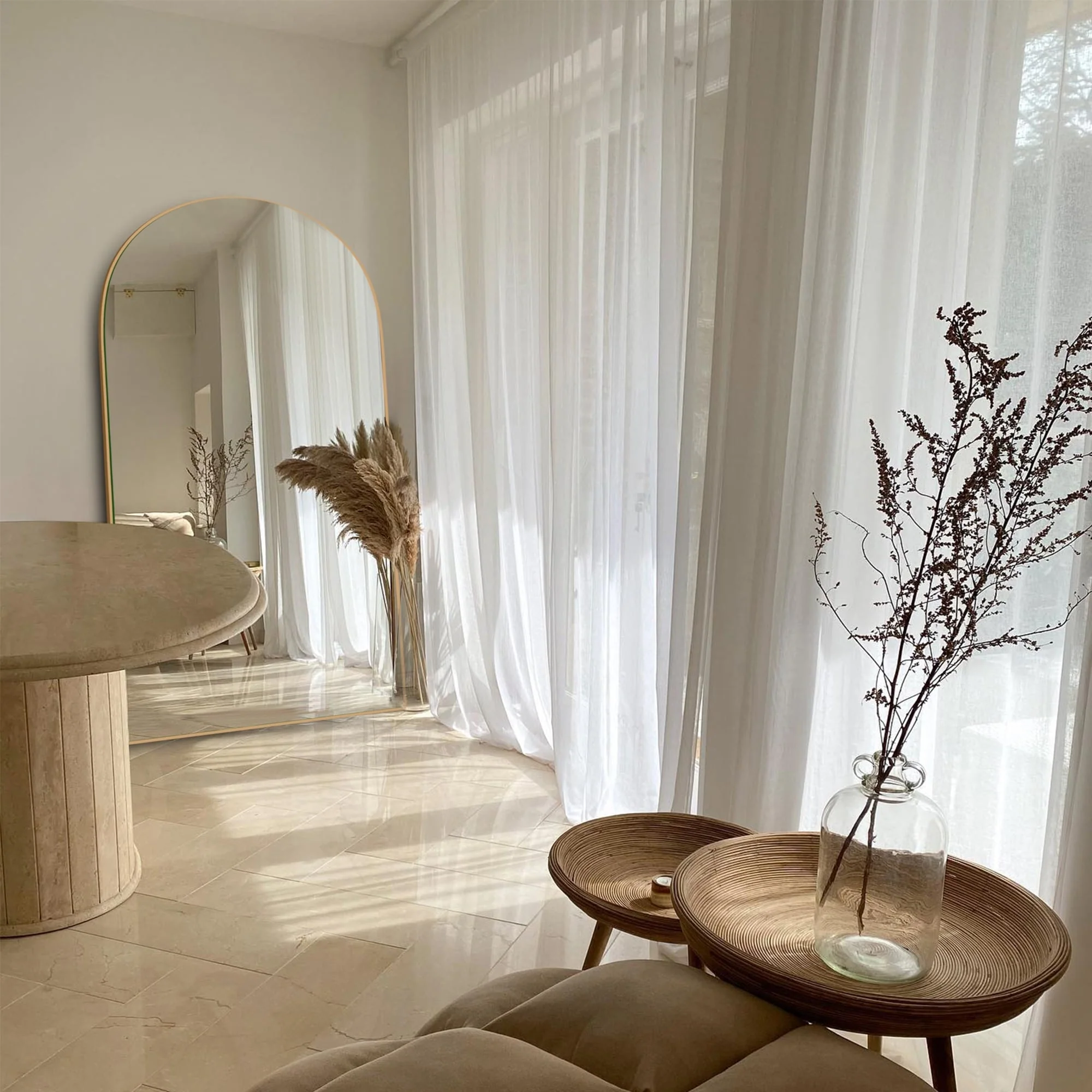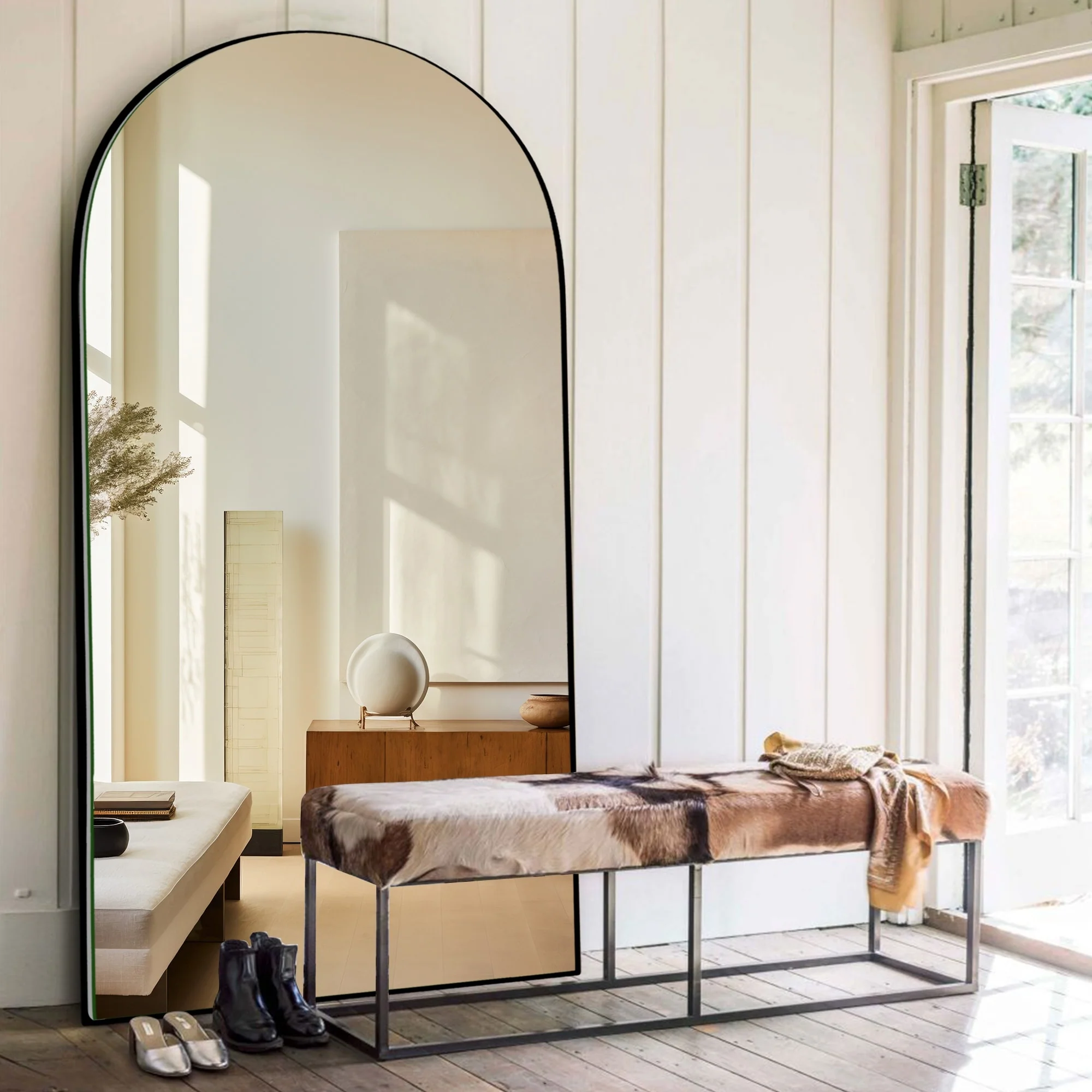 The modern arched full-length mirror is an essential element in home decoration. From a distance, it looks like a door or a window, making it more artistic and highlighting the beauty of the body mirror. At the same time, the arched design can visually elevate the ceiling and enhance the transparency of the space It can also enhance the indoor lighting ability, create a unique and exquisite space aesthetic feeling, shape the space atmosphere, and effectively improve the taste and grade of the entire interior space. Its exceptional quality is highlighted by an affordable price point, offering you a remarkable value for your investment. Order now to transform your home with this remarkable mirror! �