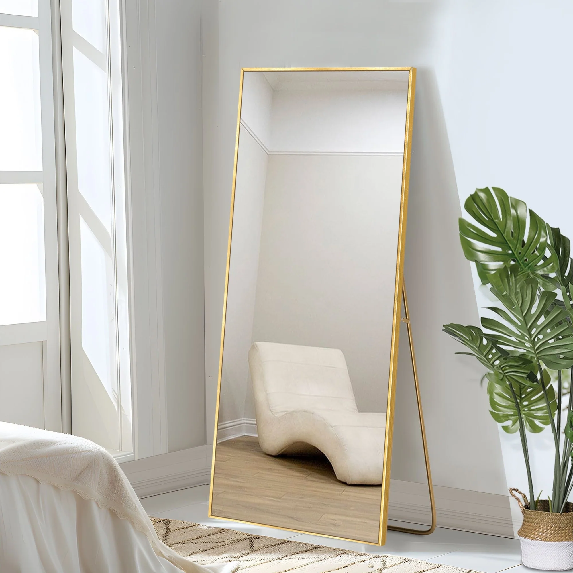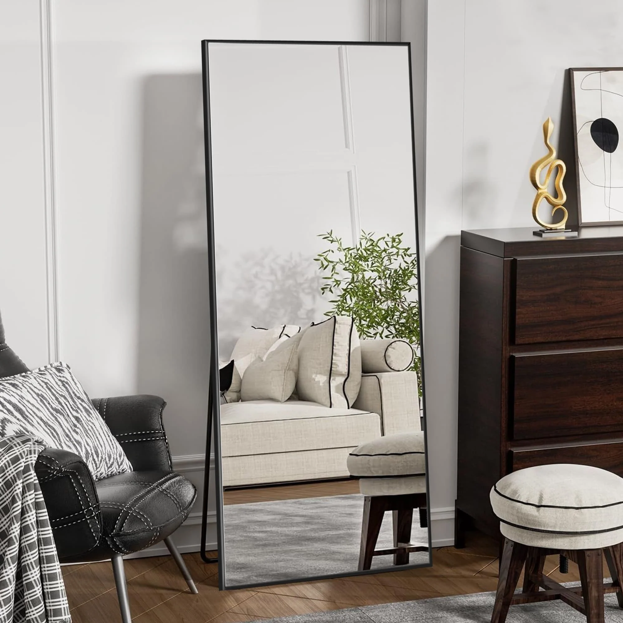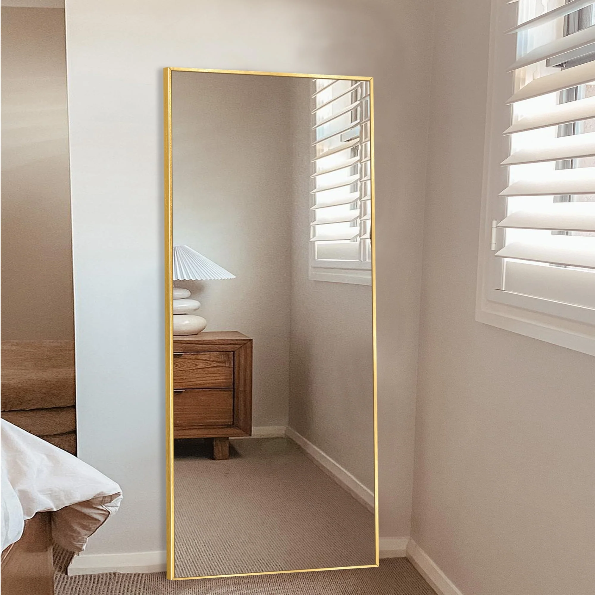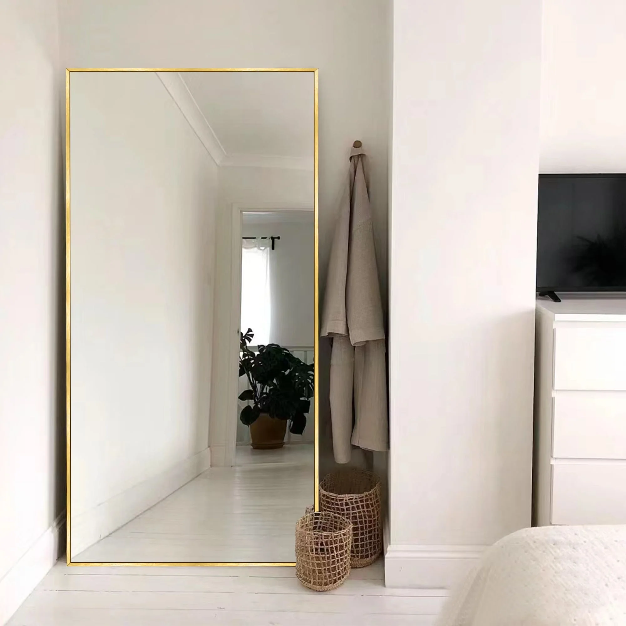 Simple, Trendy, Back to pure essence! If you're using a mirror as art, rectangle is the way to go - particularly when you're decorating a room with geometric shapes and sharp angles. Whether it is a tasteful wall decoration or a practical standing mirror. It fits the space perfectly! This full-length mirror is made of stylish wrap-around craftsmanship with high quality aluminum frame, which makes it more elegance and upscale. Not only does it amplify the transparency of the area, but it also augments indoor lighting, crafting a unique and refined aesthetic that influences the ambiance of the space. Before you go out, you can use this mirror to see if you are looking your best. Be confident and go out to wow everyone. Don't miss out on the opportunity to elevate your home decor��order now and experience the transformational power of this exceptional mirror!�
