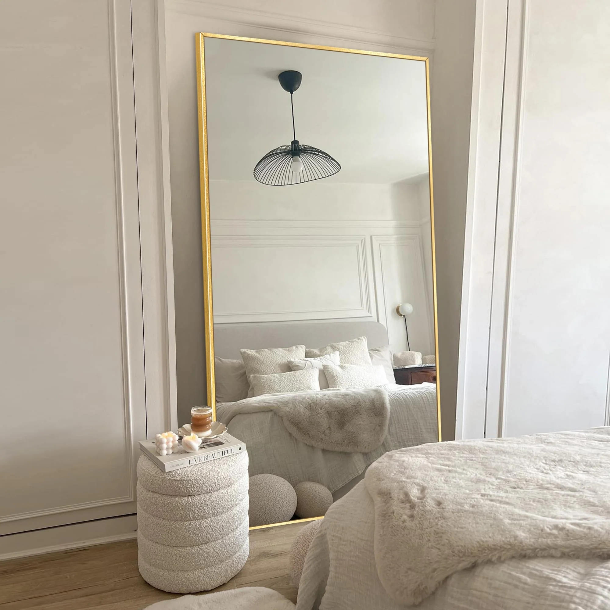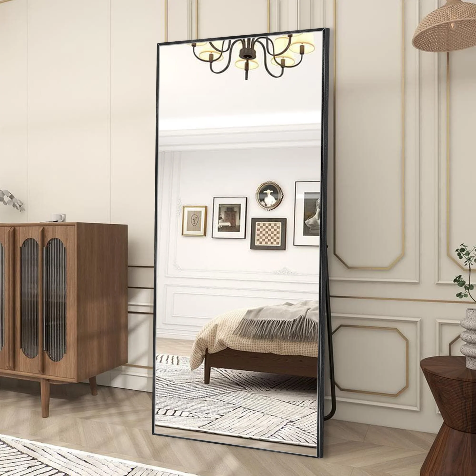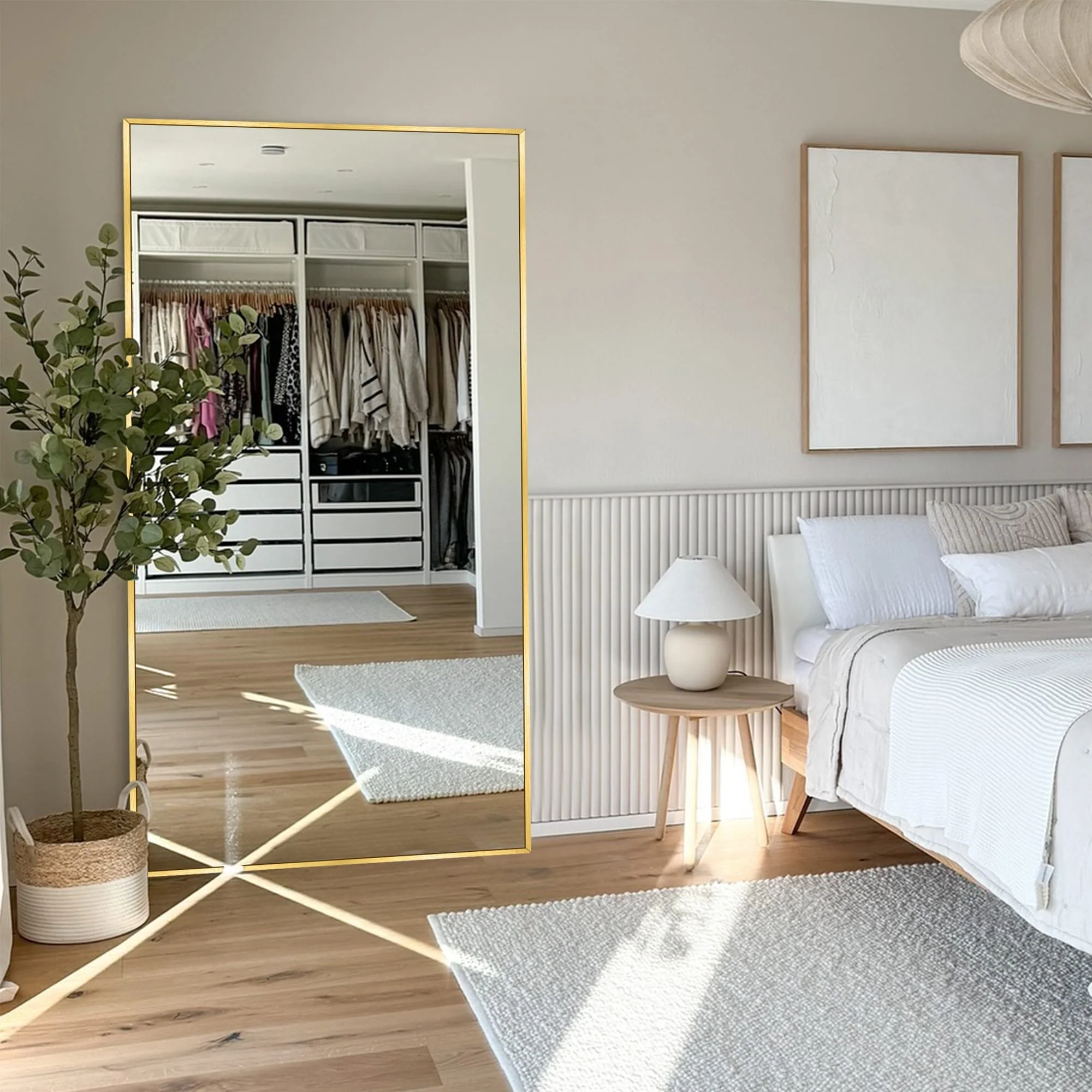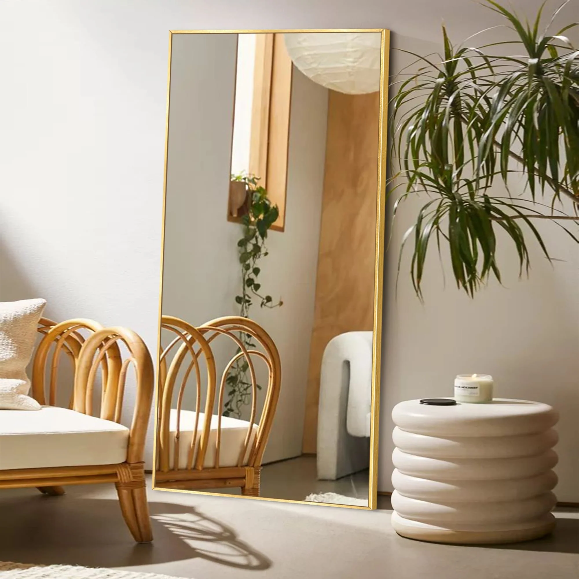 Simple, Trendy, Back to pure essence! If you're using a mirror as art, rectangle is the way to go - particularly when you're decorating a room with geometric shapes and sharp angles. Whether it is a tasteful wall decoration or a practical standing mirror. It fits the space perfectly! This full-length mirror is made of stylish wrap-around craftsmanship with high quality aluminum frame, which makes it more elegance and upscale. Not only does it amplify the transparency of the area, but it also augments indoor lighting, crafting a unique and refined aesthetic that influences the ambiance of the space. Before you go out, you can use this mirror to see if you are looking your best. Be confident and go out to wow everyone. Don't miss out on the opportunity to elevate your home decor��order now and experience the transformational power of this exceptional mirror!�