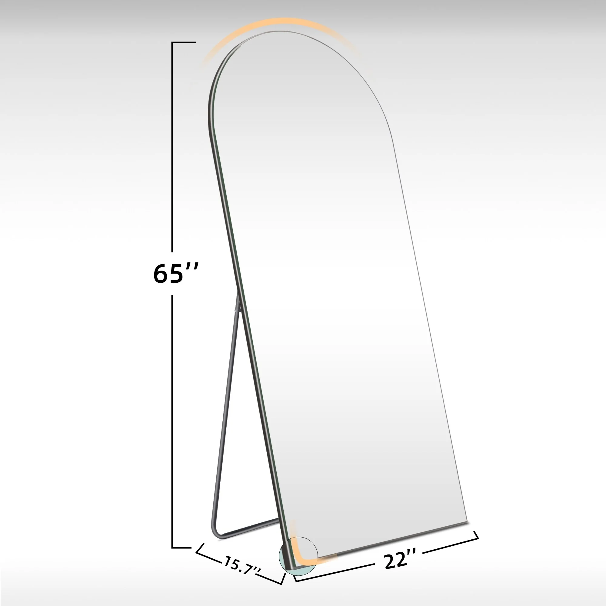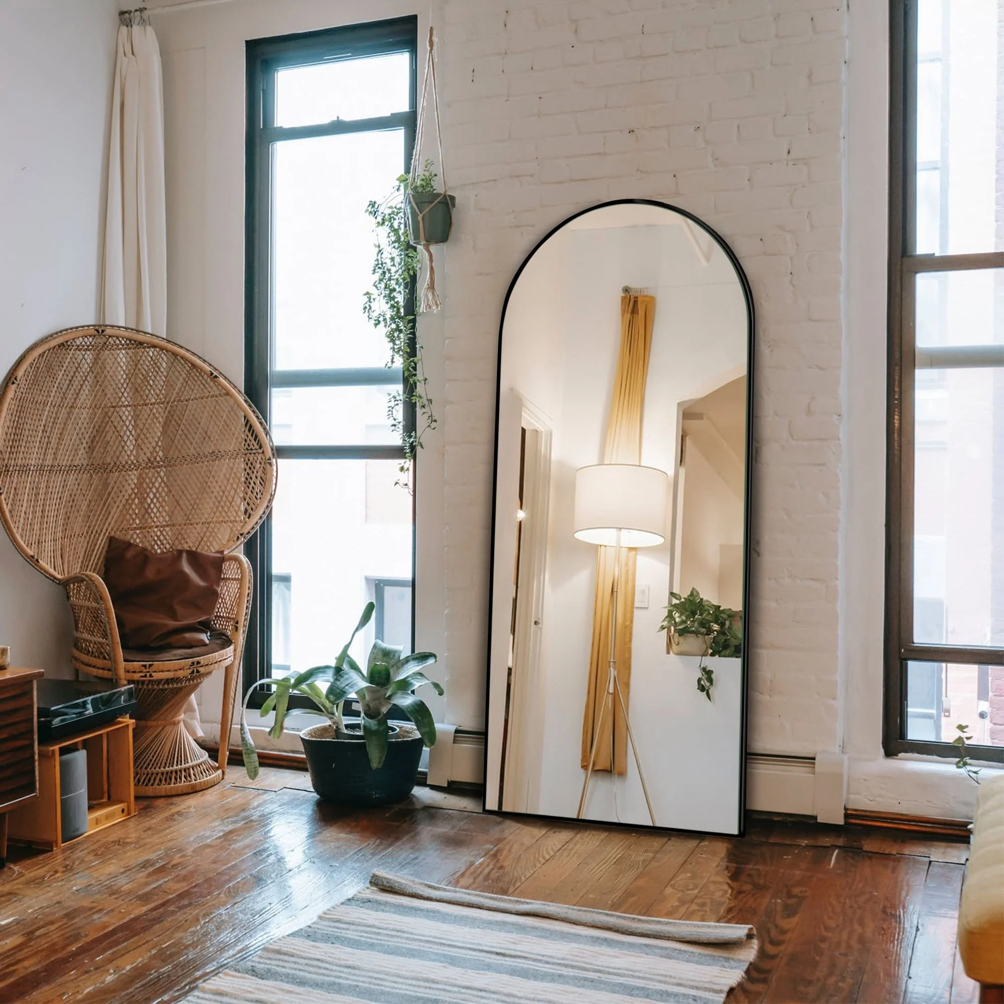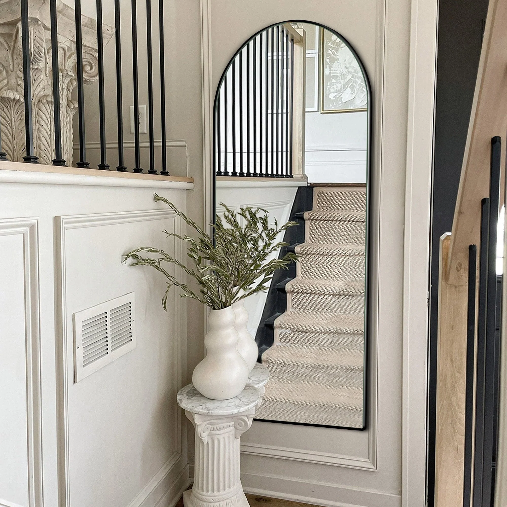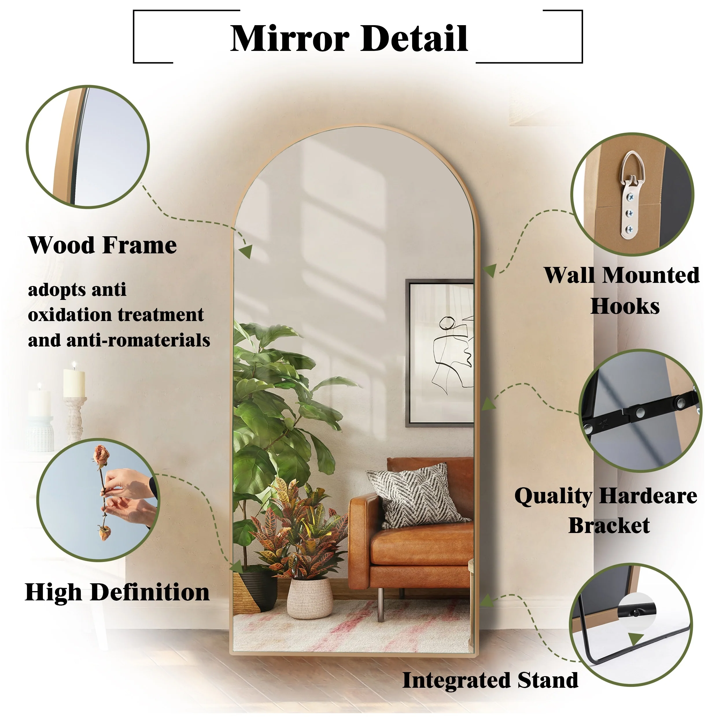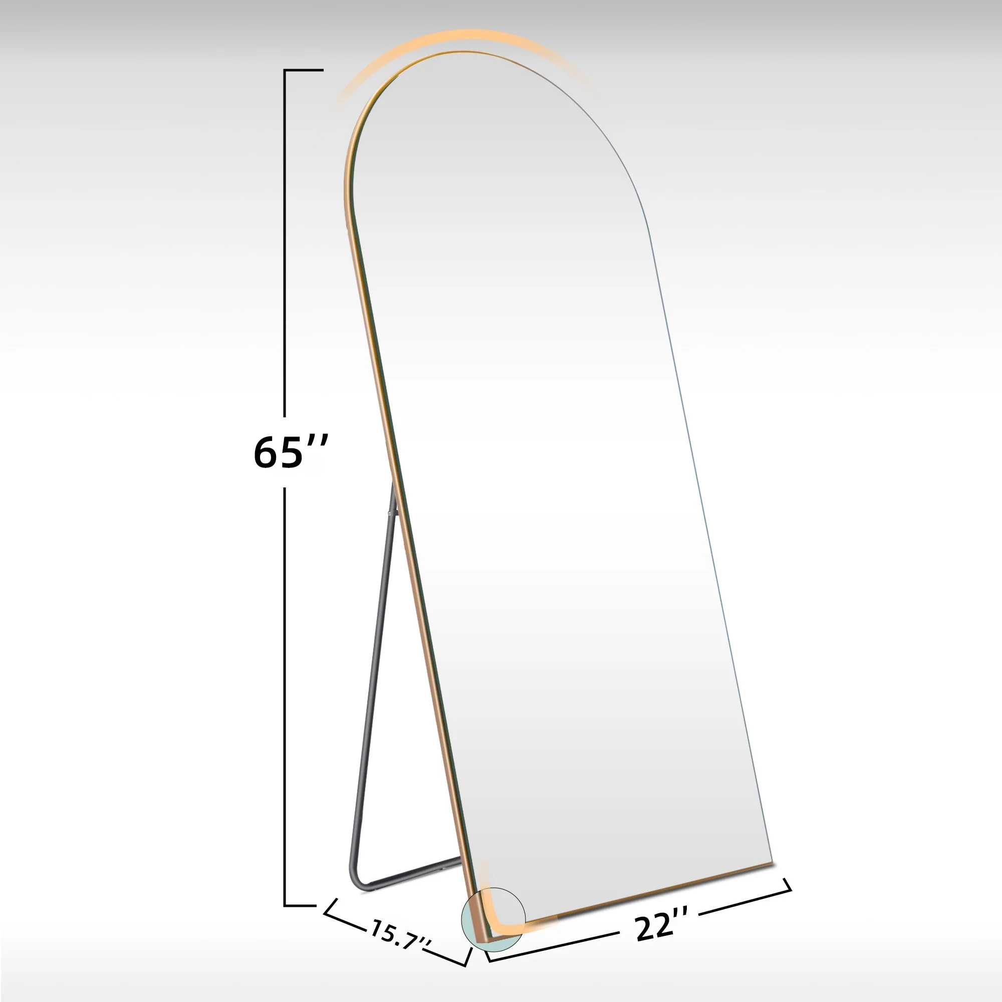 Upgrade your interior decor with this Modern Glam Arched-Top Full Length Floor Mirror with Stand. Perfect for clothing stores, salons, apartments or your own bedroom, this mirror is both decorative and functional. Correct your yoga poses in front of it, take a selfie or check out your workout results. With its U-shaped brackets and anti-skid pads, this mirror is also safe for homes with curious pets. This mirror is available in several sizes, it's free-standing and easy to hang on the wall, making it a great addition in any room. Crafted from high-quality MDF and glass, this mirror is sure to impress.